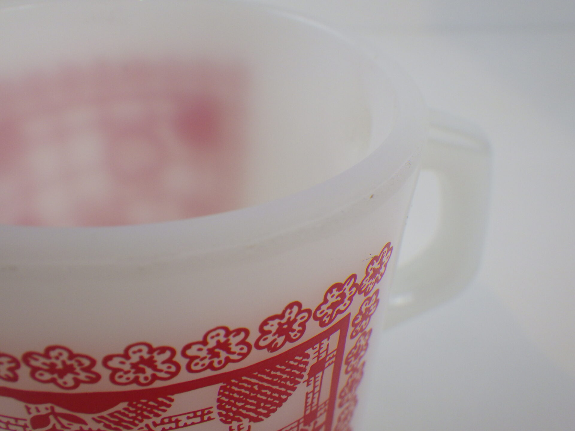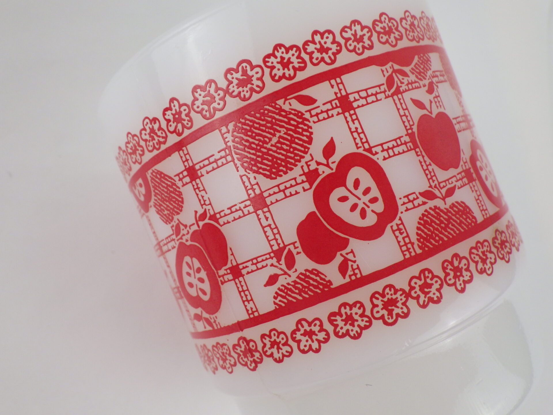 | アメリカで買い付けました。 ファイヤーキング、アップルオンザマットのマグです。 まるでお花畑の中でピクニックをしているような気分にさせてくれる可愛いプリントですね。 |
