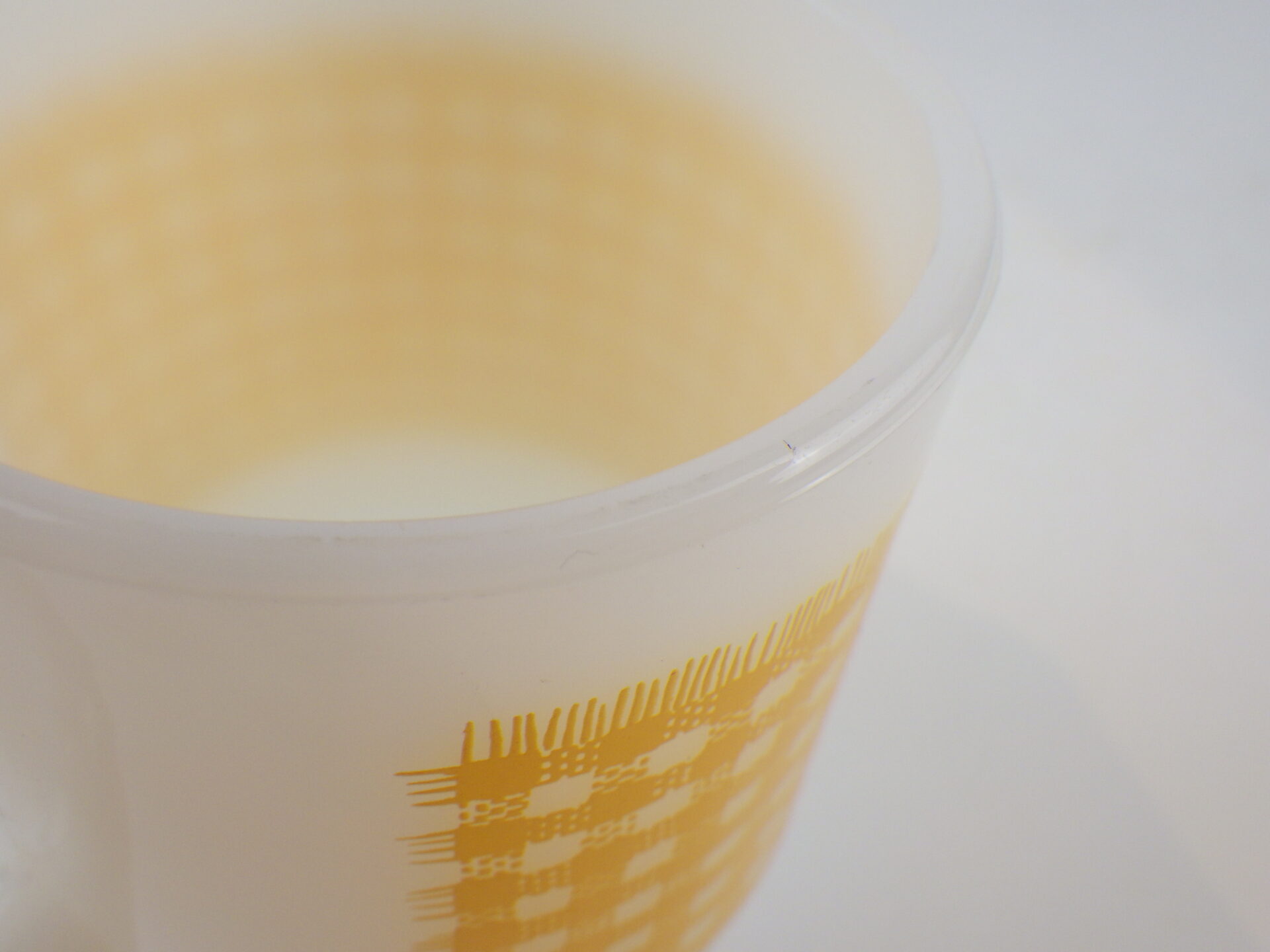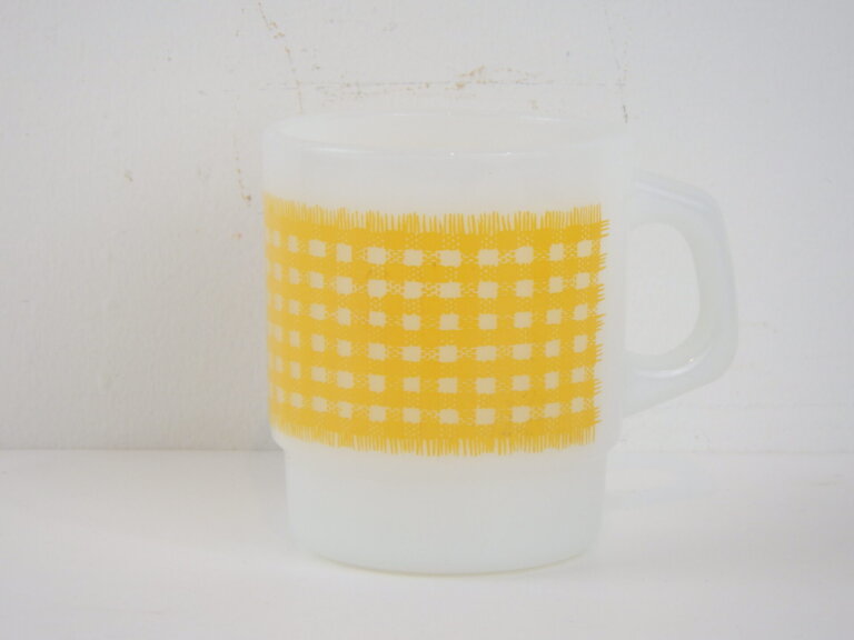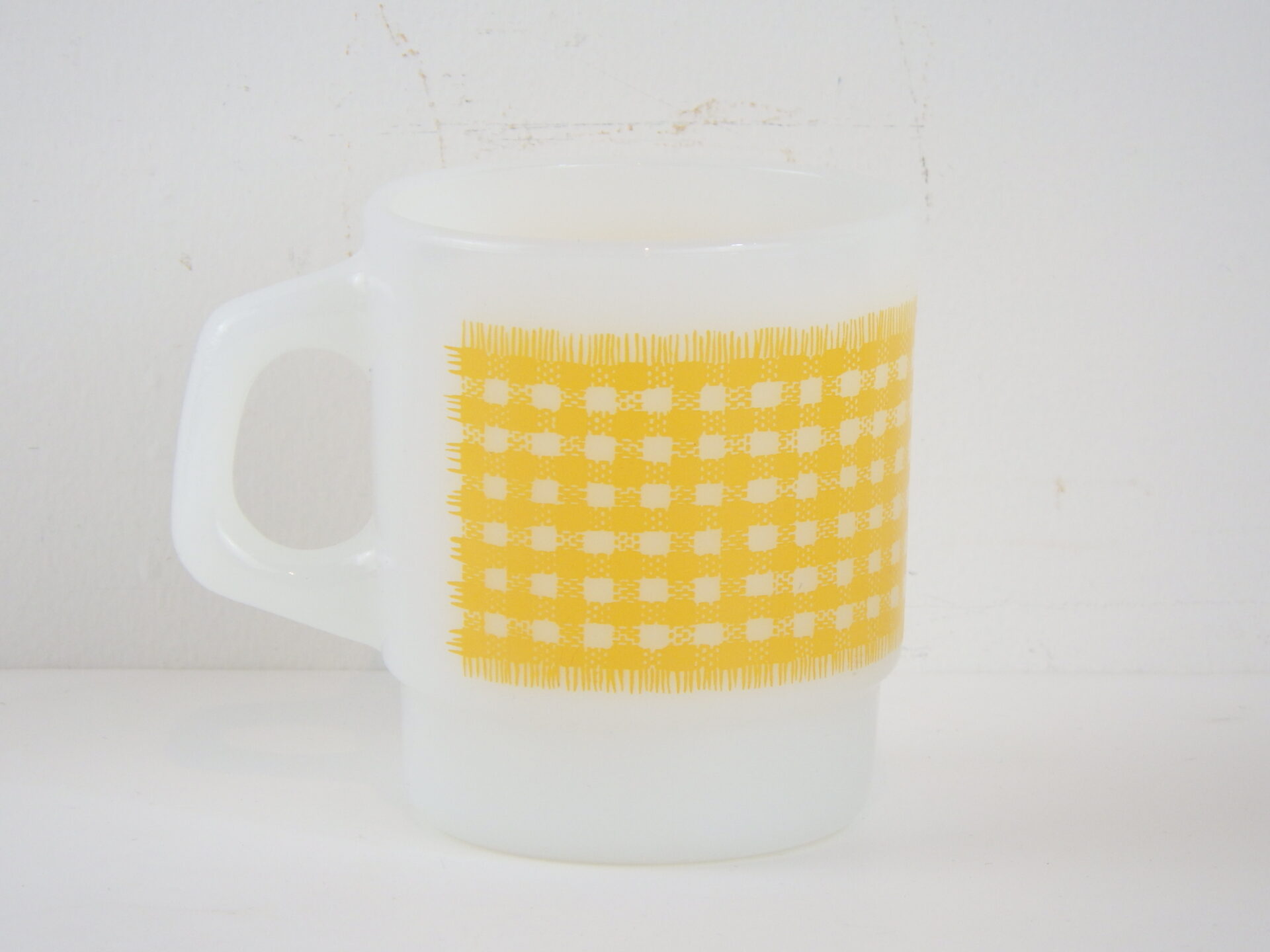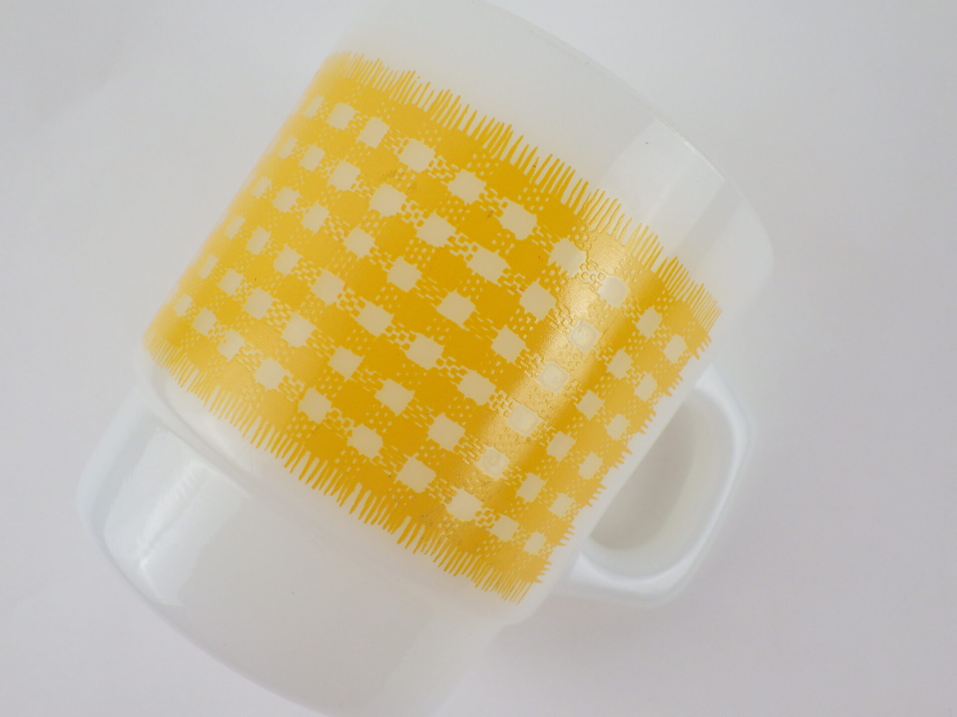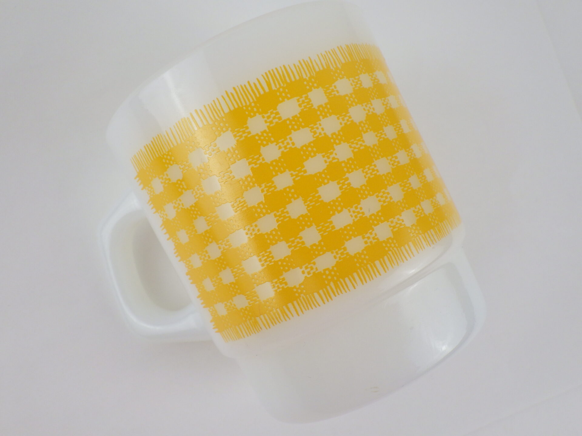 | アメリカで買い付けました。 ファイヤーキング、ギンガムチェックのスタッキングマグです。 赤、青の製造数は比較的多めですが、こちらの黄緑は製造数が少なめです。 |
