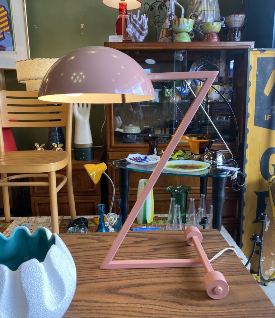 テーブルランプを置くのも良いですが、ちょっと趣向を変えて、こんな個性的なデスクランプを置いてみるのも面白いかも。