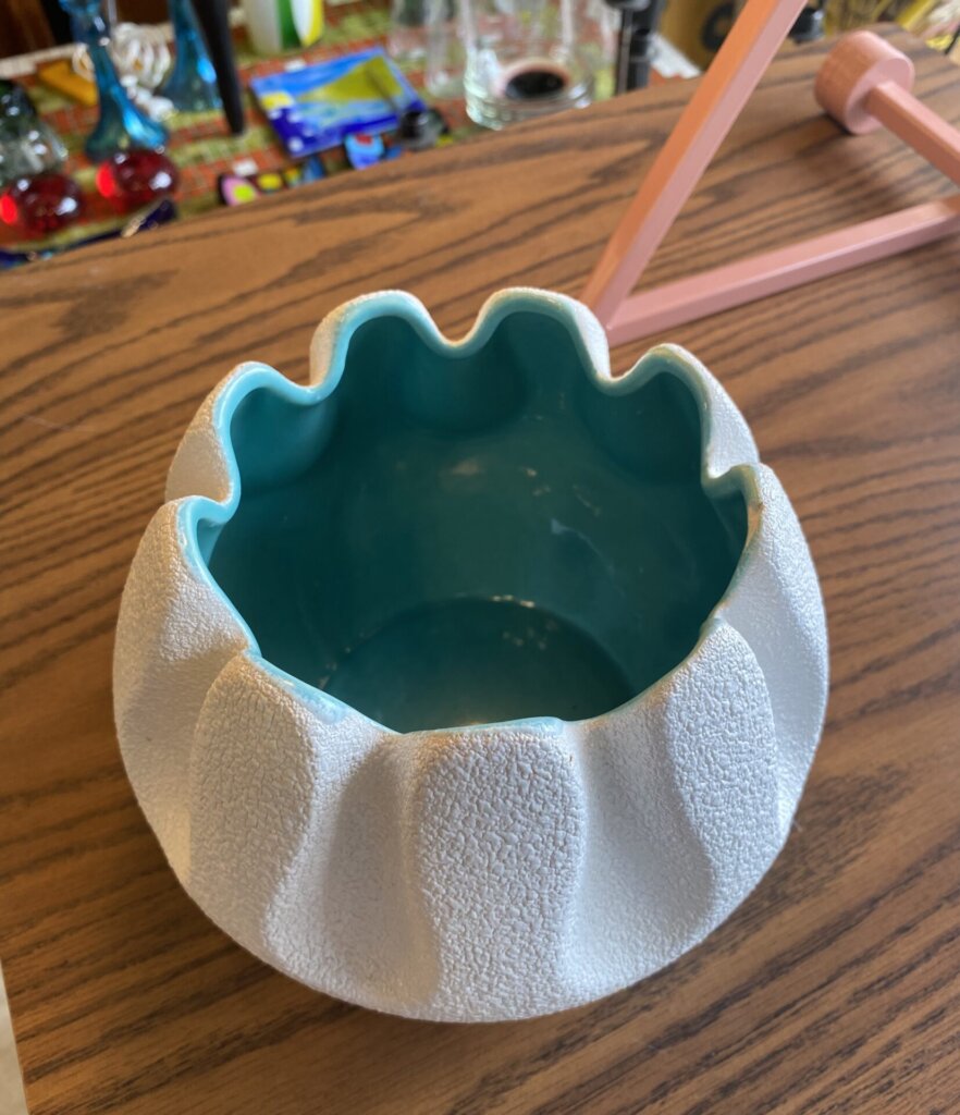 内部のターコイズブルーの釉薬が可愛らしいです。