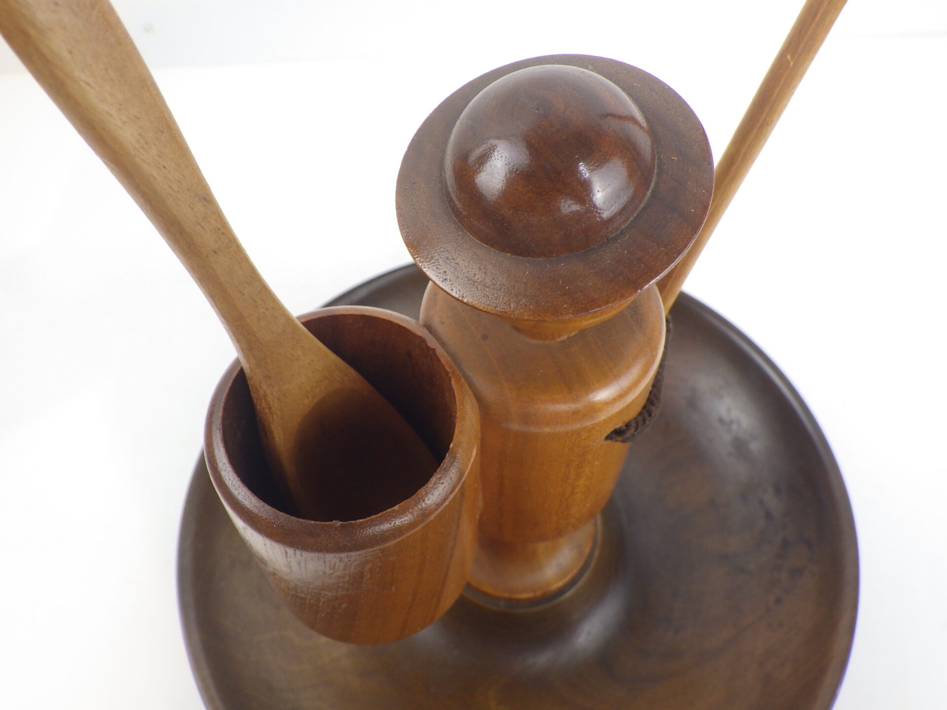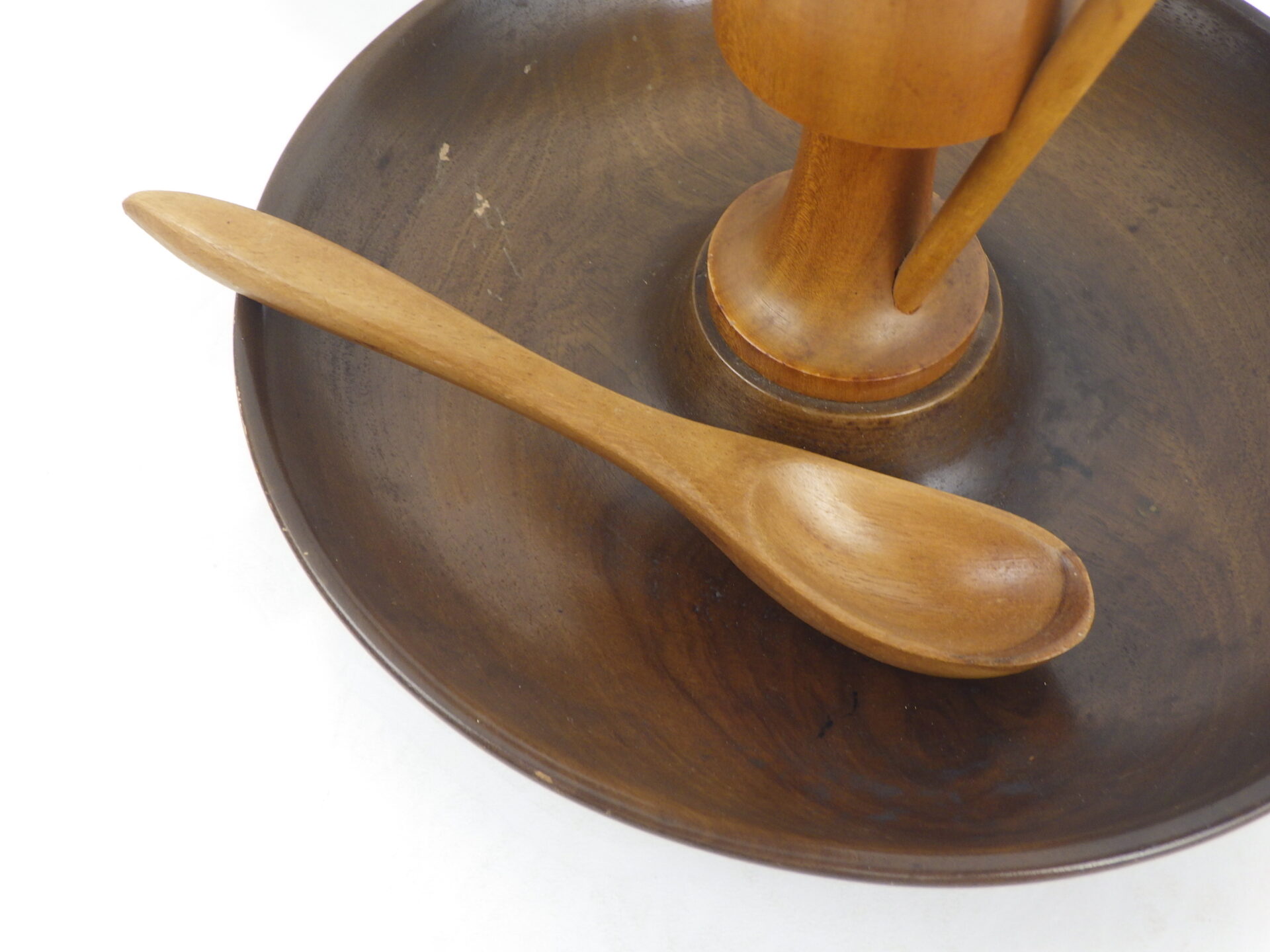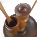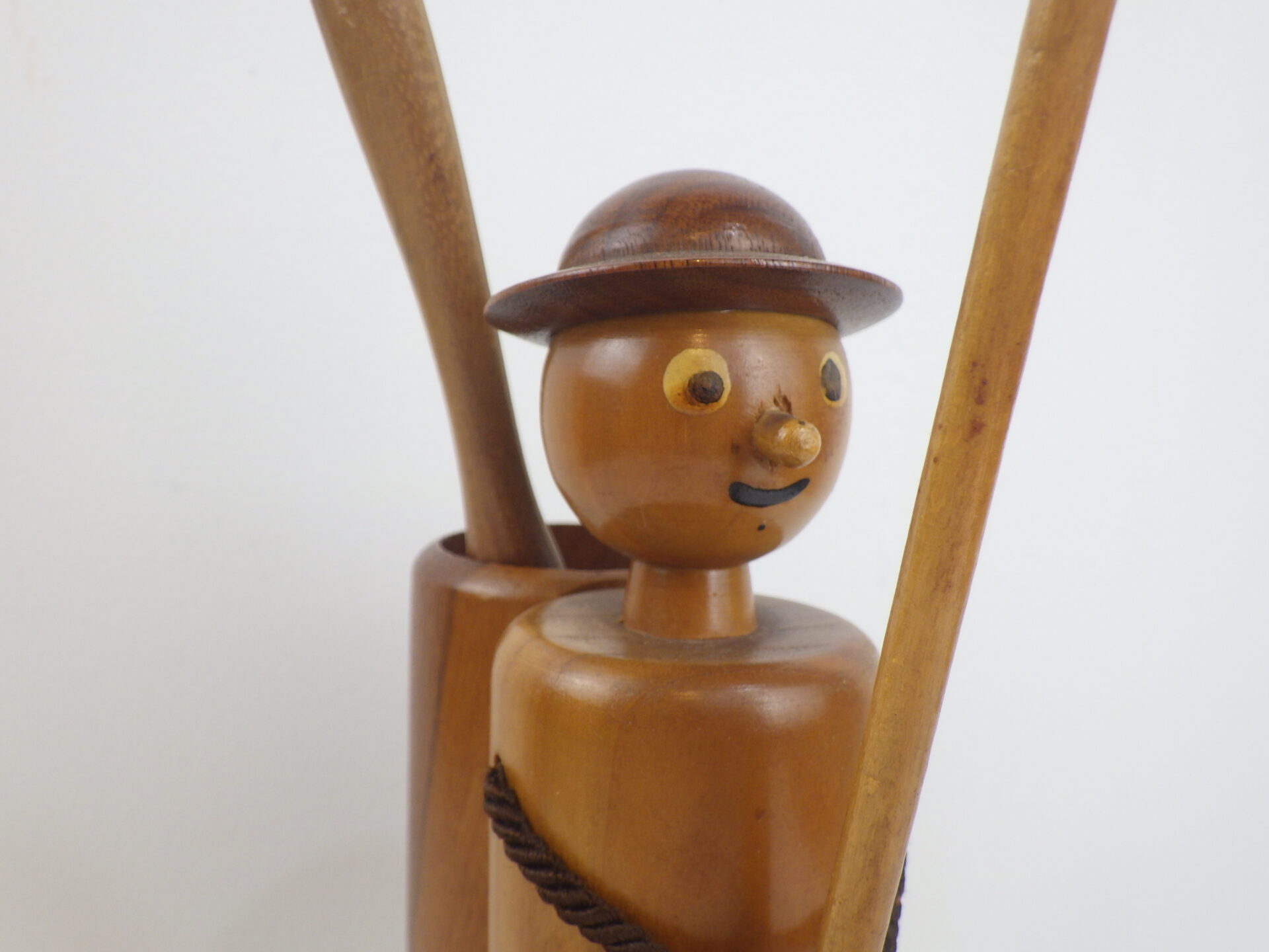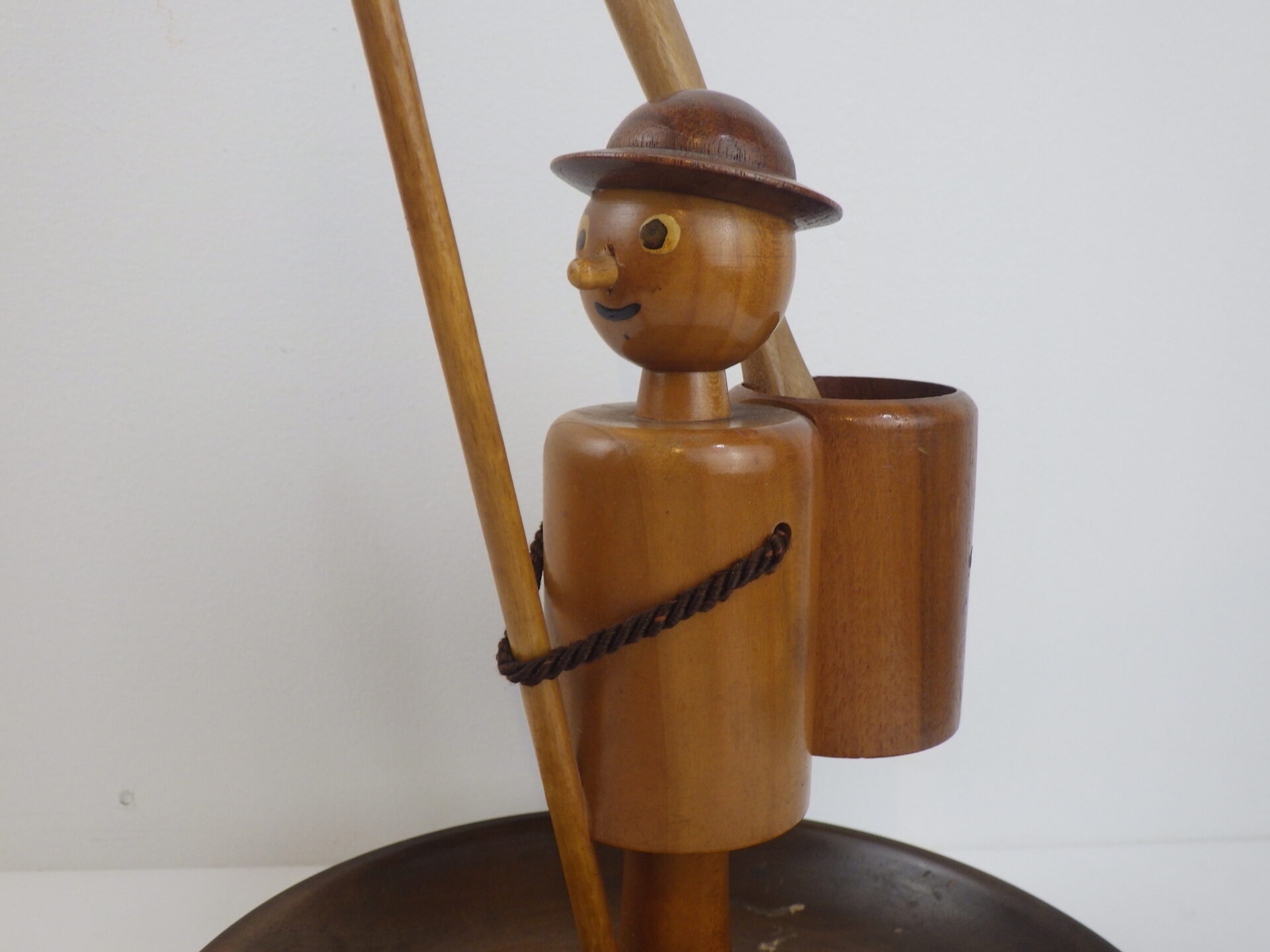 | ヨーロッパで買い付けました。 西ドイツ製のスナックトレーです。 お皿にナッツ、手に持った棒にプレッツェルなどを挿して使用します。 人形の部分は360度回転します。 まるで一寸法師?な姿に思わず愛着が湧きますね。 アクセサリーなどを置いたり、オブジェとしてお楽しみいただくのも良さそうです。 |