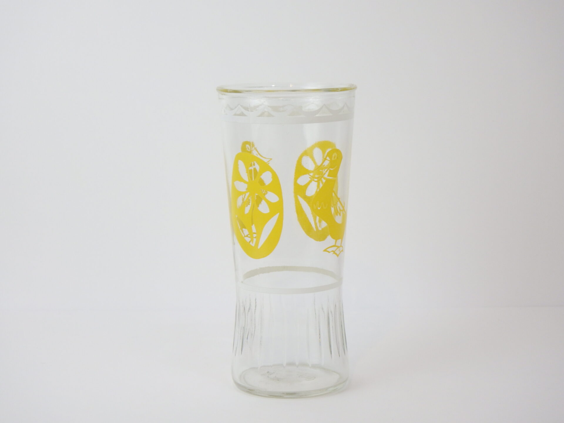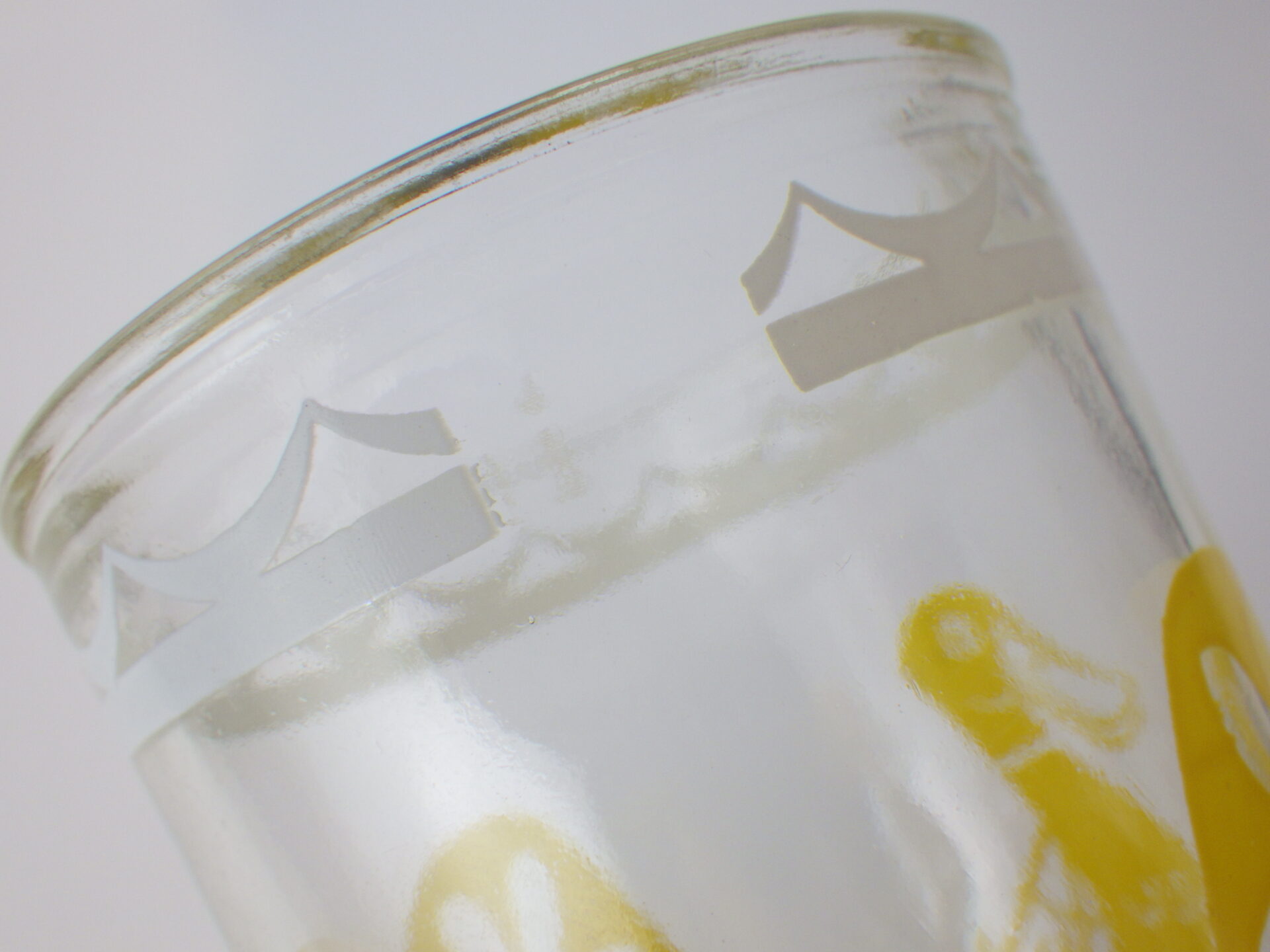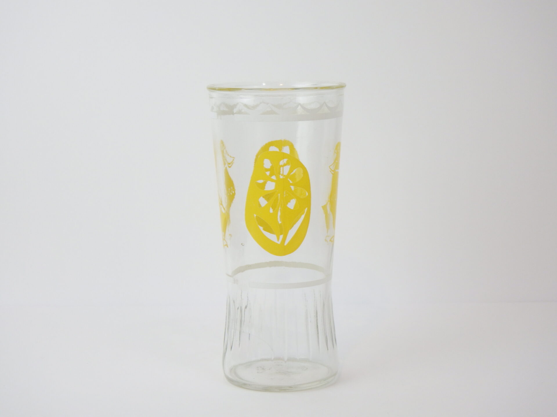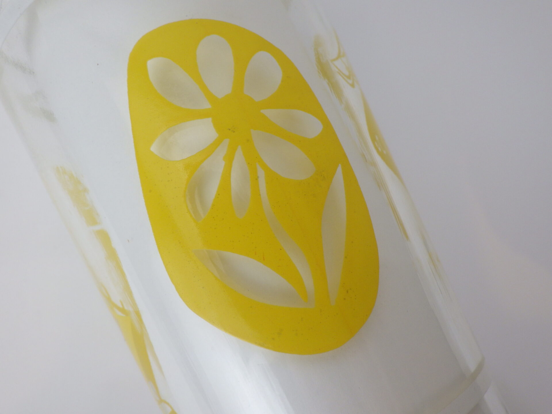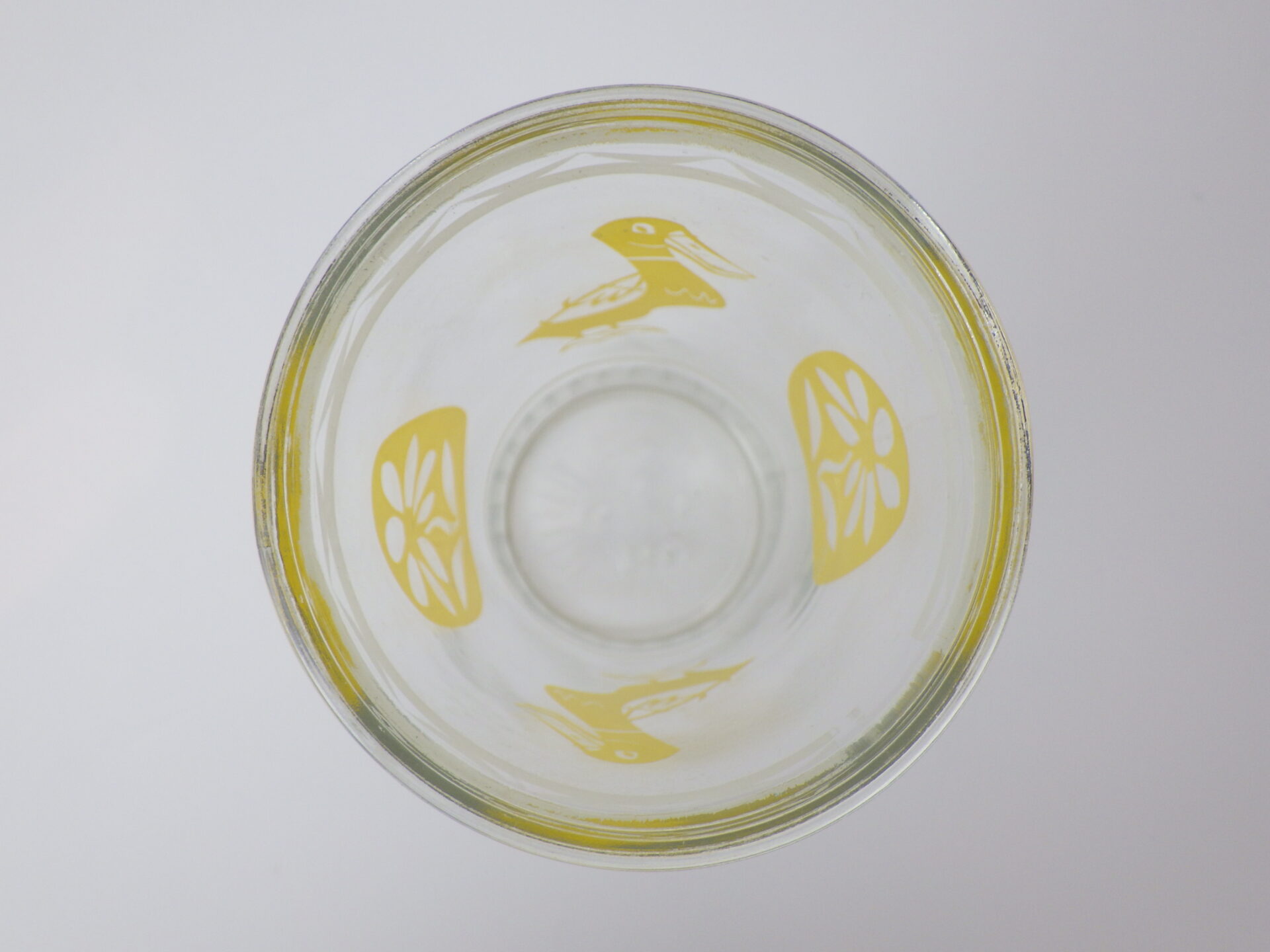 | アメリカで買い付けました。 ファイヤーキングでお馴染み、「アンカーホッキング」のビンテージグラスです。 アヒルと花がビビットなイエローでプリントされています。 氷もたっぷり入るので、暑い季節にぴったりのグラスです。 |