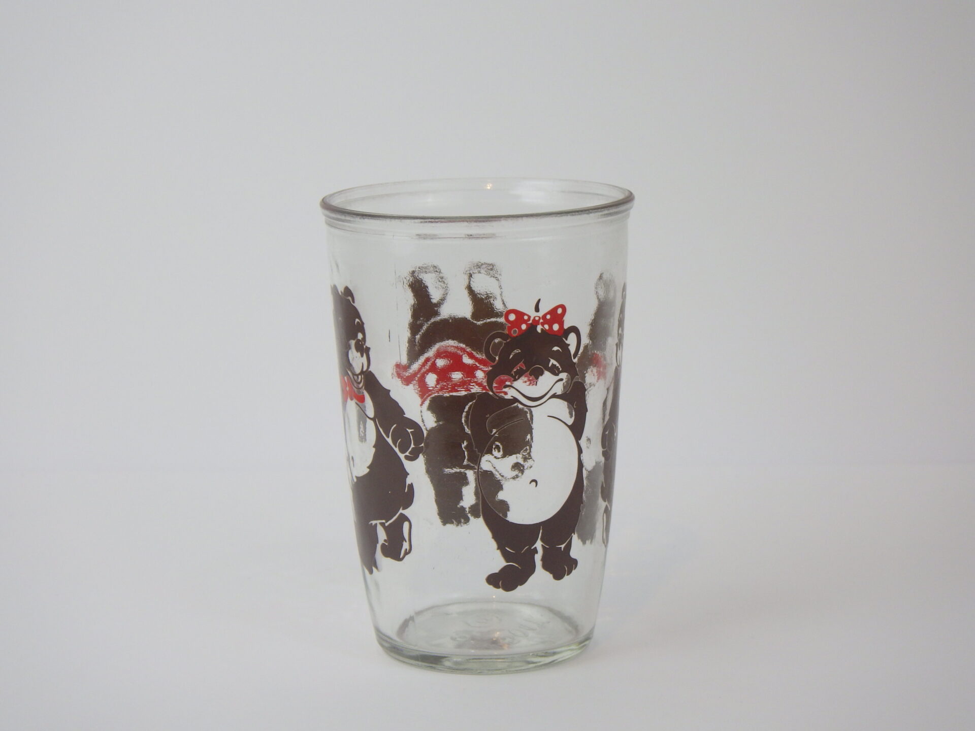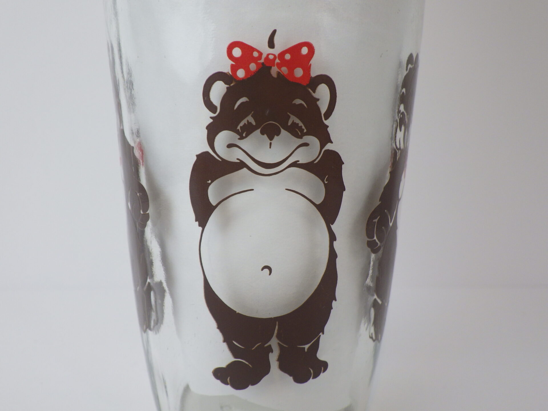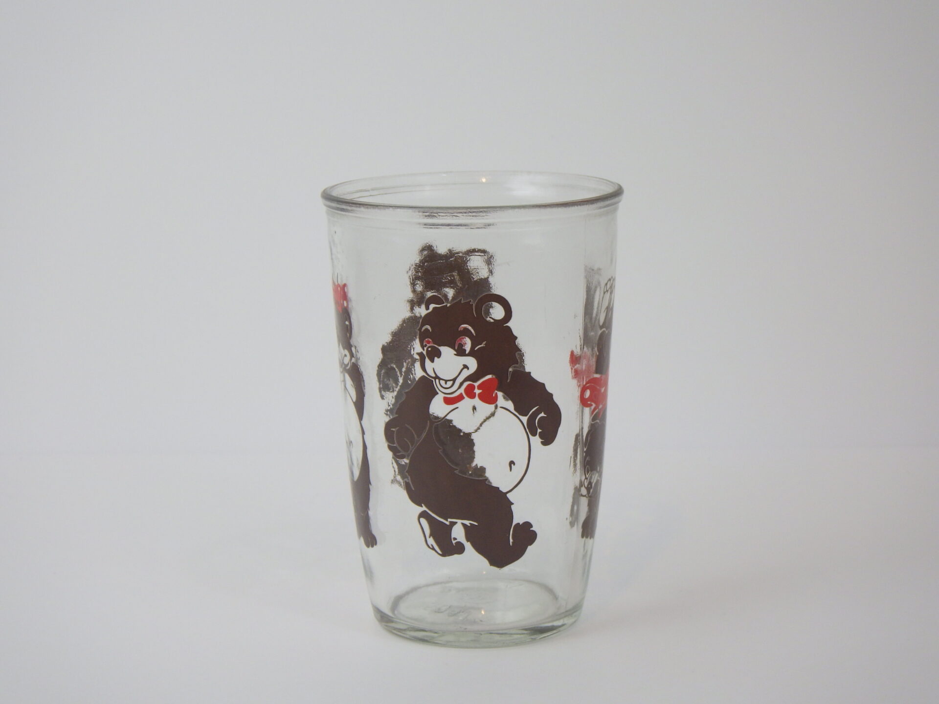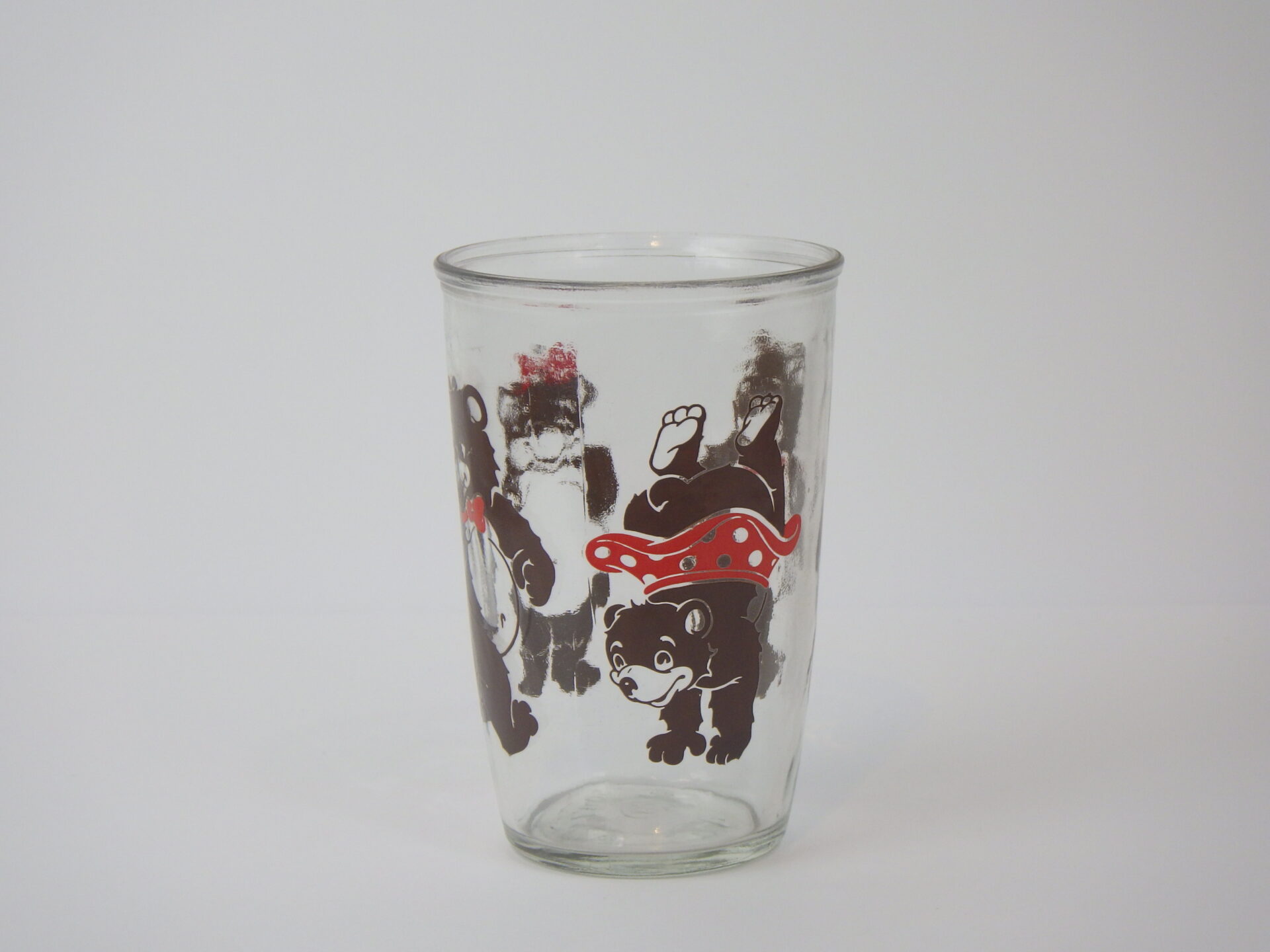 | アメリカで買い付けました。 Ball社製、サワークリームグラスです。 当時、サワークリームの販売容器として製造されていました。 使い終わったらグラスとして使用出来るようになっています。 ぐるりと一周様々なポーズをとったクマたちがプリントされていて、可愛らしいですね。 |