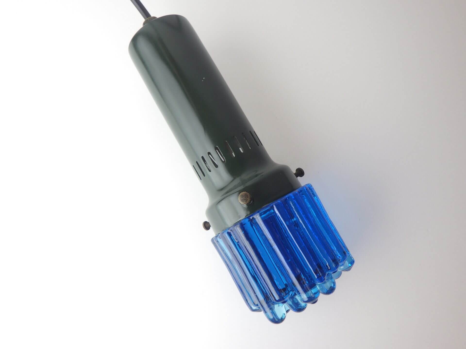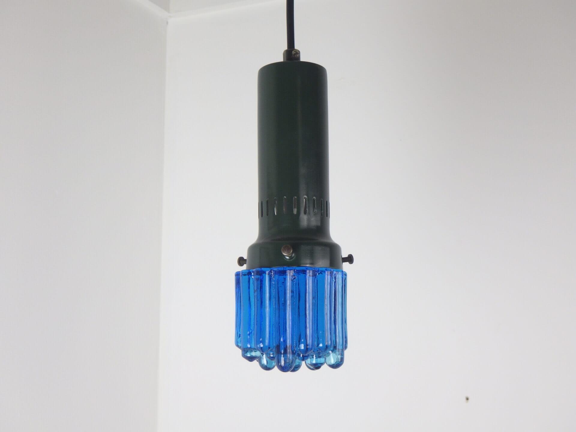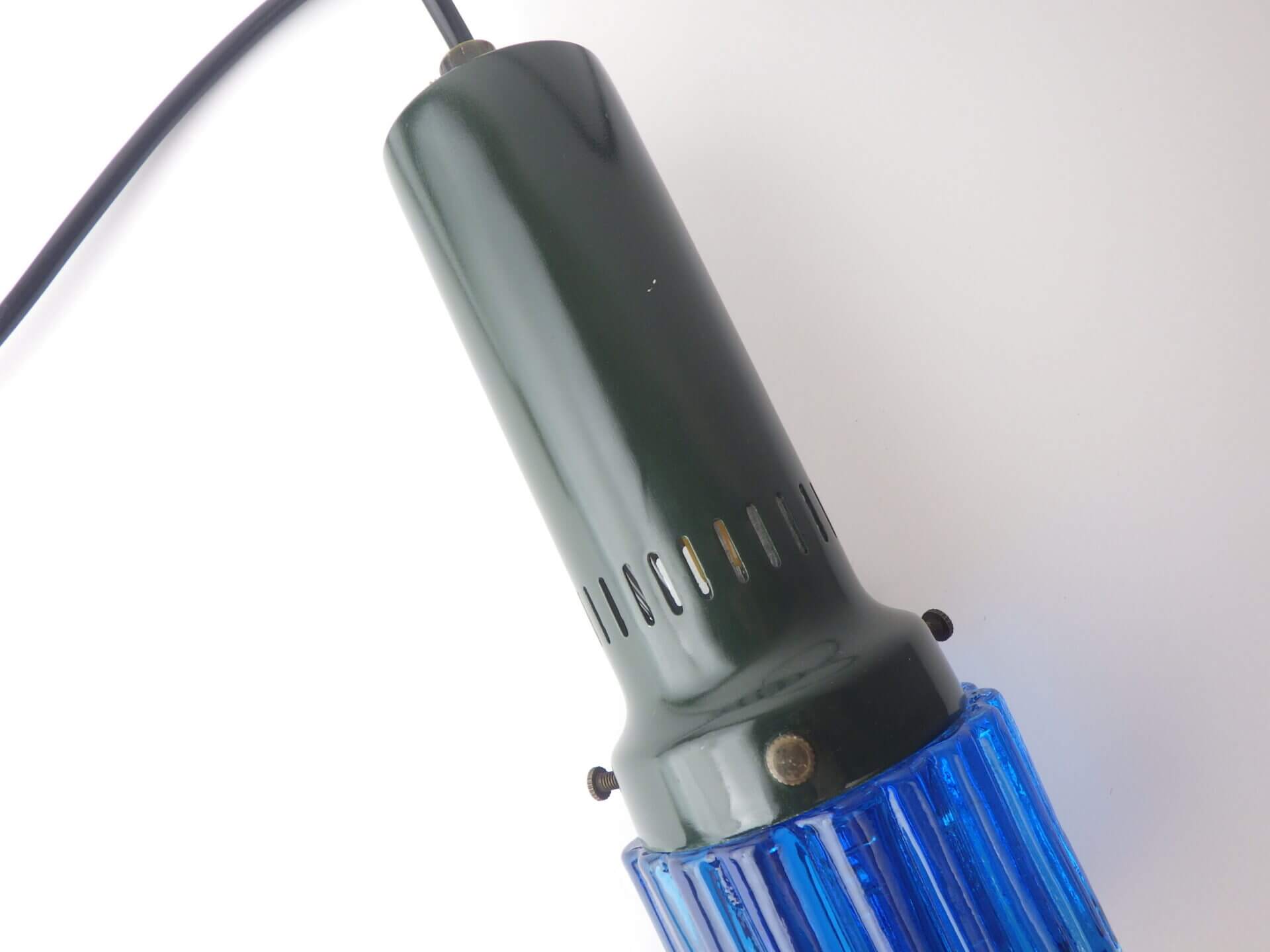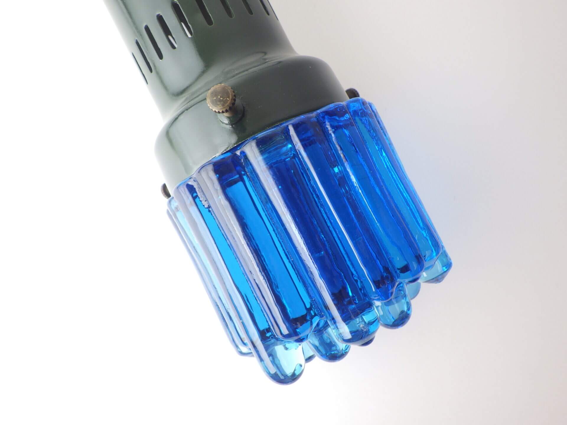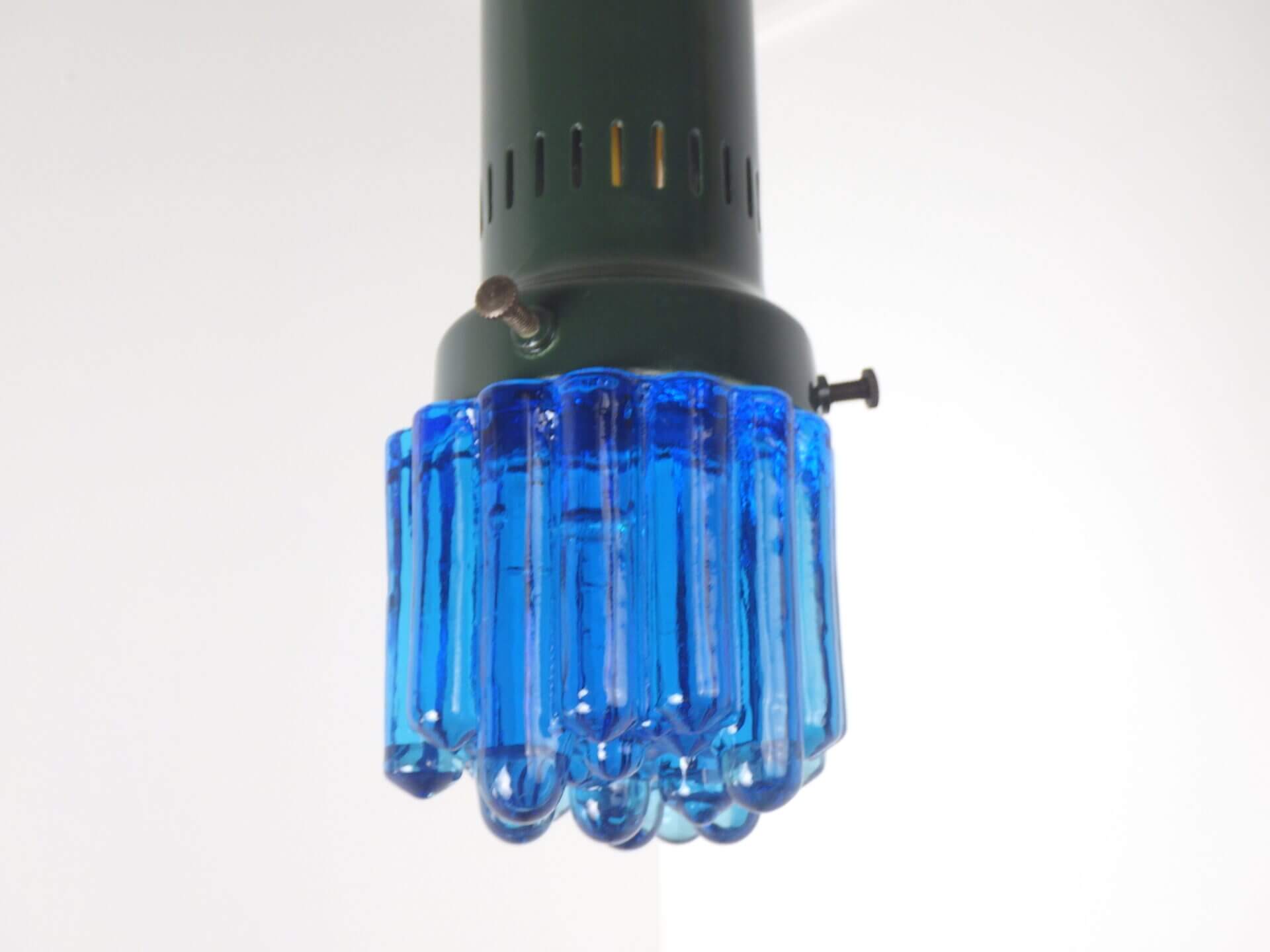 | ヨーロッパで買い付けしました。 つららの様なガラスがついた小ぶりなビンテージのペンダントランプです。 先端のガラスはシェードと言うより「ガラスのかたまり」となっており、電球はグリーンの筒状の本体につける構造となっています。 本体下部にぐるりと一周縦のラインで穴が空いており、灯りをつけるとそこからも光が漏れますが、先端のカラーガラスにも光が反射して綺麗です。 灯りをつけていない時でも自然光でガラスがキラキラするので良い雰囲気です。 |