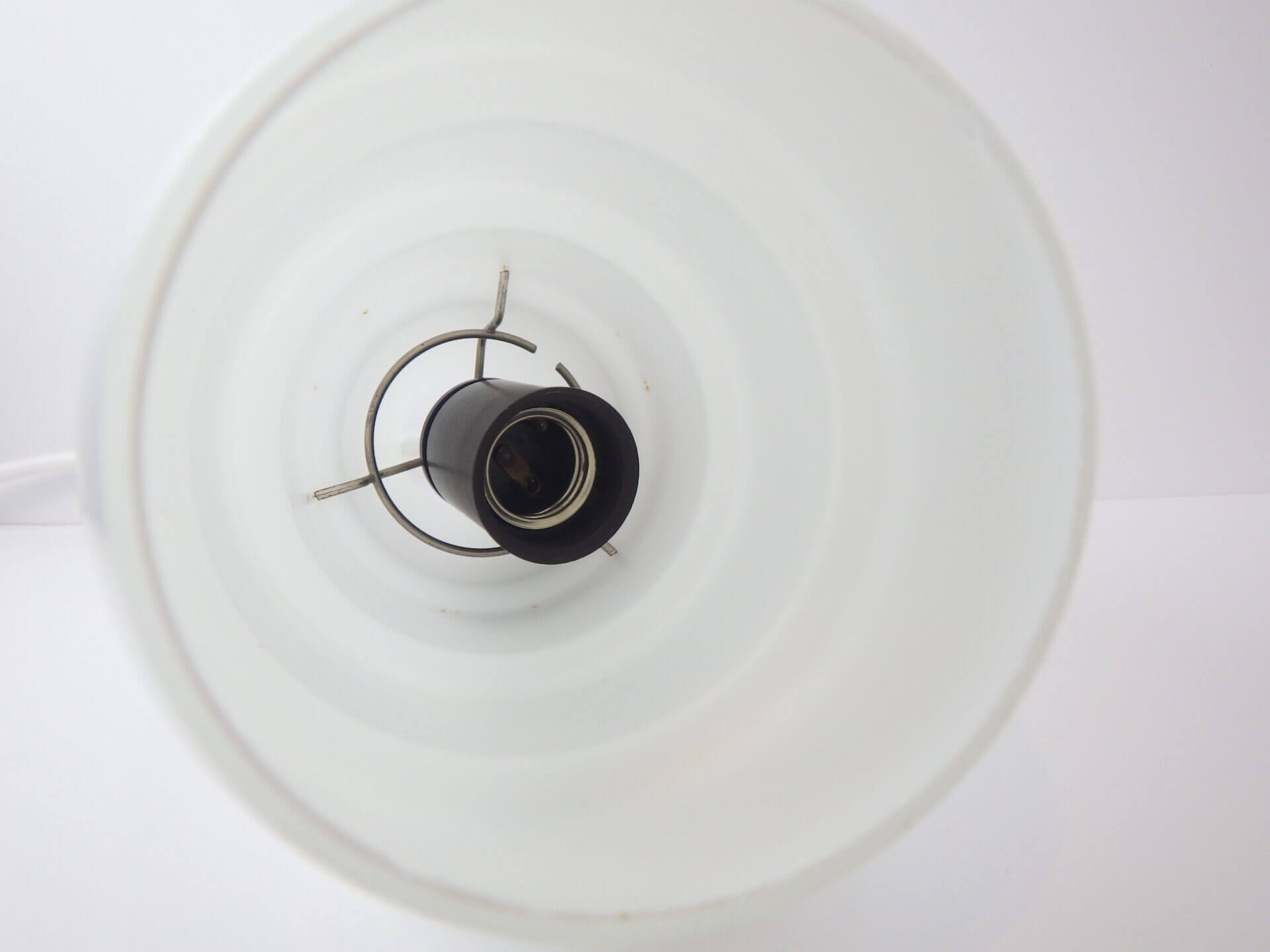 | condition | ガラスシェードの縁に数カ所小さなチップ(かけ)があります。 その他、経年による小キズ、汚れ等ありますが、ビンテージらしい良い雰囲気です。 不明な点や追加画像の必要な場合は、お気軽にお問い合わせ下さい。 ※電源は日本式の角形引掛シーリングに変更してあります。 |