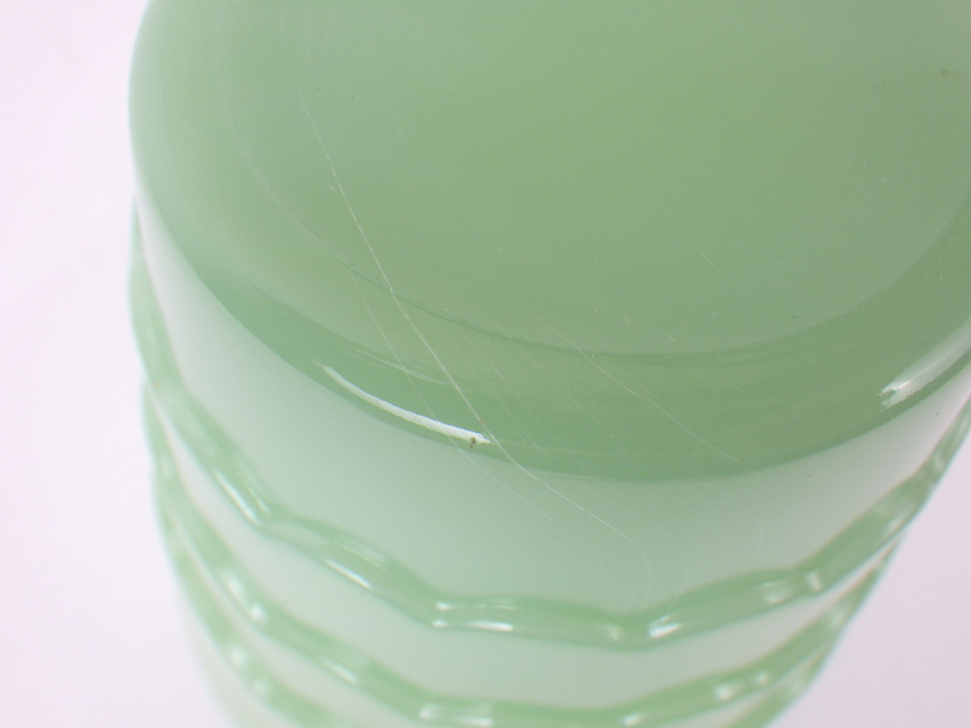 | アメリカで買い付けました。 ファイヤーキング、ジェダイのフラワーポットです。 小さな花束や野の花を飾ったり、ペン立てなどにしてお使いいただくのも良さそうですね。 上部のリムはもこもこしたデザインと、平らなデザインの二種類あり、こちらはもこもこしたデザインです。 |