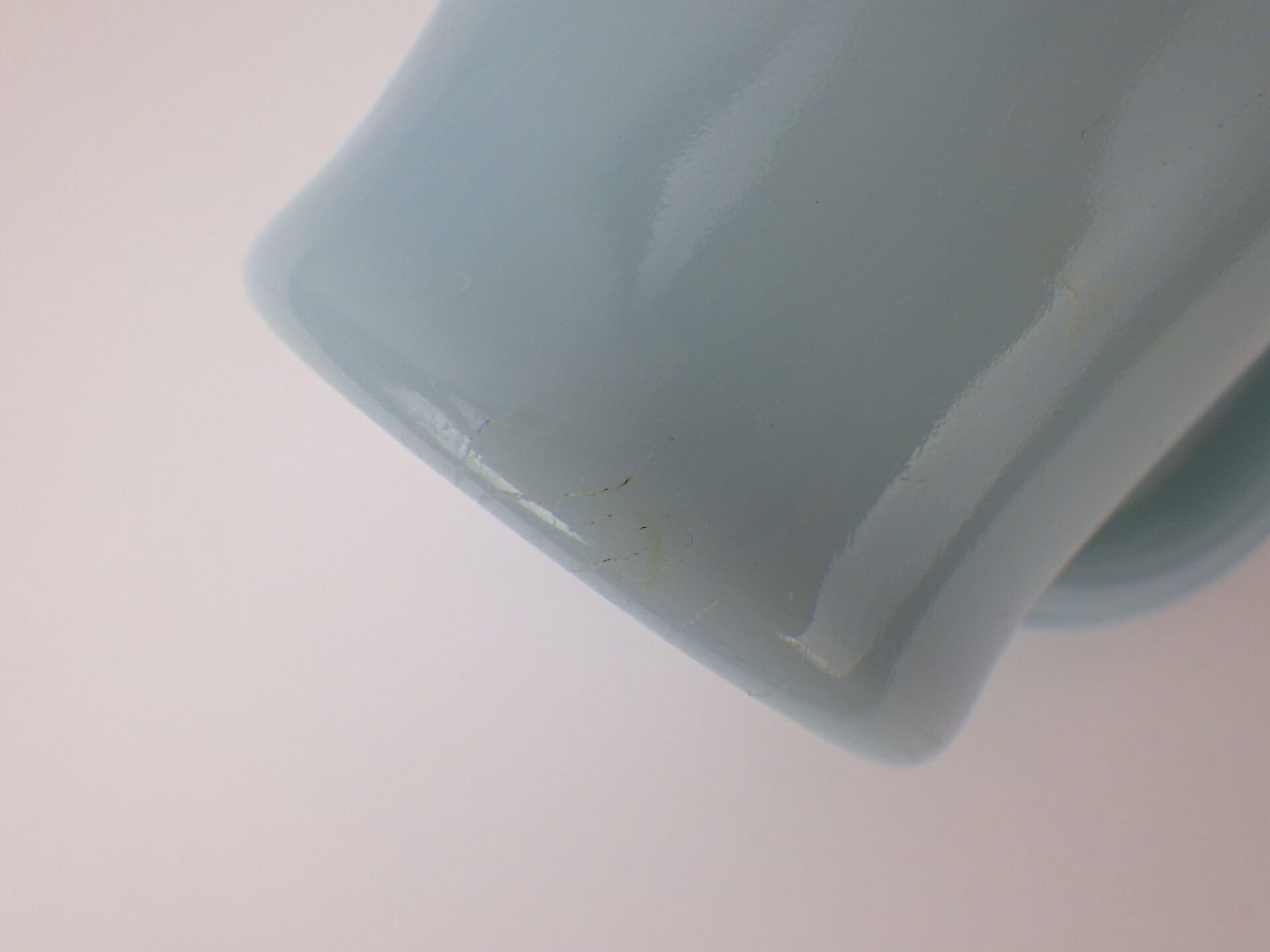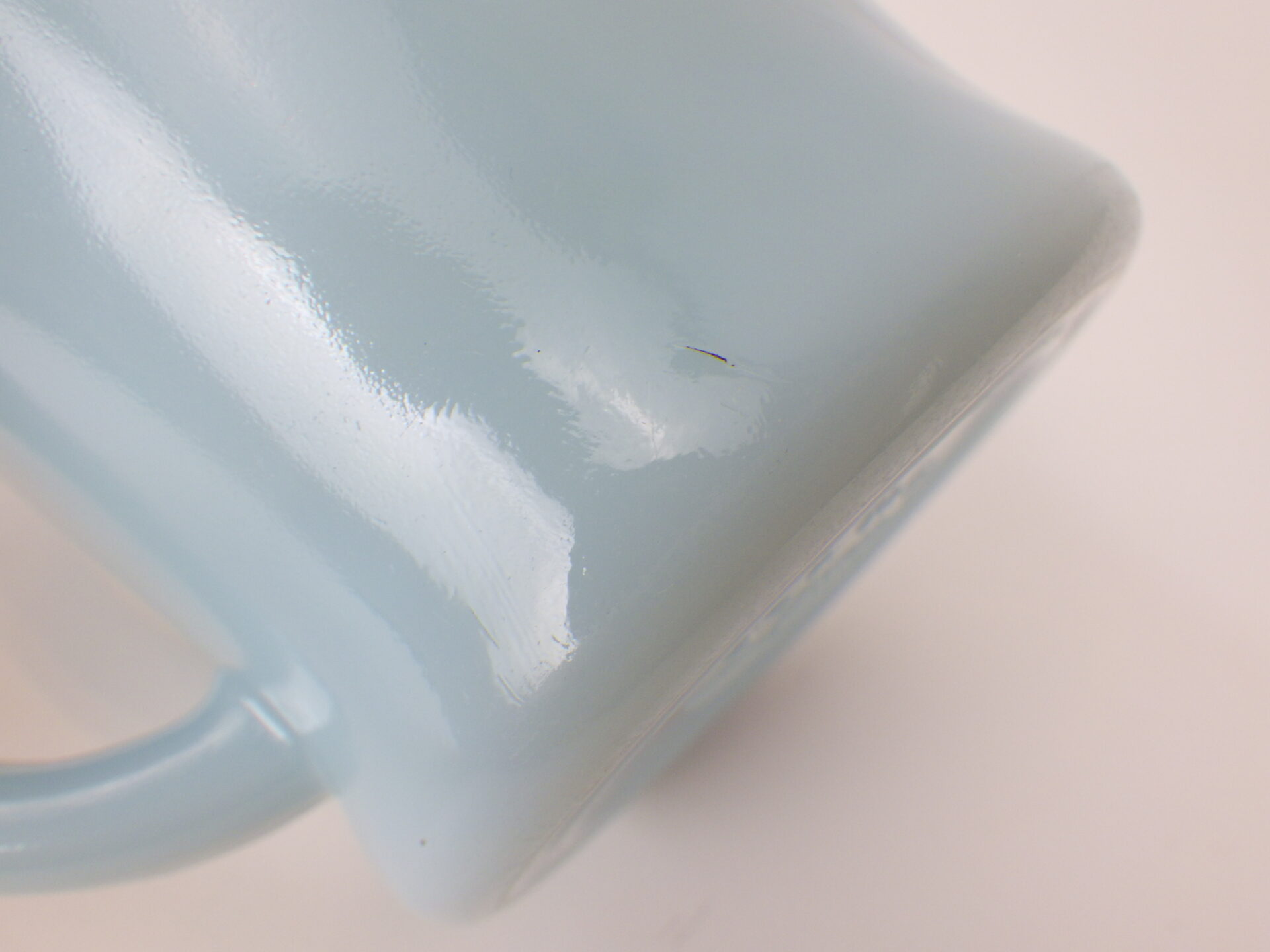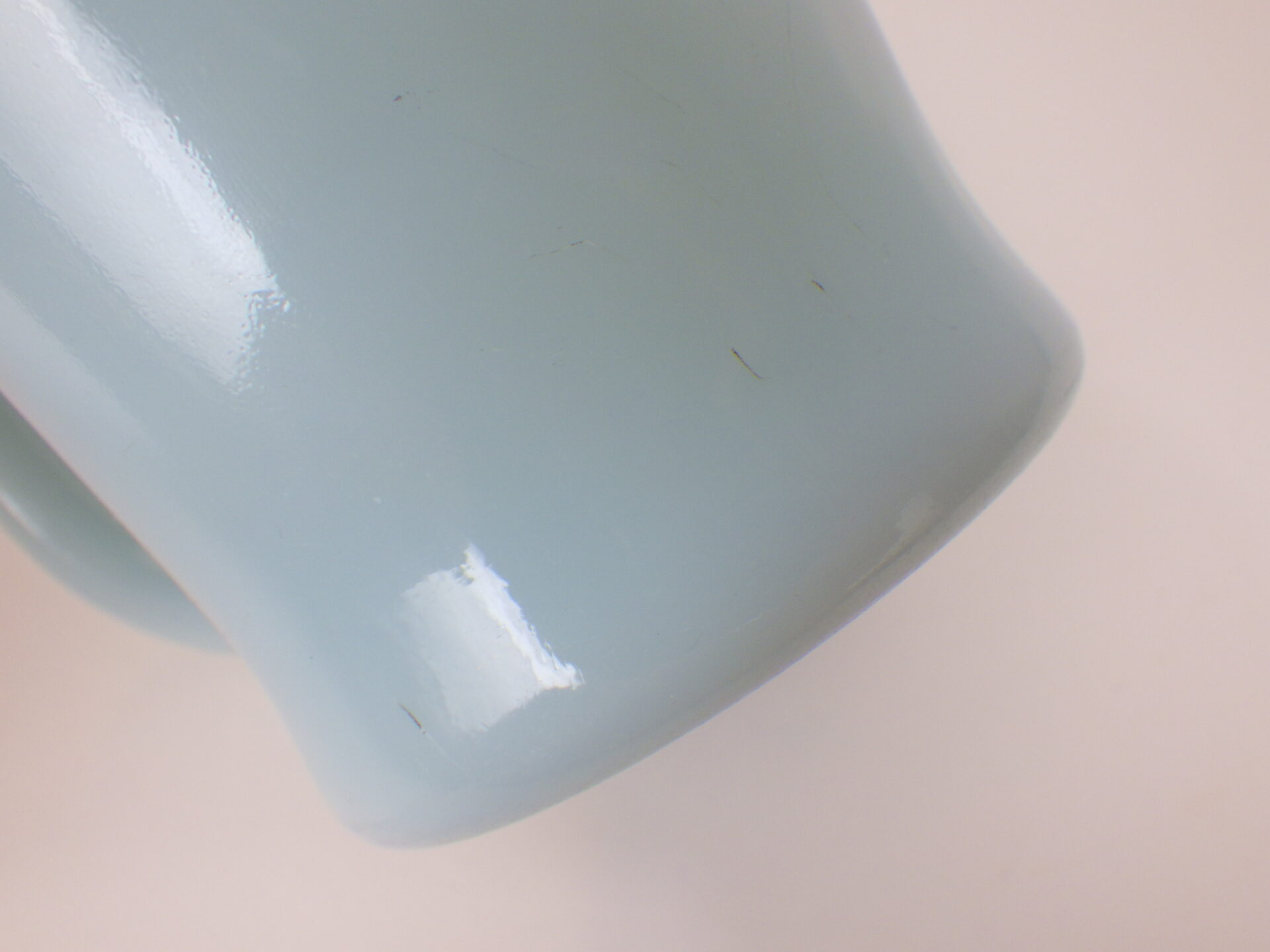 | condition | リム、ボトムにわずかなスレがみられます。 側面にわずかな着色、薄い金属痕がみられます。 ミルクガラス特有の製造時よりのヘアライン、劣化線などありますが、ご使用に影響のあるダメージはなく、ツヤもあり良い状態です。 その他気になる点や、追加画像の必要な場合は、お気軽にお問い合わせ下さい。 |