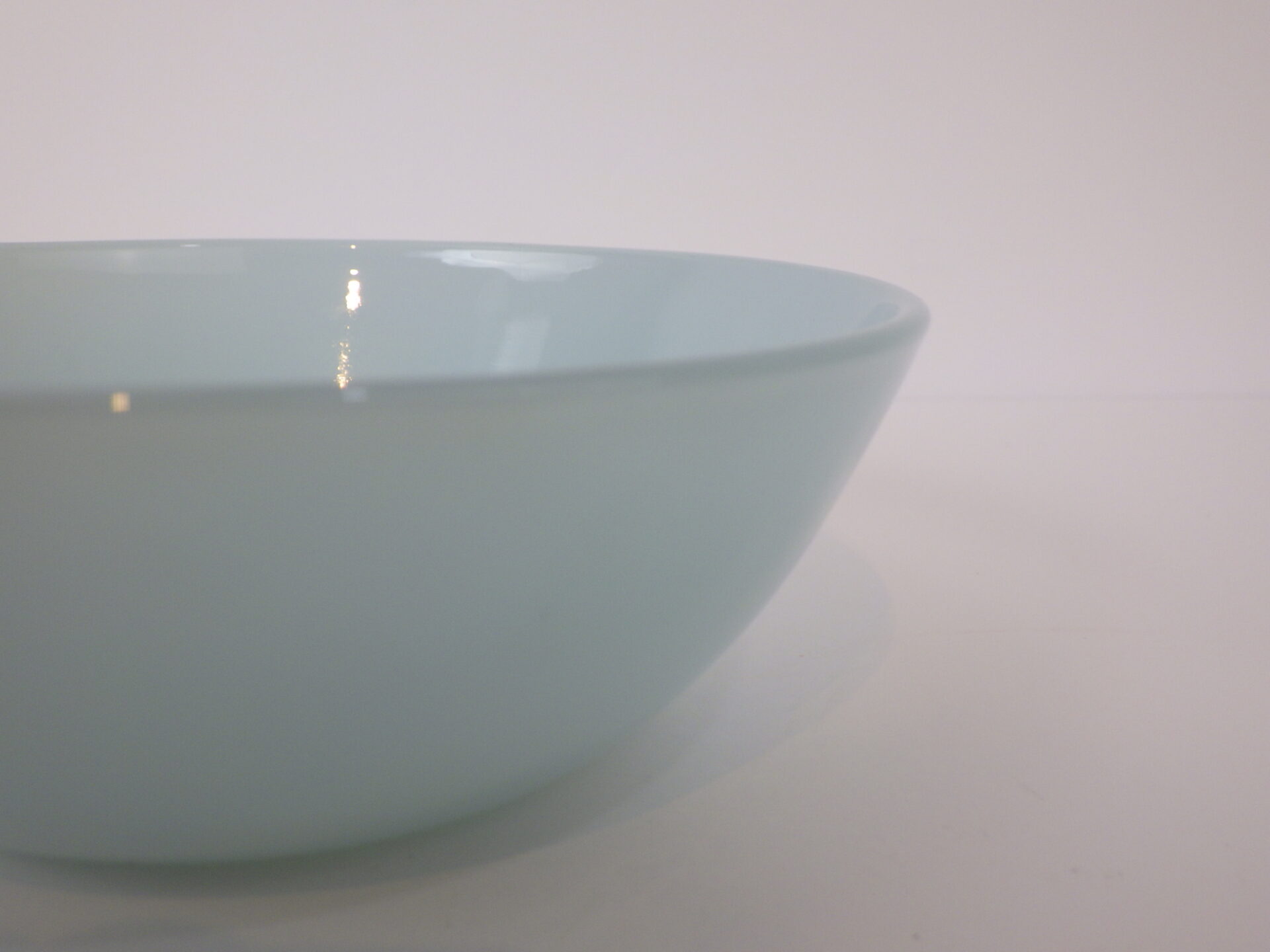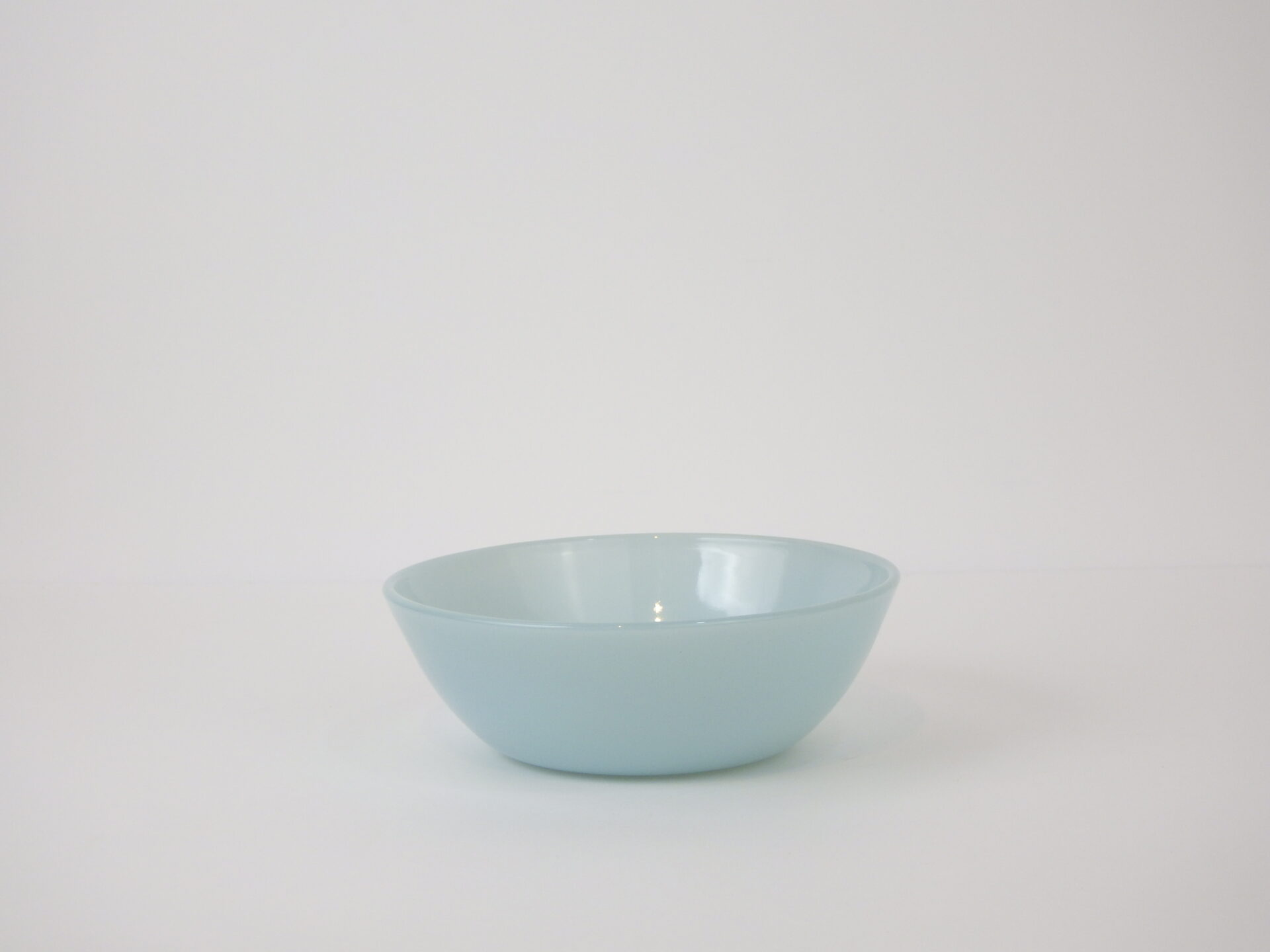 | アメリカで買い付けました。 1956年~58年の三年間だけ製造されていた、ファイヤーキング、ターコイズブルーのベリーボウルです。 アイスやフルーツなどのデザートや、サラダなどをちょこっと盛り付けるのに良いサイズです。 |