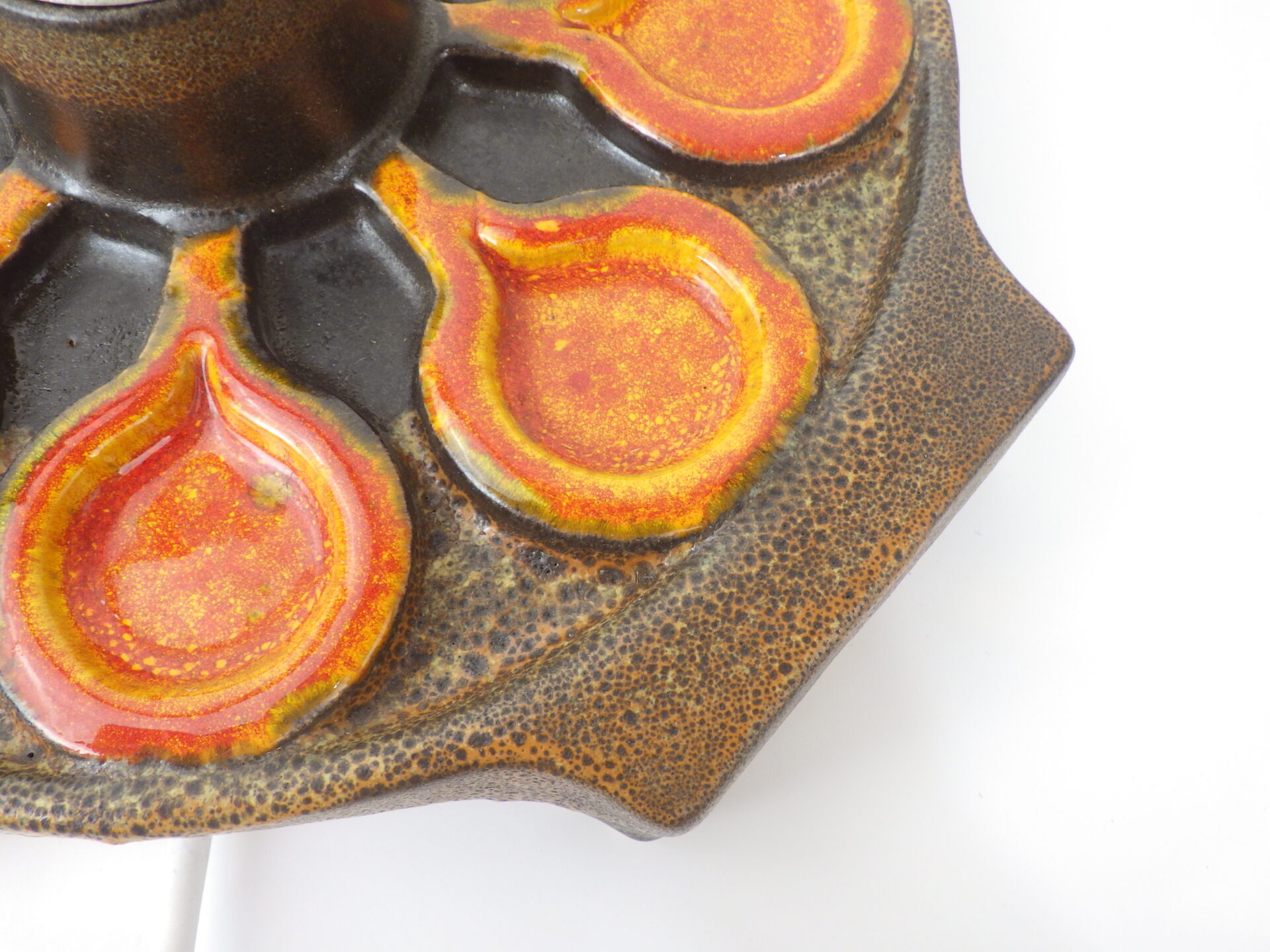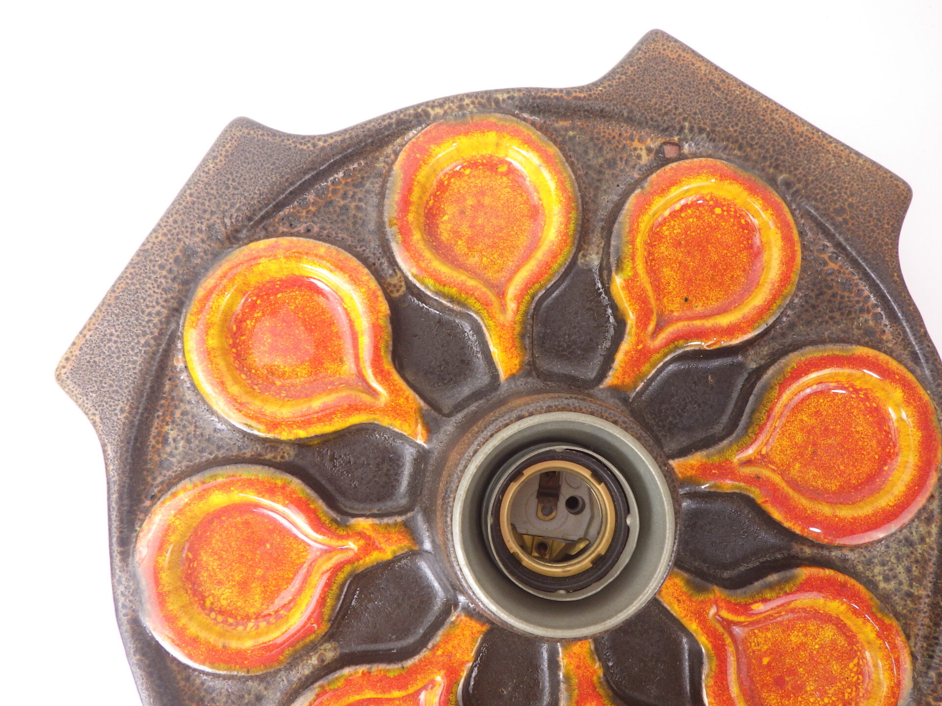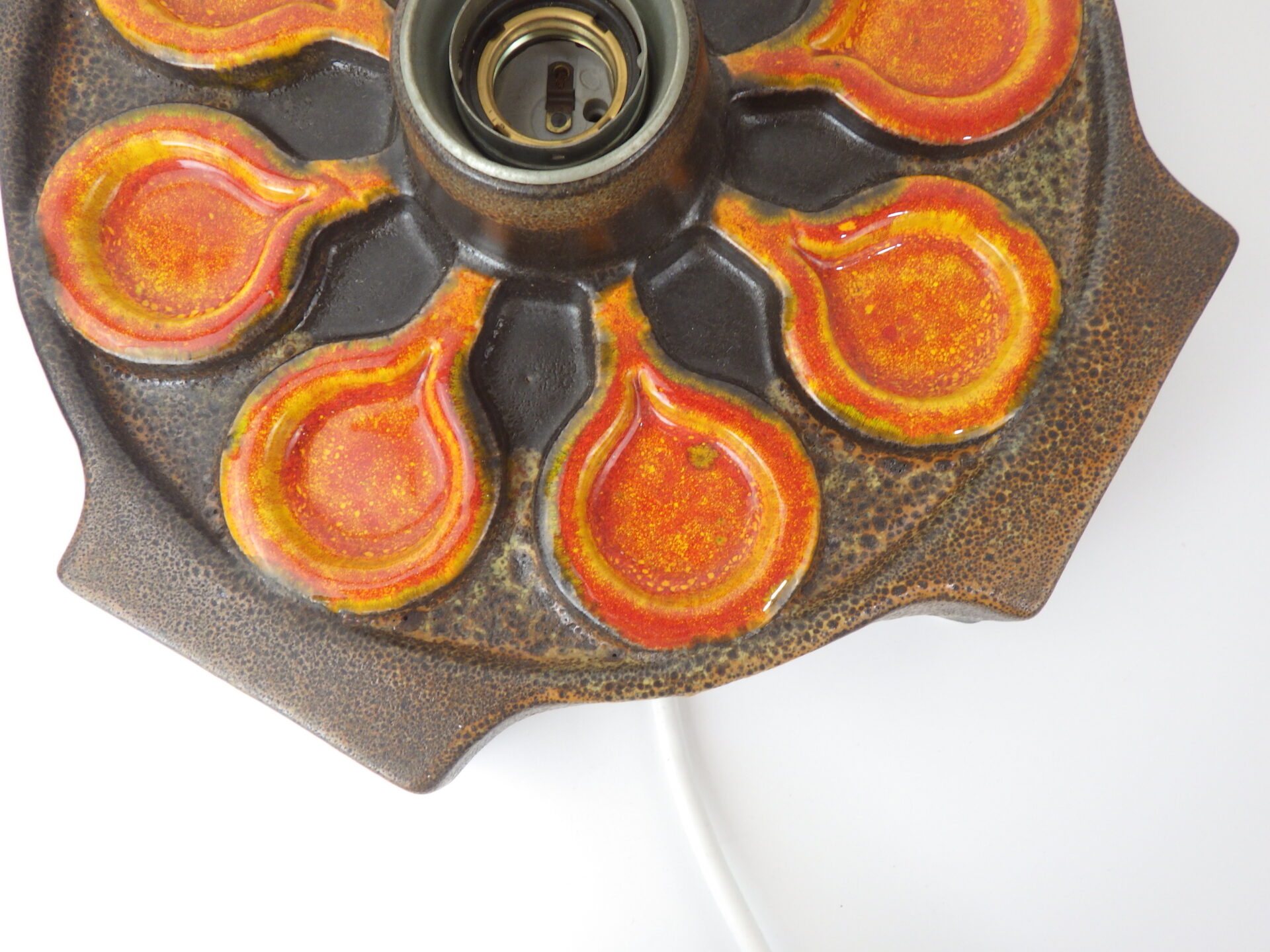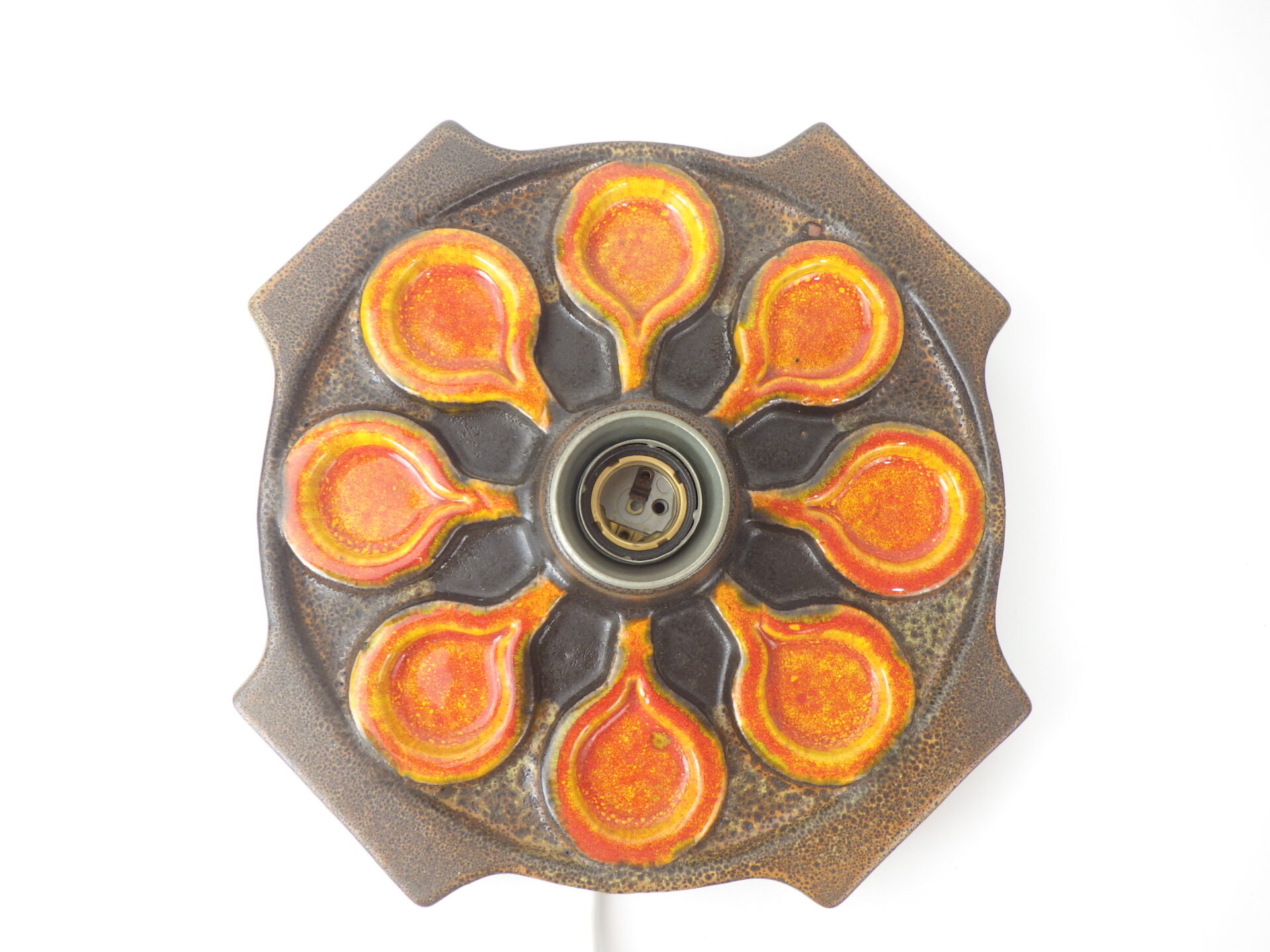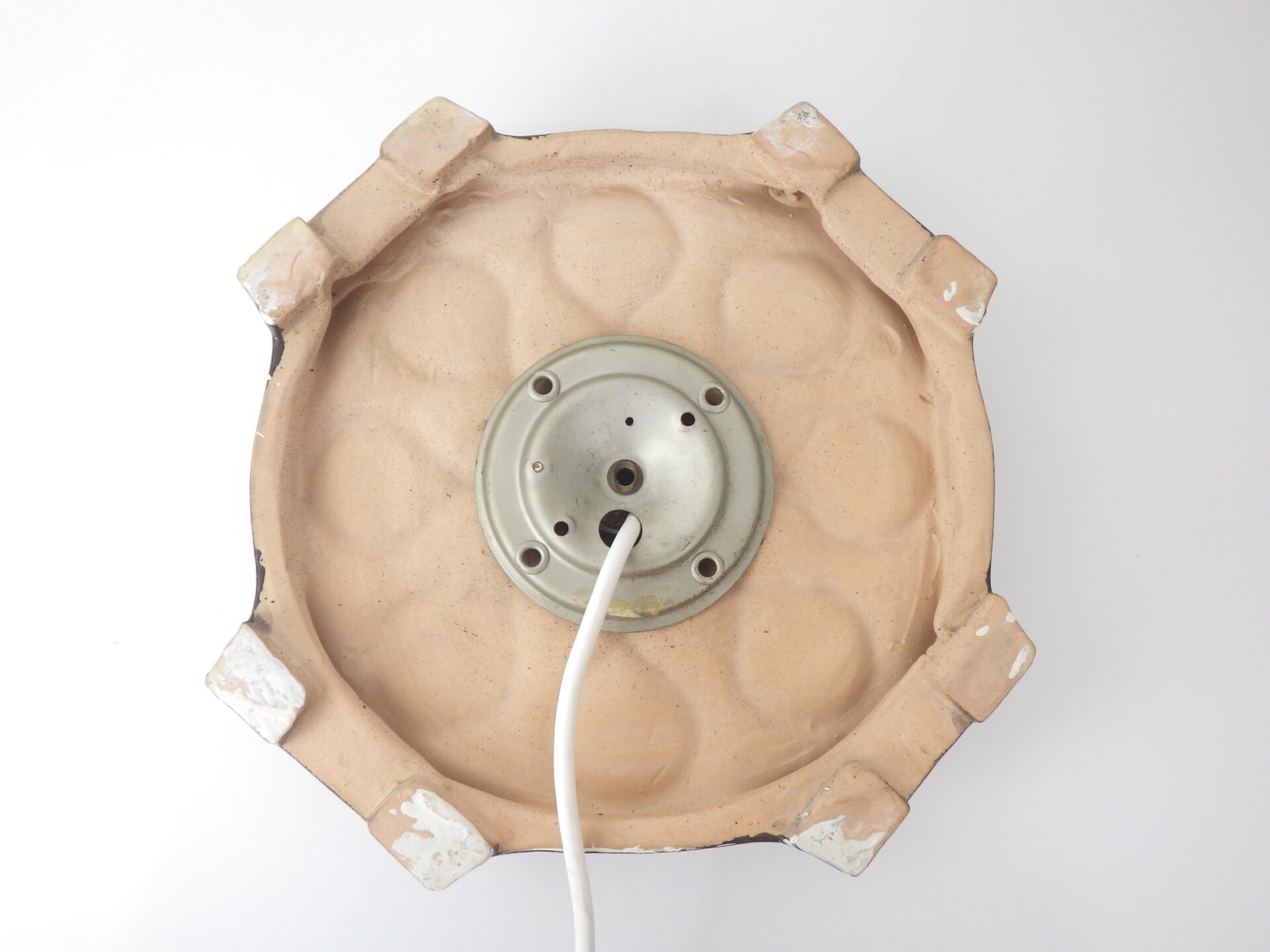 | ヨーロッパで買い付けました。 German art potteryと呼ばれるFat Lavaの陶板のウォールランプです。 ブラウンのまだらなベースに明るいオレンジの花弁が広がるような、大変鮮やかで目を惹くデザインです。 空間に華やかさや洗練された大人らしい可愛らしさを与えてくれるアイテムですね。 陶器ならではのぬくもりも感じられます。 ON/OFFのスイッチはコードに付いています。 電球取り付け部の内側のシルバーのカバーがネジになっており、それを外すと陶板と分解出来ます。陶板を外すことで、壁への取り付けを行うことが出来ます。 (電球の口金サイズ:E26 LED対応) |