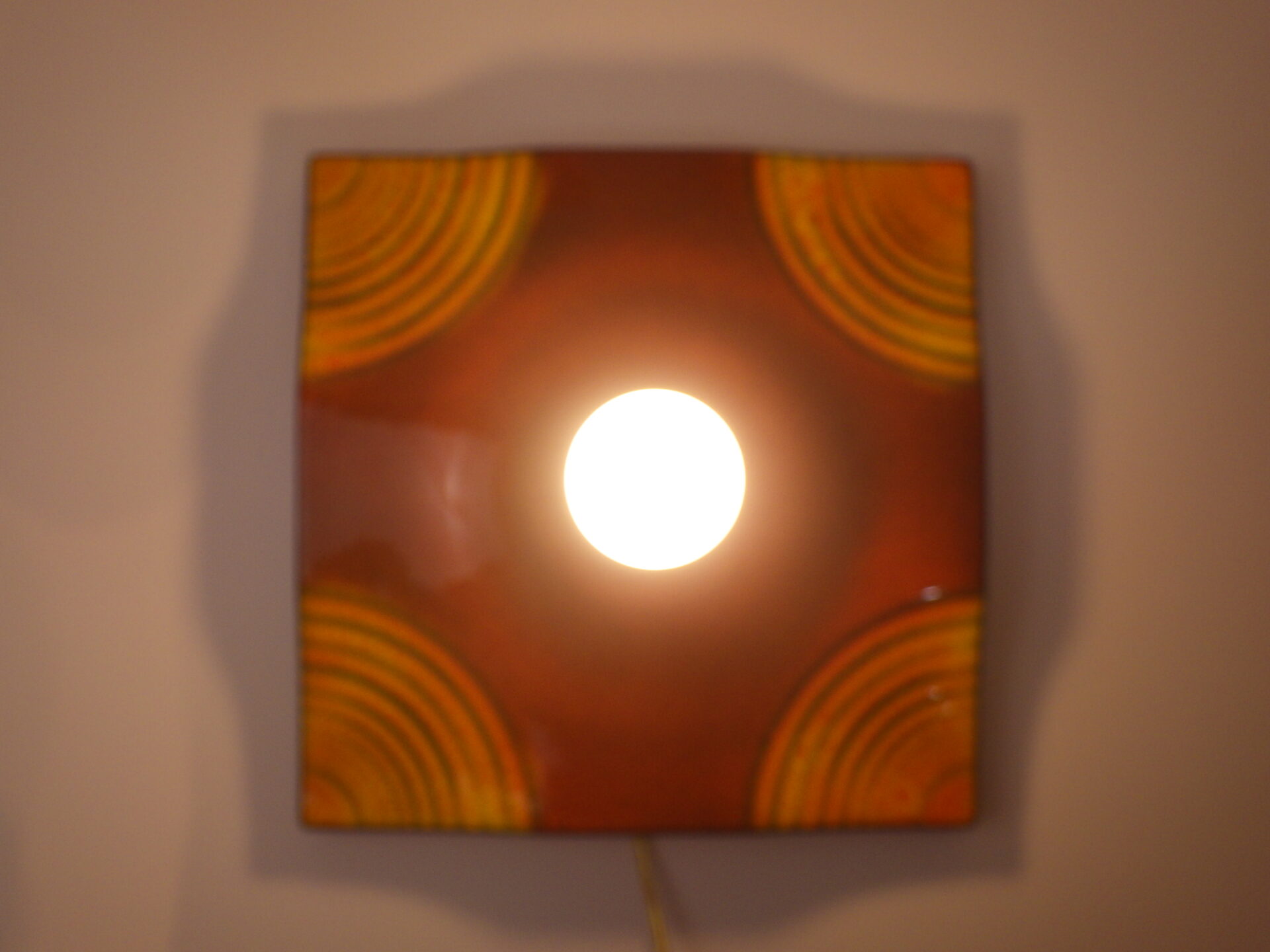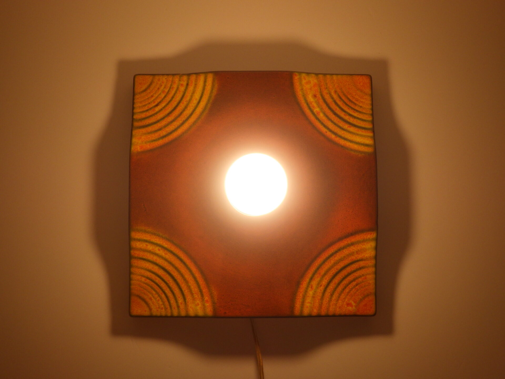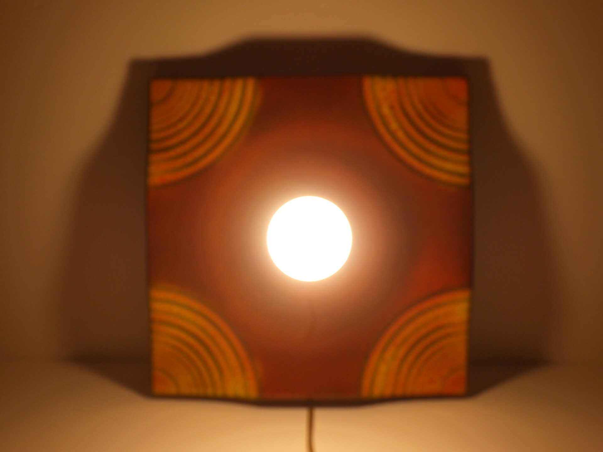| ヨーロッパで買い付けました。 German art potteryと呼ばれるFat Lavaの陶板のウォールランプです。 落ち着いた色味の陶板の四隅にイエローのアクセントが効いており、大変目を惹きます。 絵画を飾るような気分で壁に掛けたくなるランプですね。 空間に華やかさや洗練された大人らしい可愛らしさを与えてくれるアイテムです。 陶器ならではのぬくもりも感じられます。 ON/OFFのスイッチはコードに付いています。 電球取り付け部の内側のシルバーのカバーがネジになっており、それを外すと陶板と分解出来ます。陶板を外すことで、壁への取り付けを行うことが出来ます。 (電球の口金サイズ:E26 LED対応) |