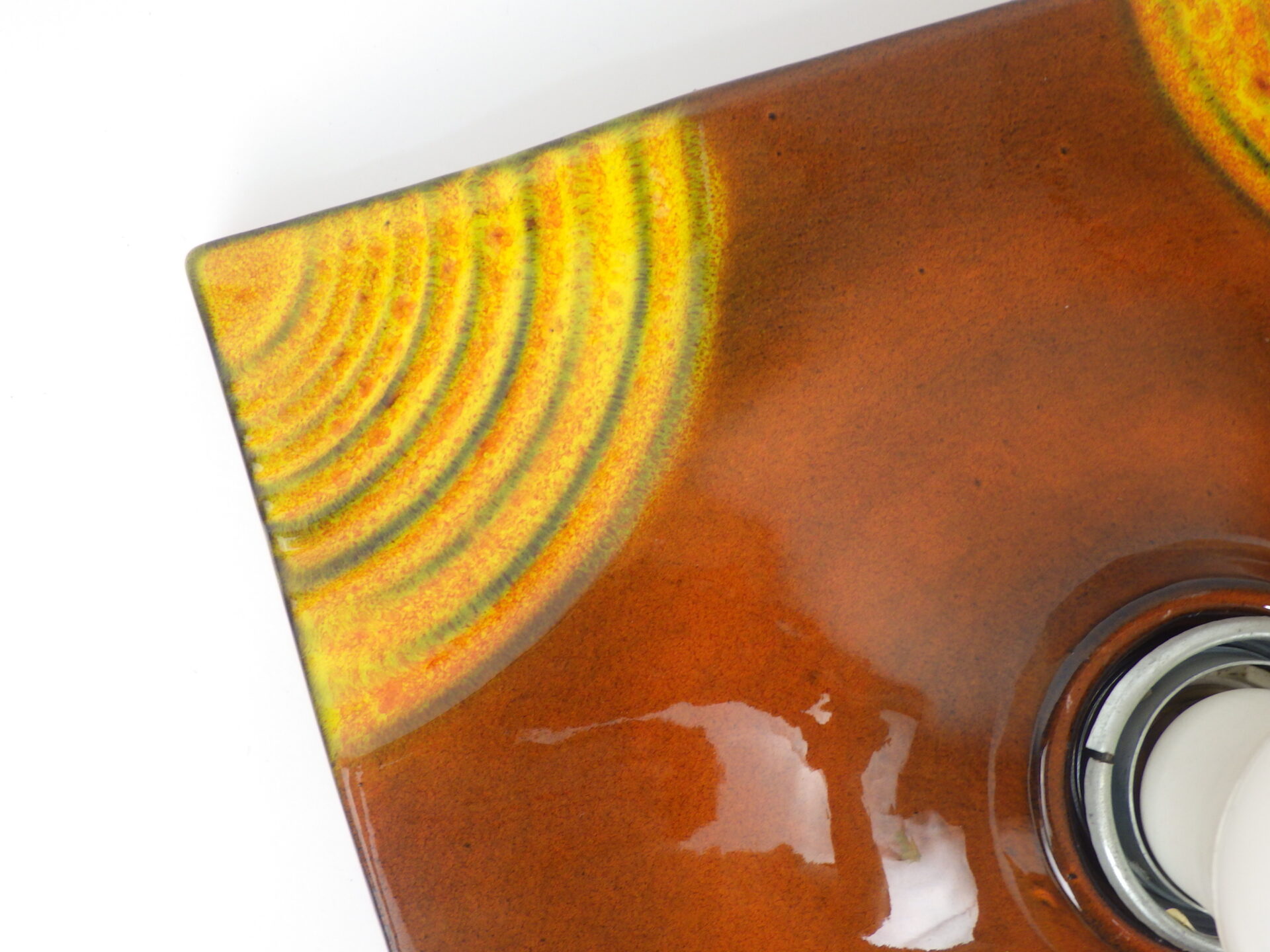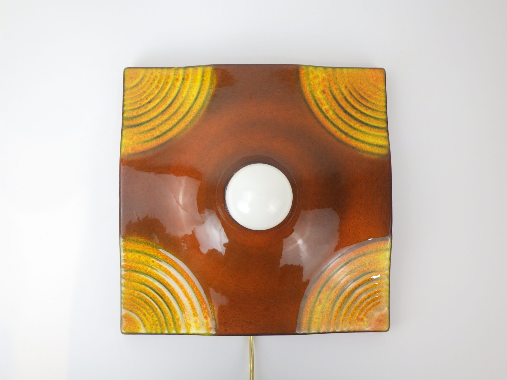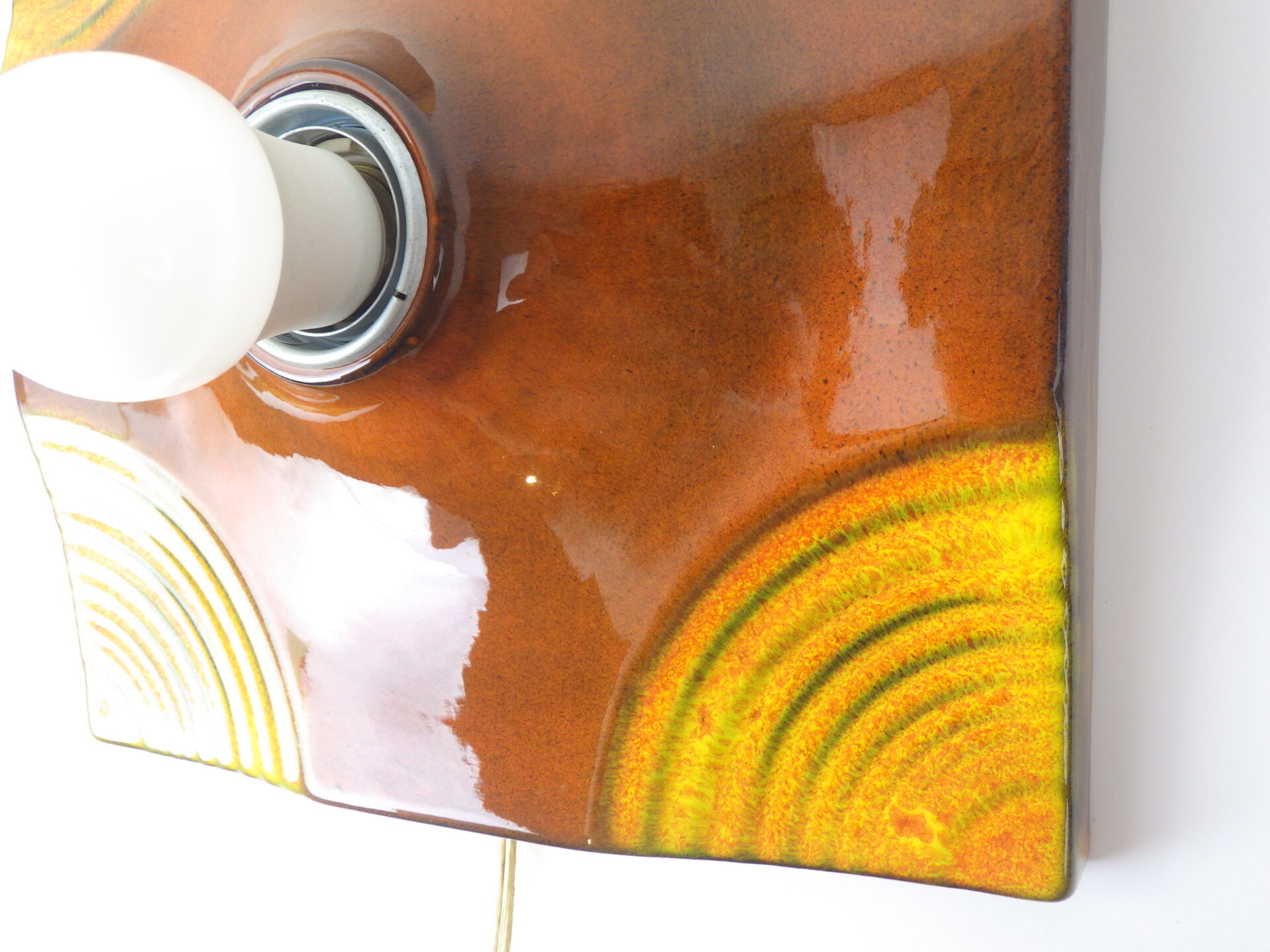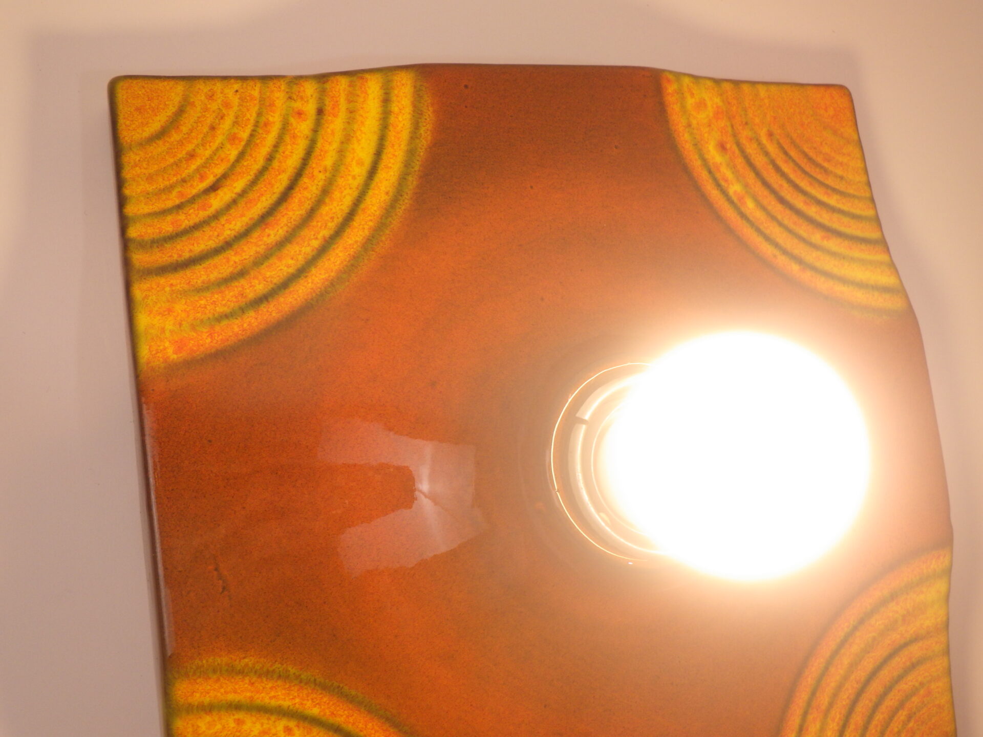 | ヨーロッパで買い付けました。 German art potteryと呼ばれるFat Lavaの陶板のウォールランプです。 落ち着いた色味の陶板の四隅にイエローのアクセントが効いており、大変目を惹きます。 絵画を飾るような気分で壁に掛けたくなるランプですね。 空間に華やかさや洗練された大人らしい可愛らしさを与えてくれるアイテムです。 陶器ならではのぬくもりも感じられます。 ON/OFFのスイッチはコードに付いています。 電球取り付け部の内側のシルバーのカバーがネジになっており、それを外すと陶板と分解出来ます。陶板を外すことで、壁への取り付けを行うことが出来ます。 (電球の口金サイズ:E26 LED対応) |