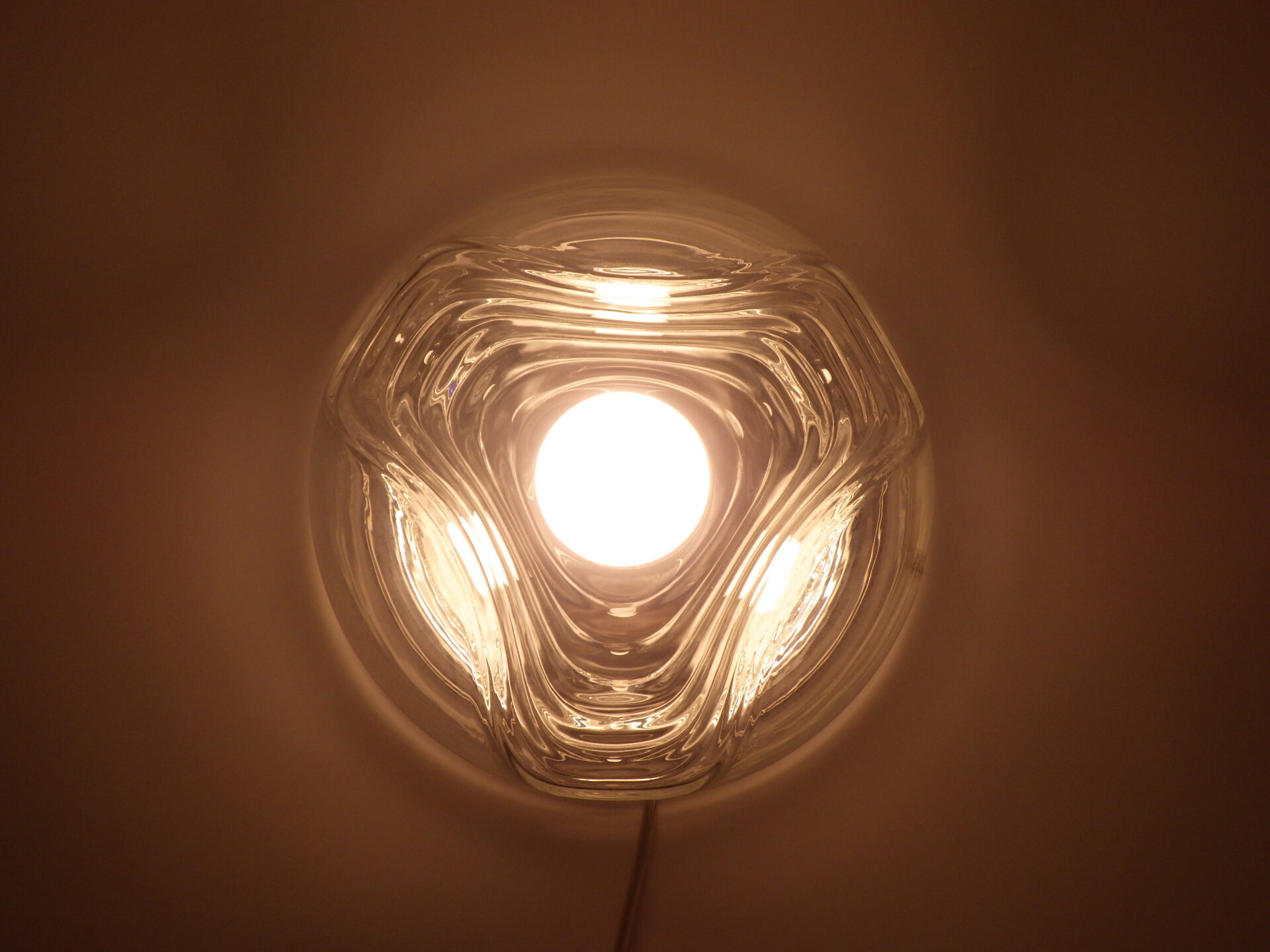 | ヨーロッパで買い付けました。 ビンテージのウォールランプです。 ドイツの老舗ガラス照明ブランドのパイル&プッツラーらしい、丸いフォルムに流線を描くようなヒダがしつらえられた印象的なフォルムです。 近未来を想像させるようなスペースエイジ感もありますが、上質な雰囲気もあり、様々なテイストの空間に合わせられそうです。 ON/OFFのスイッチはコードに付いています。 (電球の口金サイズ:E26 LED対応) |