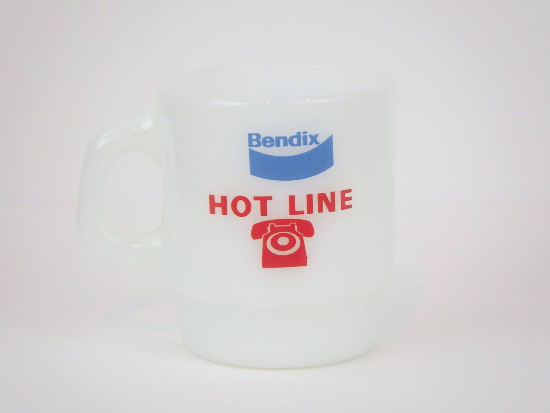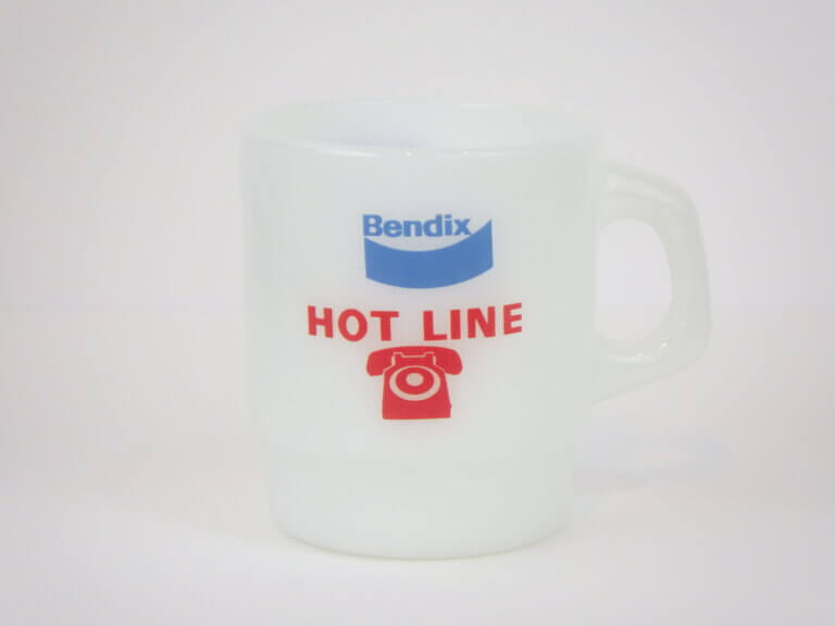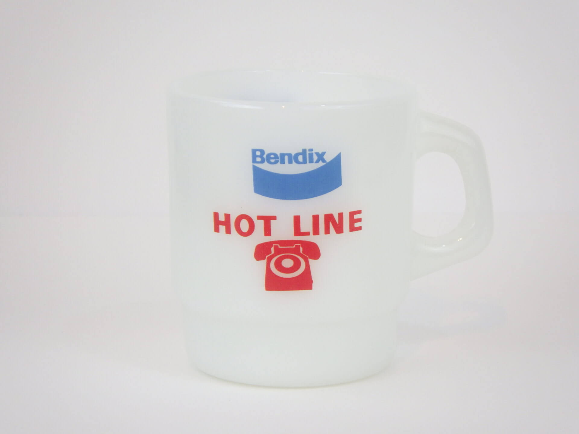 | アメリカで買い付けました。 ファイヤーキングのアドバタイジングマグです。 1924年創業BENDIXは、車や航空機のパーツなどを製造していた会社です。 赤と水色のカラーの組み合わせと、電話のマークが可愛いアイテムです。 |