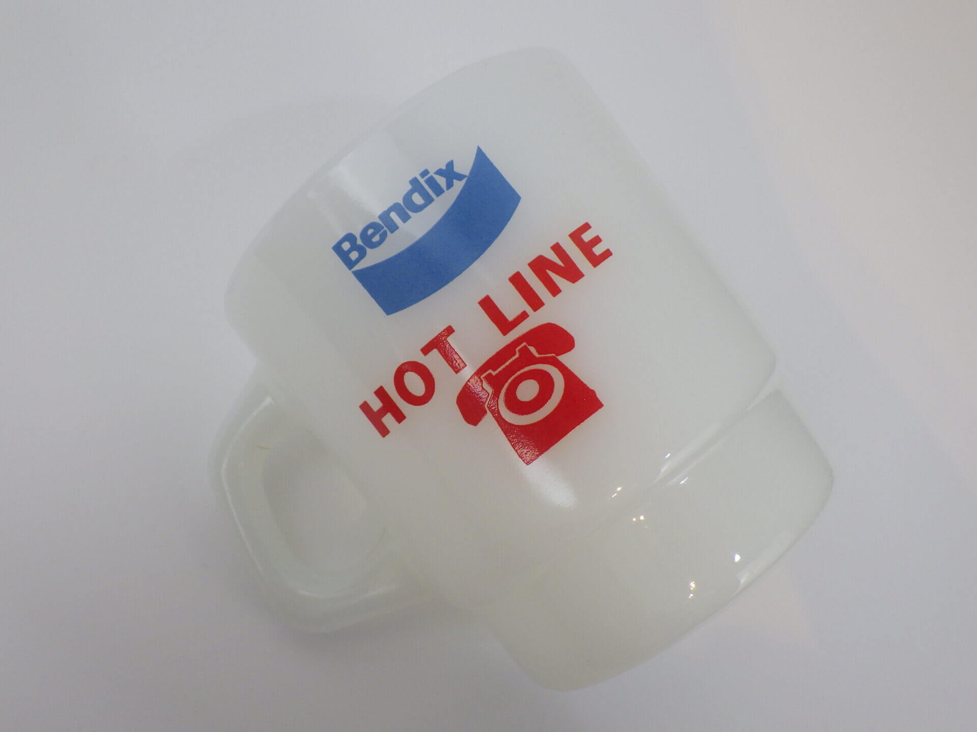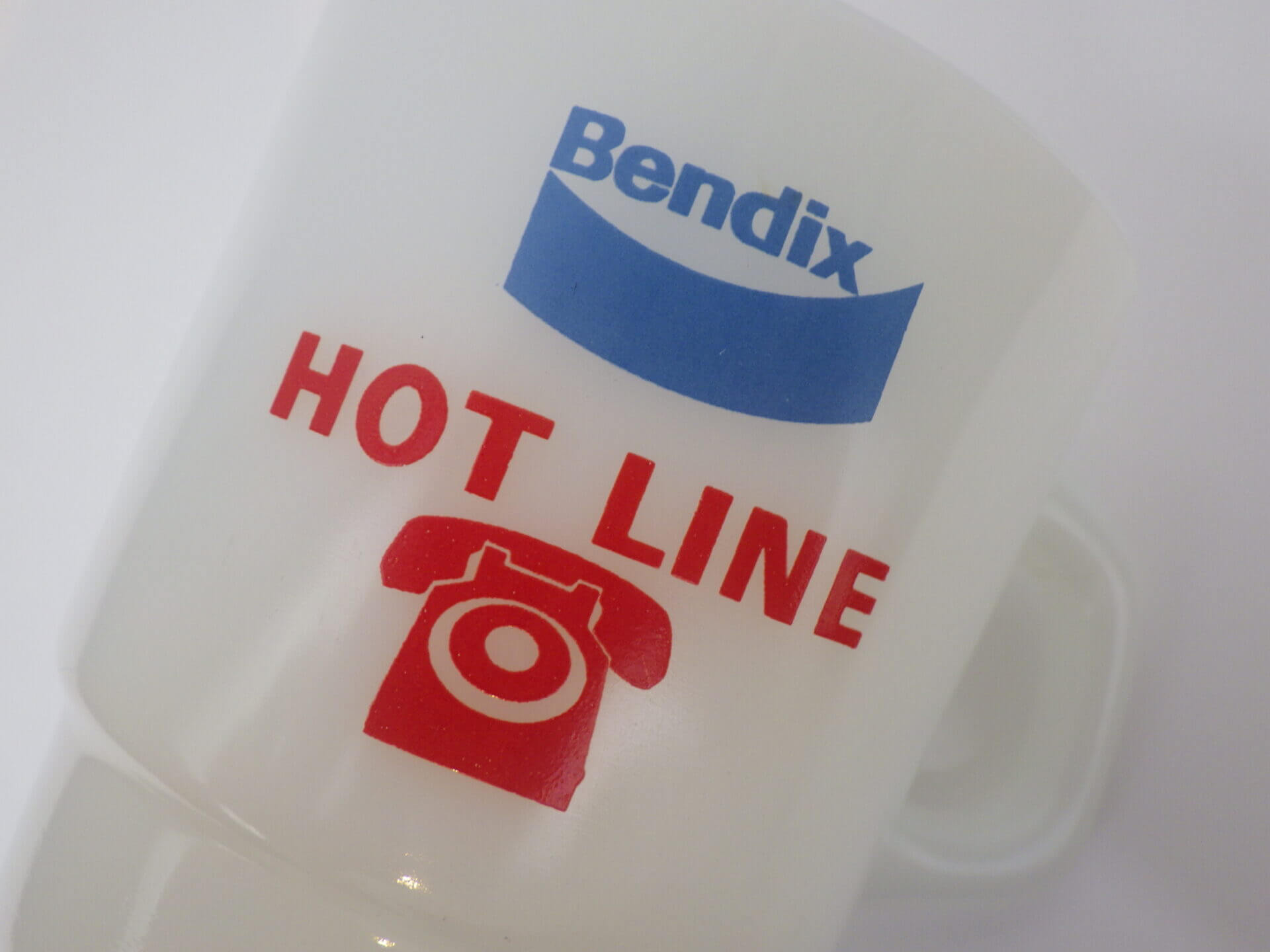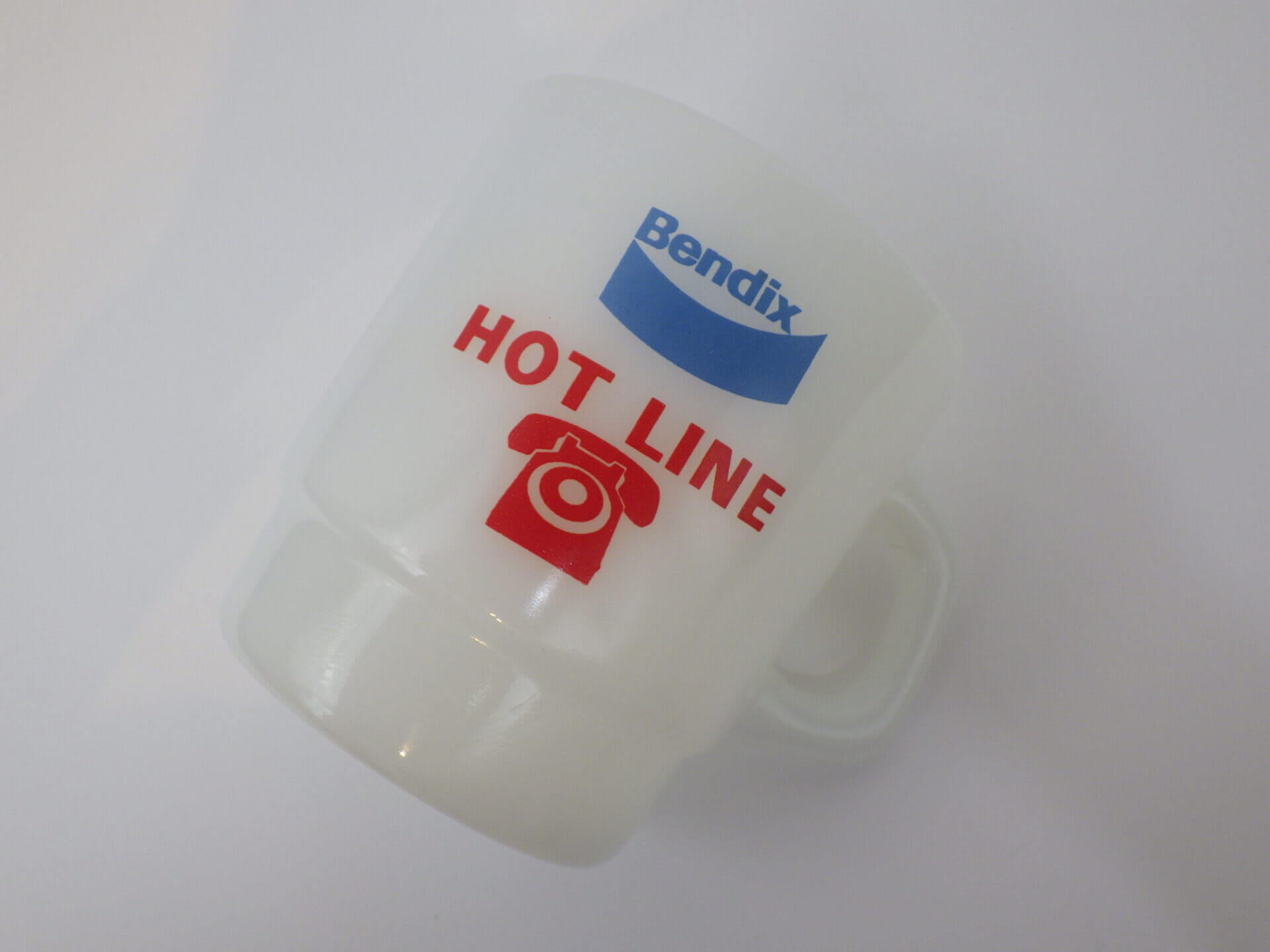 | アメリカで買い付けました。 ファイヤーキングのアドバタイジングマグです。 1924年創業BENDIXは、車や航空機のパーツなどを製造していた会社です。 赤と水色のカラーの組み合わせと、電話のマークが可愛いアイテムです。 |