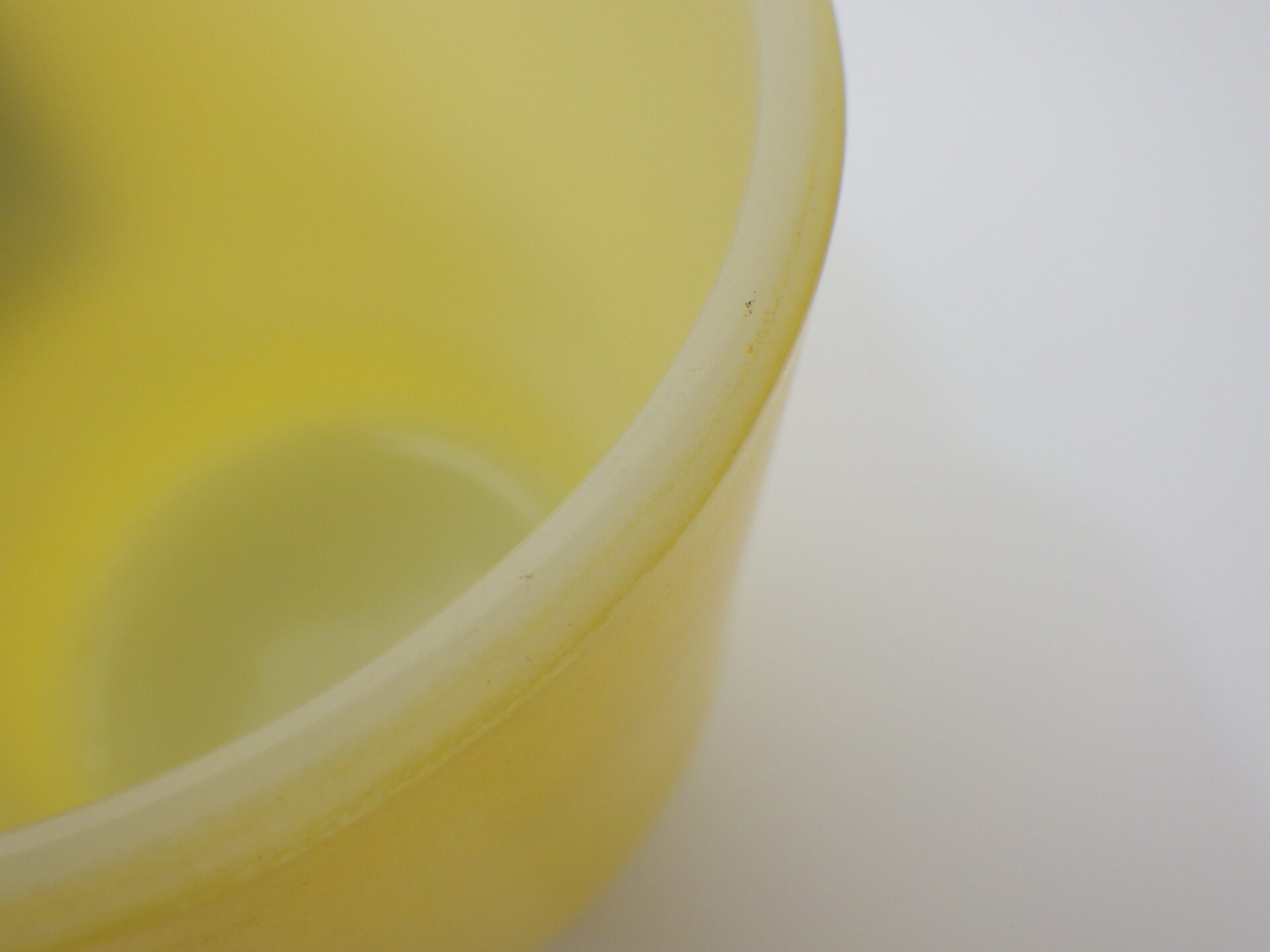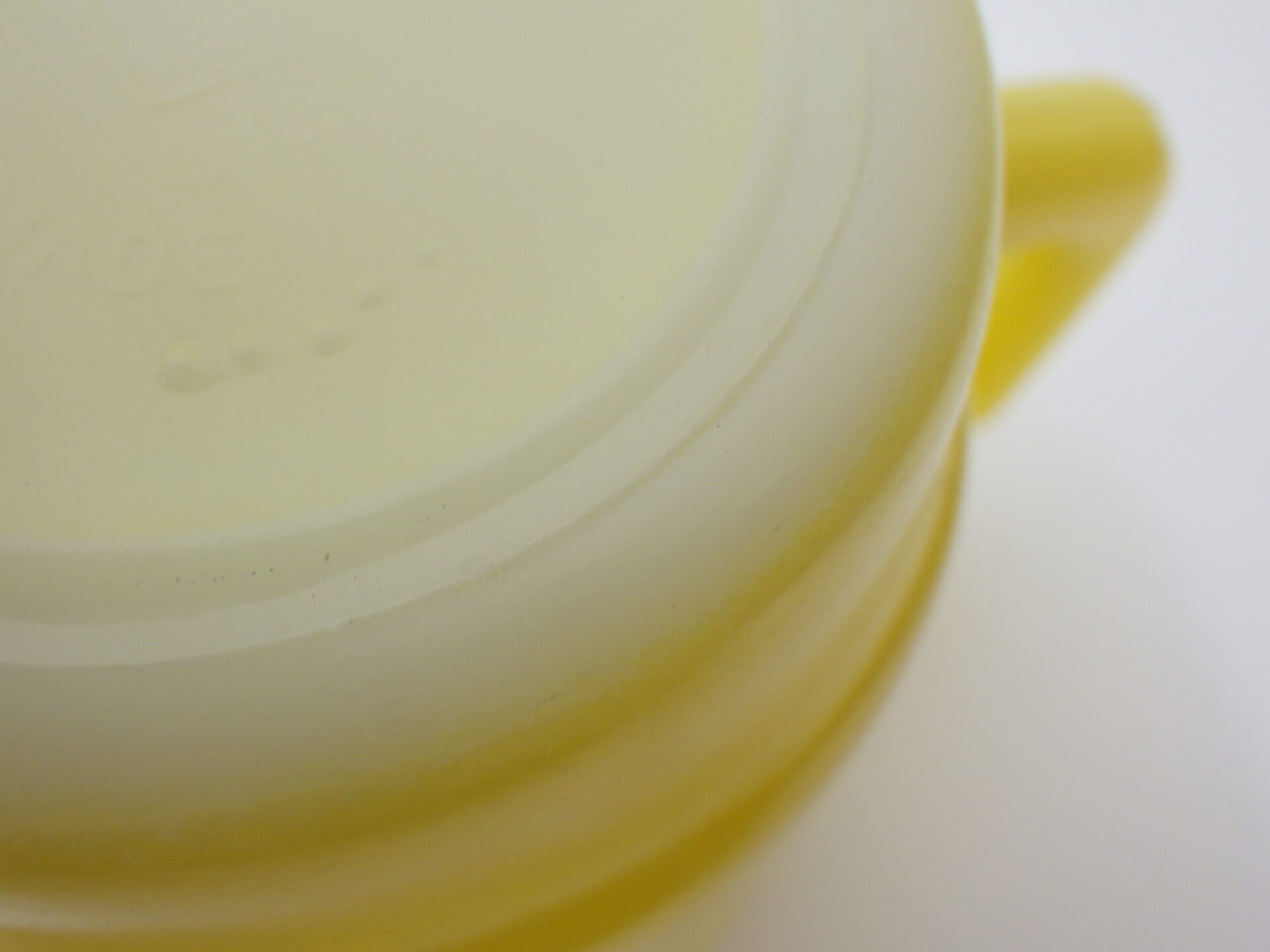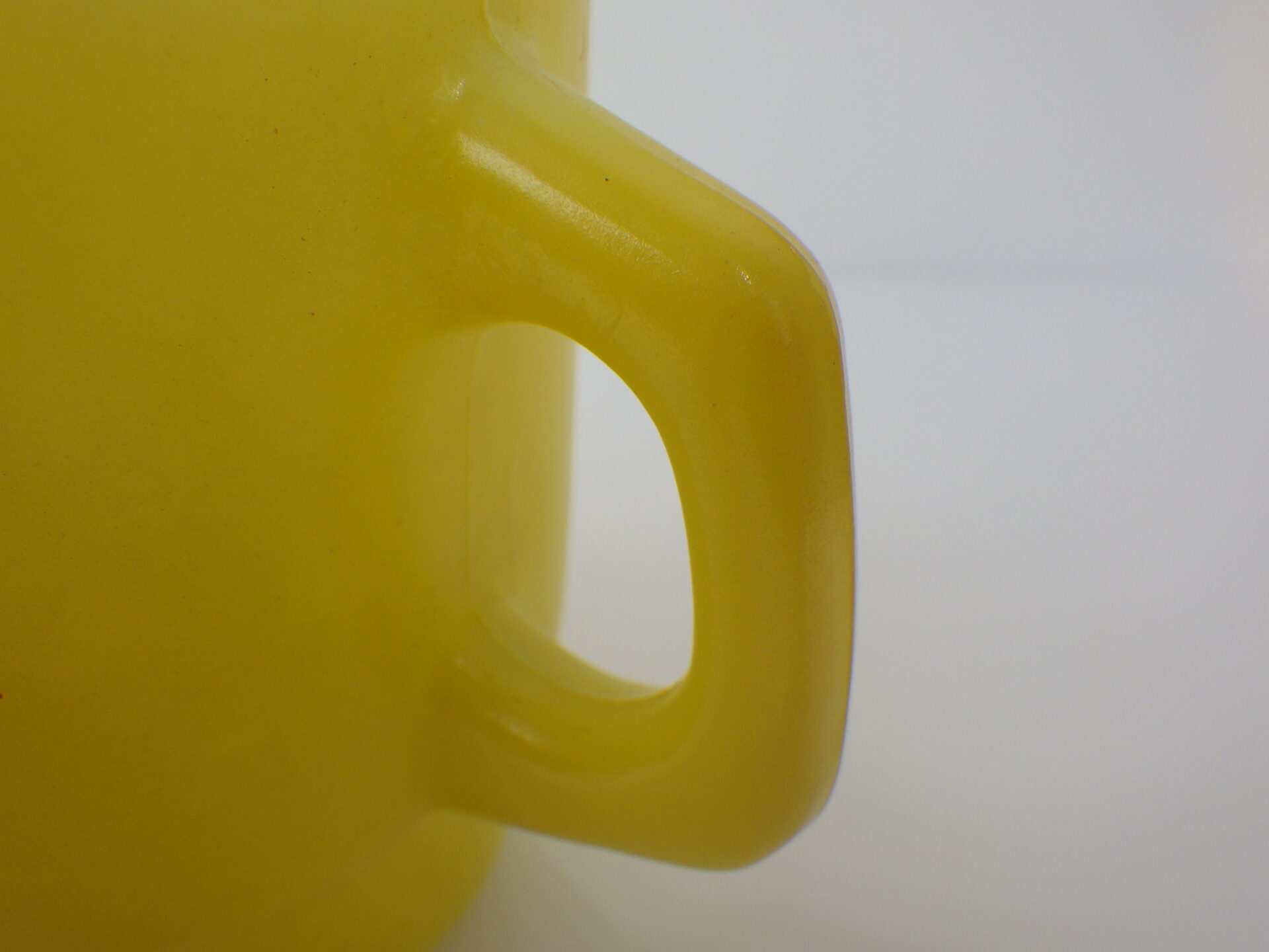| condition | リム、ボトム、内部に製造時よりの凹凸、わずかなスレがあります。 リム、ボトムに薄い着色があります。 側面にわずかな汚れがあります。 ハンドル付近に劣化線があります。 側面と内側、ボトムに製造時よりのヘアライン、凹凸、ガラスのヨレがありますが、ご使用に影響はありません。 その他ワレ、カケなく、ツヤもあり綺麗な状態です。 |
