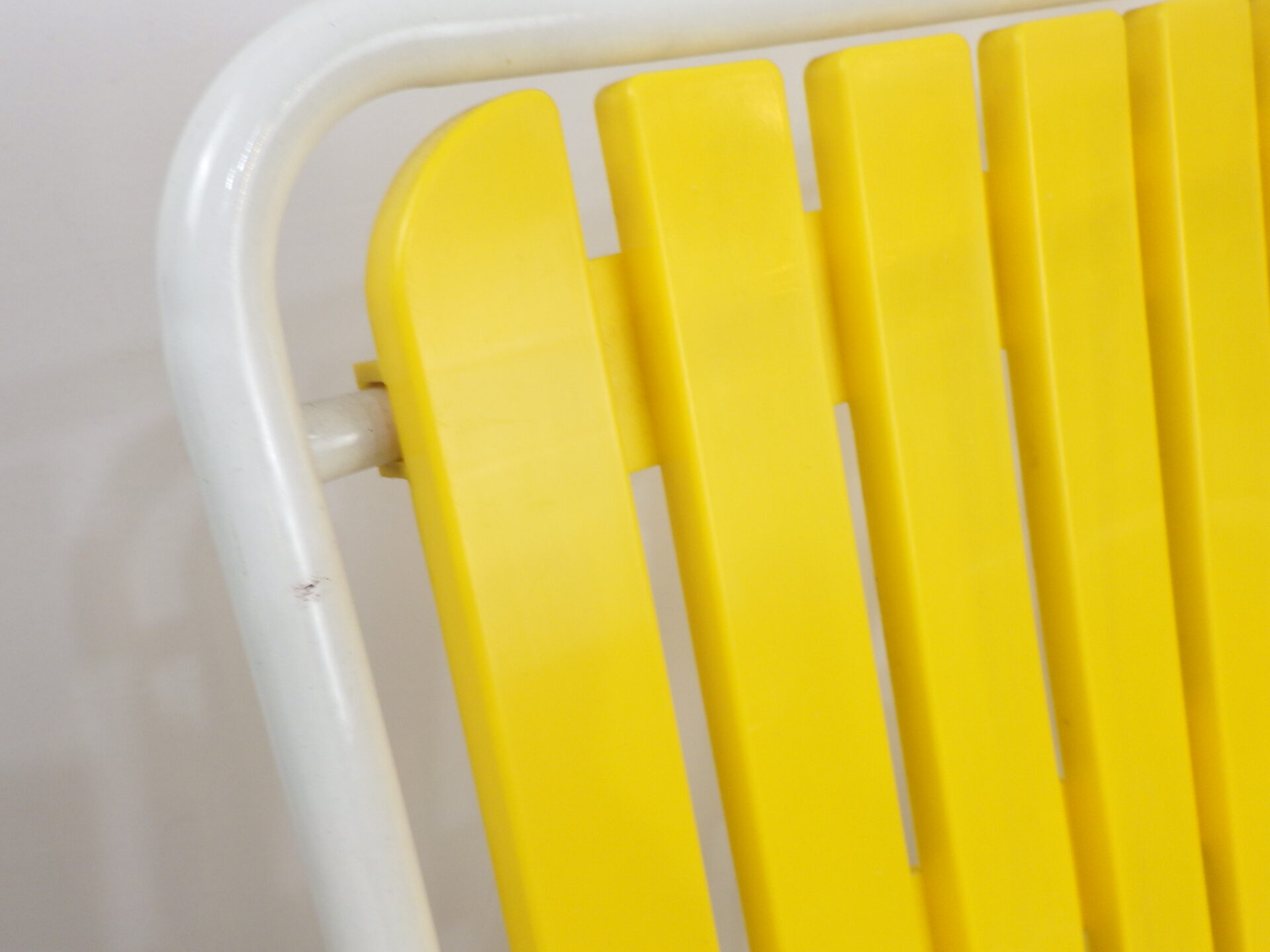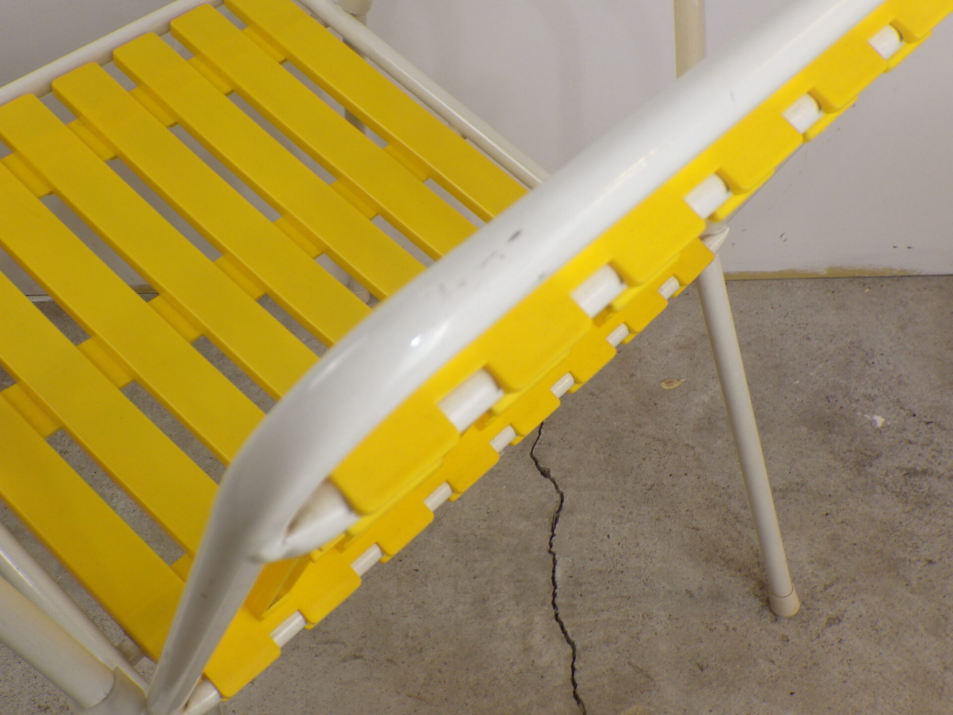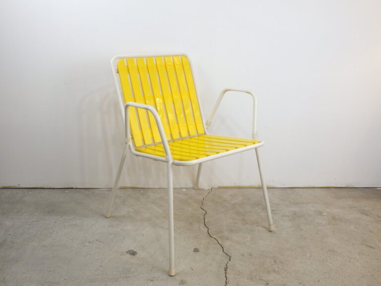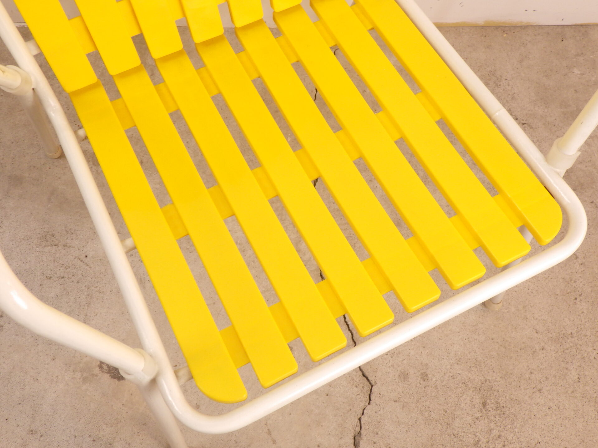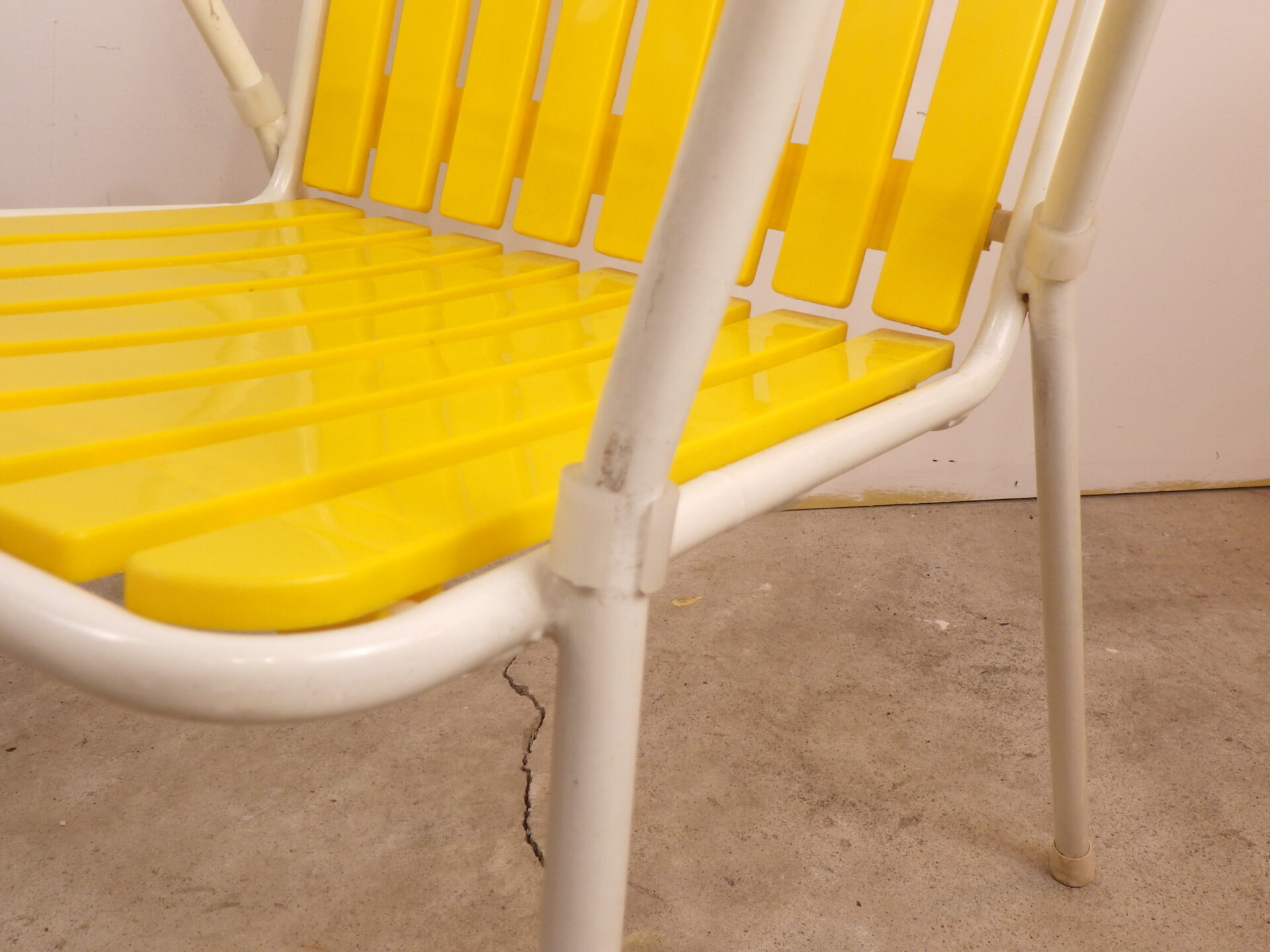| アメリカで買い付けました。 イエローとホワイトの組み合わせがが可愛いビンテージチェアです。 明るい印象を与えてくれるチェアですので、お部屋に置けばこれだけで良いアクセントになってくれます。 また、スタッキング出来ますので、何客か余分に持っておいて、来客時にさっと出せて便利かも。 水洗いも可能なので、ウッドデッキや庭先で、ガーデンチェアとしてご使用いただいても良さそうです。 しっかりとしたサイズ感ですが、軽量なので女性でも楽々持ち運べますよ。 |