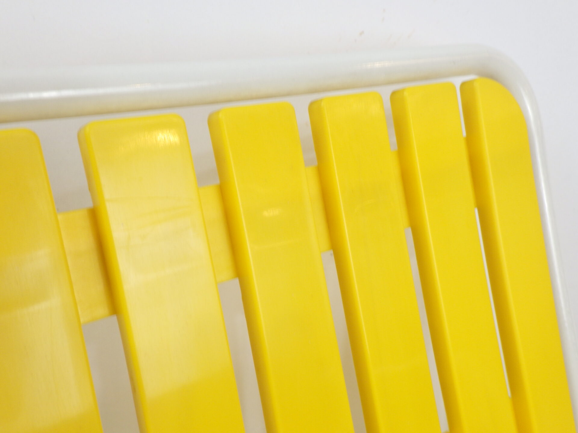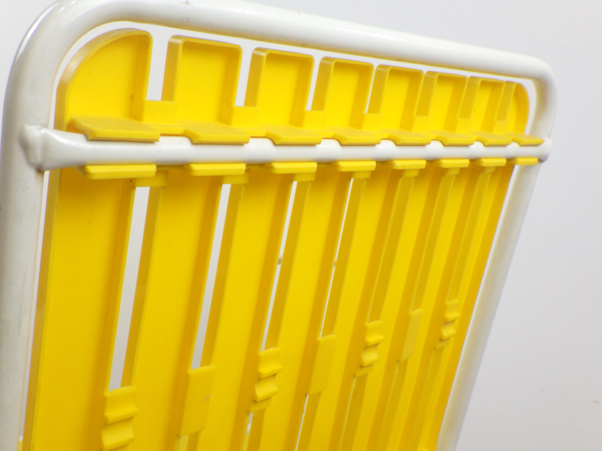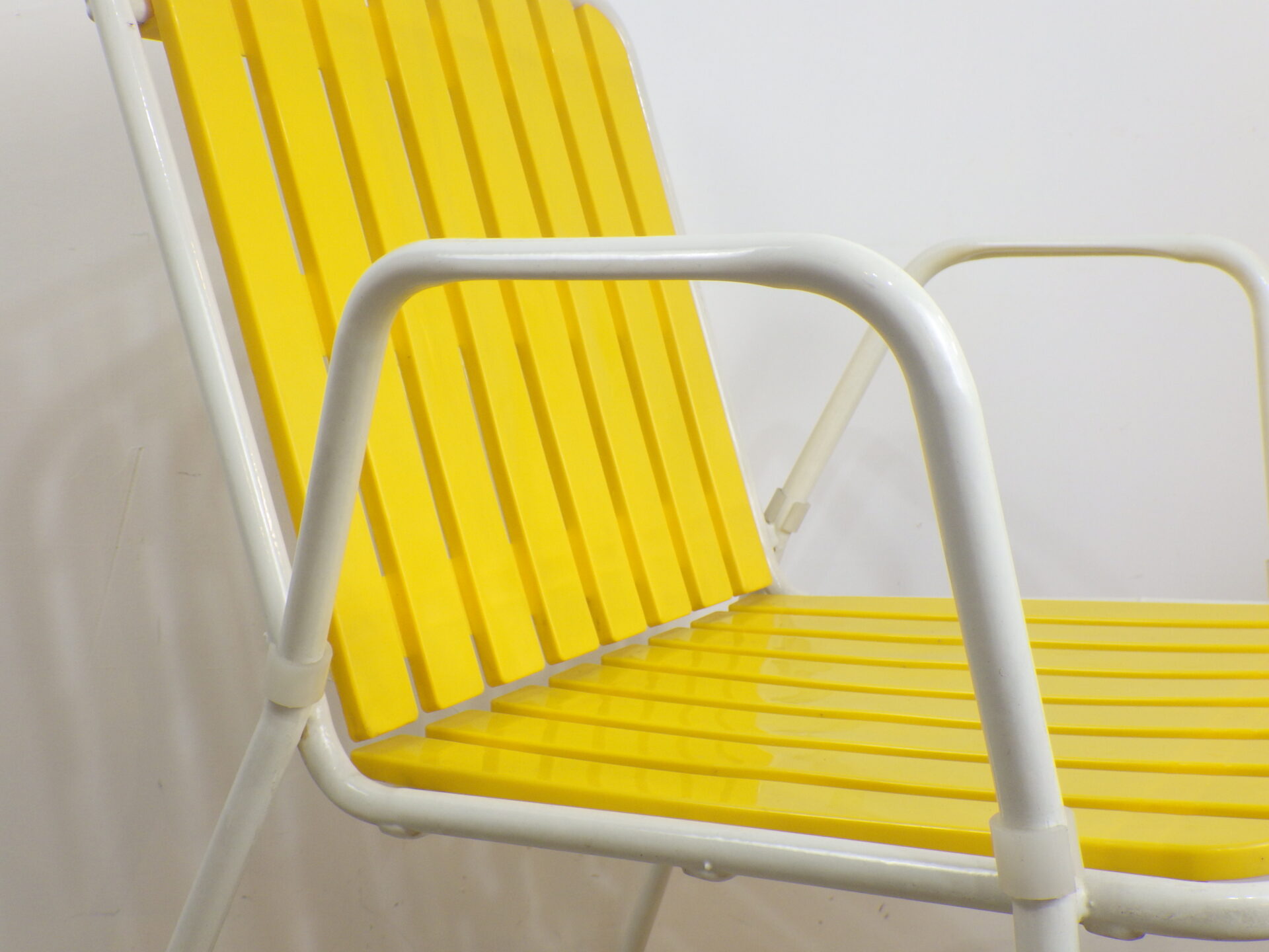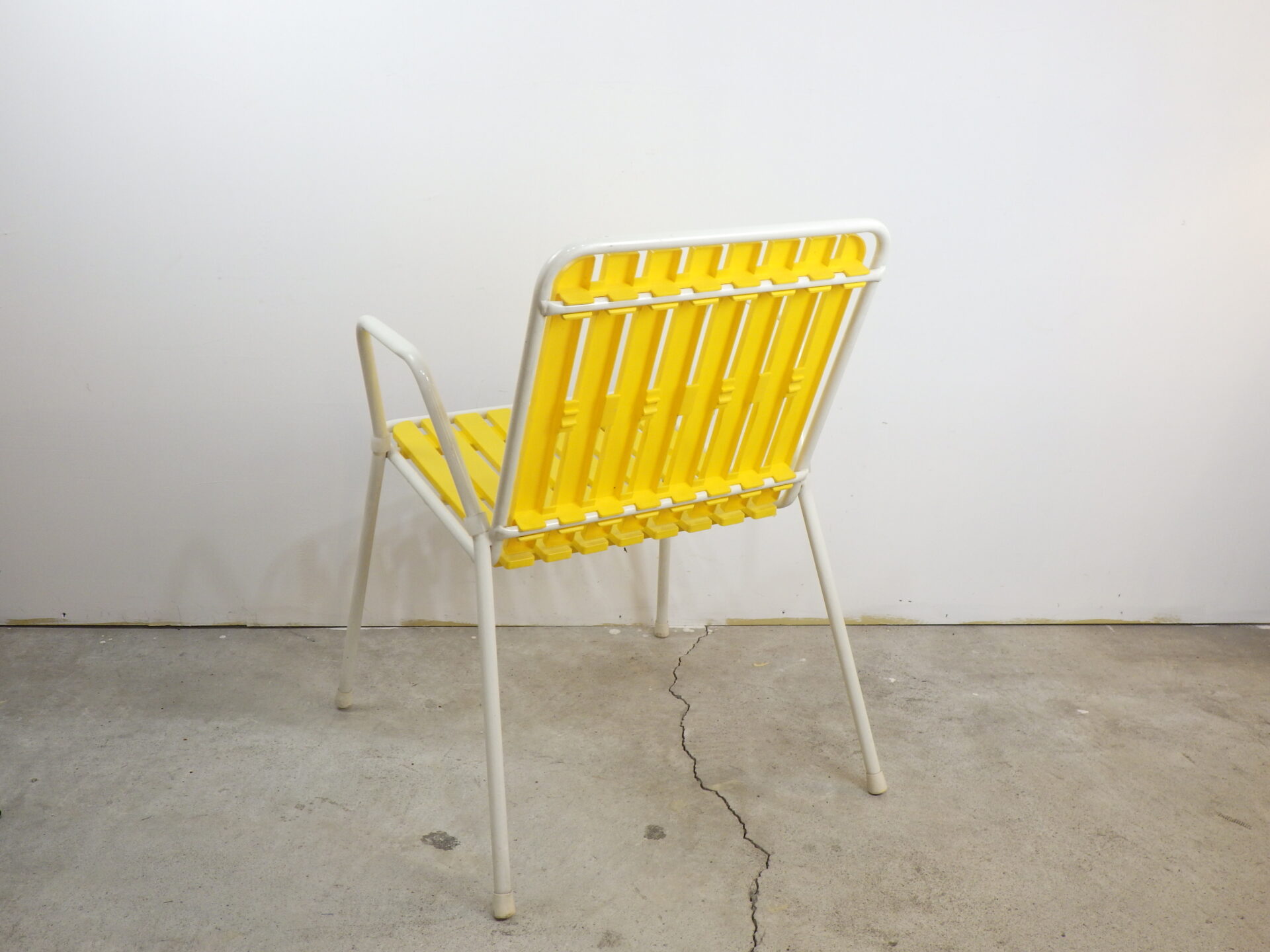 | アメリカで買い付けました。 イエローとホワイトの組み合わせがが可愛いビンテージチェアです。 明るい印象を与えてくれるチェアですので、お部屋に置けばこれだけで良いアクセントになってくれます。 また、スタッキング出来ますので、何客か余分に持っておいて、来客時にさっと出せて便利かも。 水洗いも可能なので、ウッドデッキや庭先で、ガーデンチェアとしてご使用いただいても良さそうです。 しっかりとしたサイズ感ですが、軽量なので女性でも楽々持ち運べますよ。 |