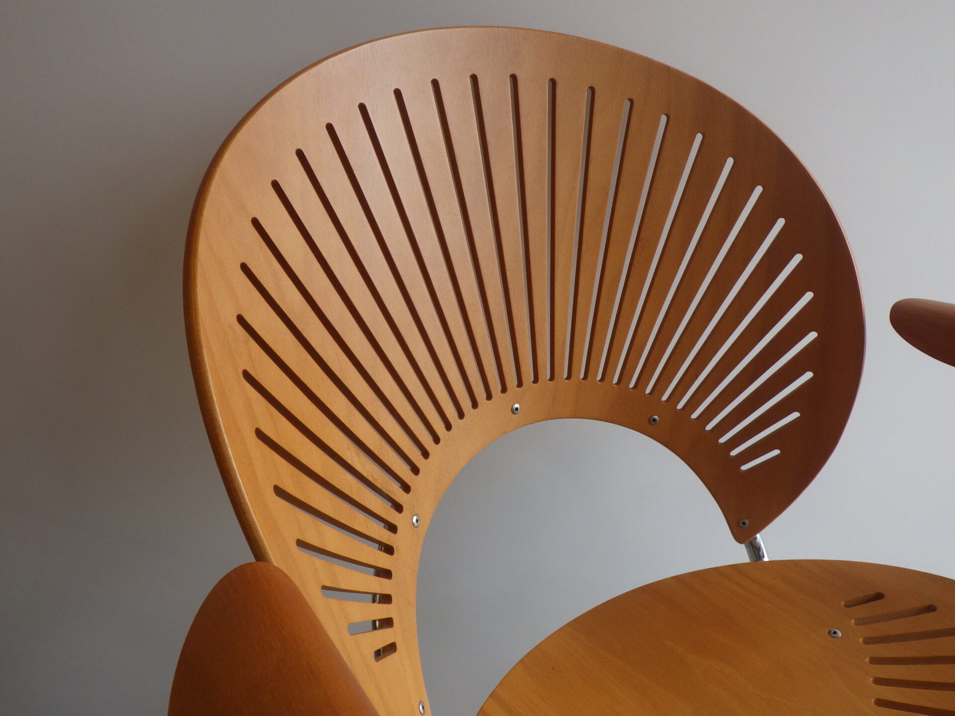 | ヨーロッパで買い付けました。 デンマーク「Fredericia社」のトリニダードチェア(アームチェアタイプ)です。 1993年に発表されたこちらのチェアは、女流デザイナーのNanna Ditzel(ナナ・ディッツェル)の代表作で、彼女がカリブ海のドバゴ島を訪れた際にインスピレーションを受け製作されました。 ヴィクトリア様式の建築をモチーフにした透かし彫りは、光の陰影を生み出し、優雅でアートな美しいシルエットを作り上げています。 座った時に体を包み込んでくれるようにデザインされた絶妙なカーブや、女性でもストレスなくご使用いただける少し低めに設定された座面など、機能的にも細やかに計算され設計されていますので、長時間座っても疲れにくいです。 ご自宅使いはもちろんのこと、オフィスやカフェなどでのご使用にもおすすめしています。 |