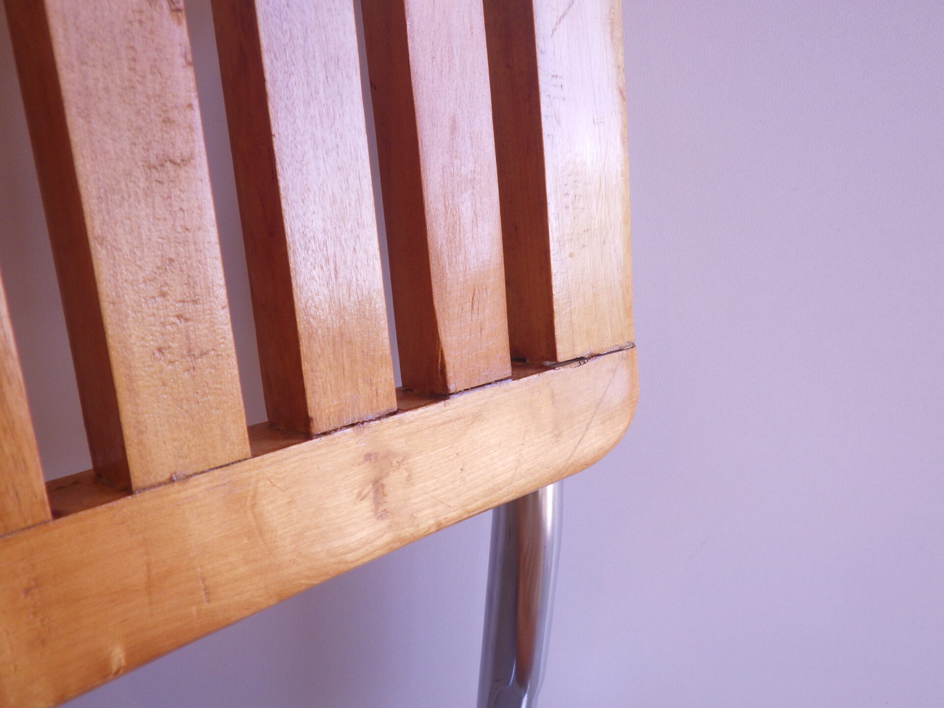 | アメリカで買い付けました。 ビンテージのカンチレバーチェアです。 四本脚の椅子と比べ、カンチレバー構造は背中側の脚がないため、座る人の体重に合わせて座面が適度にしなります。 姿勢を変えるごとに程よくしなり、身体を受け止めてくれるため、長時間座っても疲れにくいというメリットがあります。 ウッドの素材感がそのまま活かされており、木目や節のナチュラルな風合いをお楽しみいただけます。 カンチレバーチェアの中では小ぶりで、アームもないため、ご自宅でダイニングチェアとして使用しやすいサイズ感です。 |