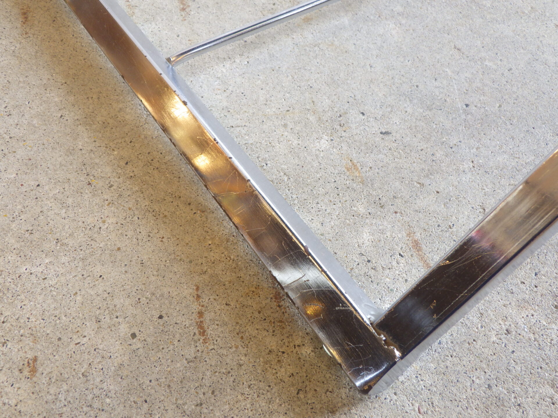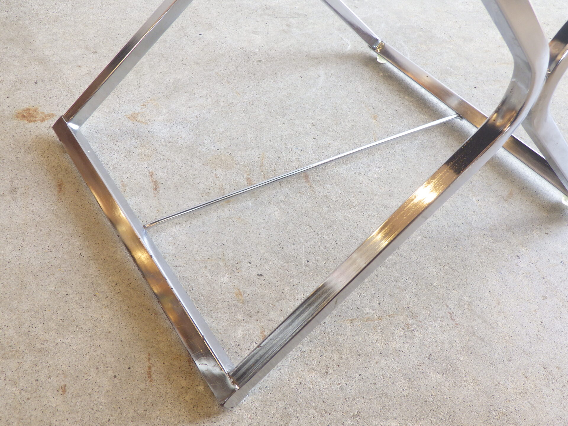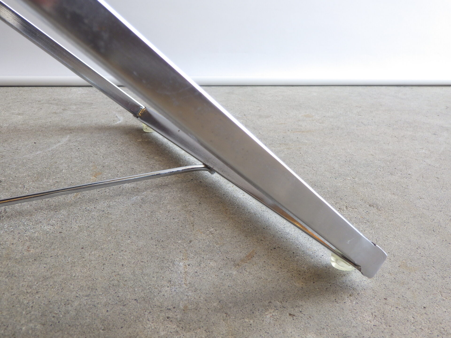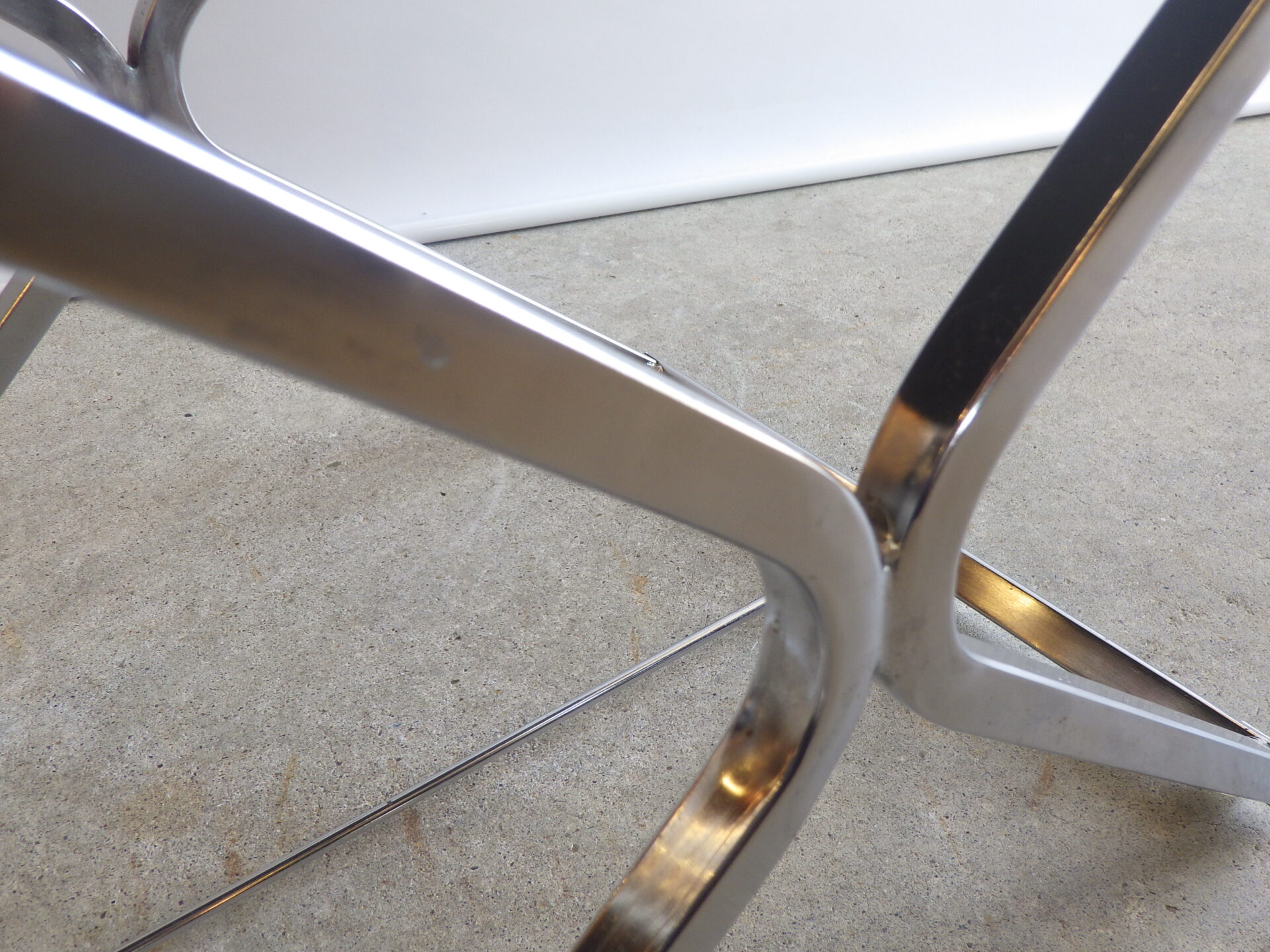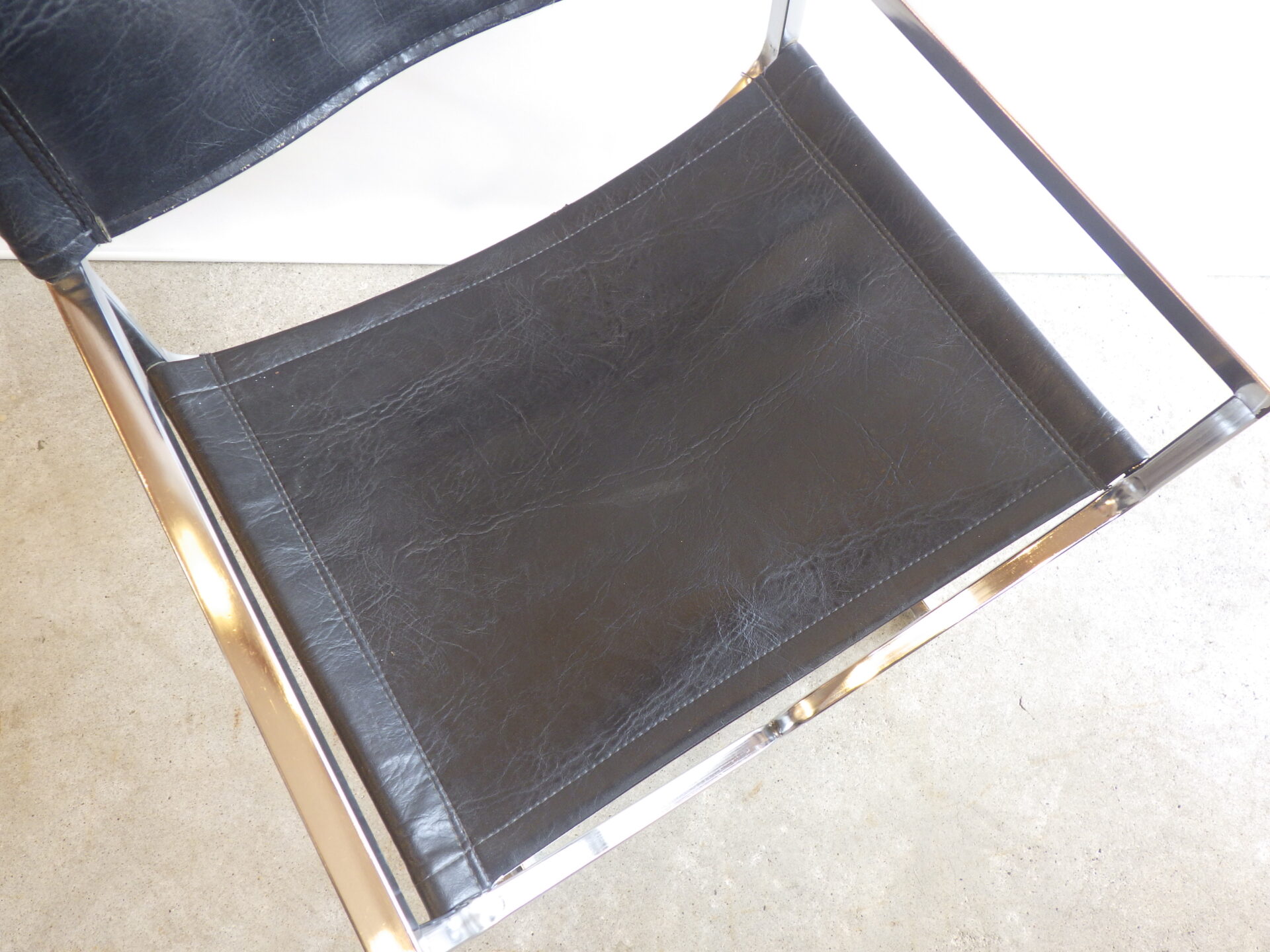 | アメリカで買い付けました。 Robert Kjer Jakobsenデザインのディレクターズチェアです。 クロームベースにブラックのビニールレザーの組み合わせが、とても雰囲気ある仕上がりとなっています。 脚はフォールディングではなく、溶接で固定されている無骨感満載な雰囲気もポイントです。 室内使いはもちろんのこと、ウッドデッキや中庭などでコーヒーブレイクやBBQをする際にご使用いただくのにおすすめです。 |
