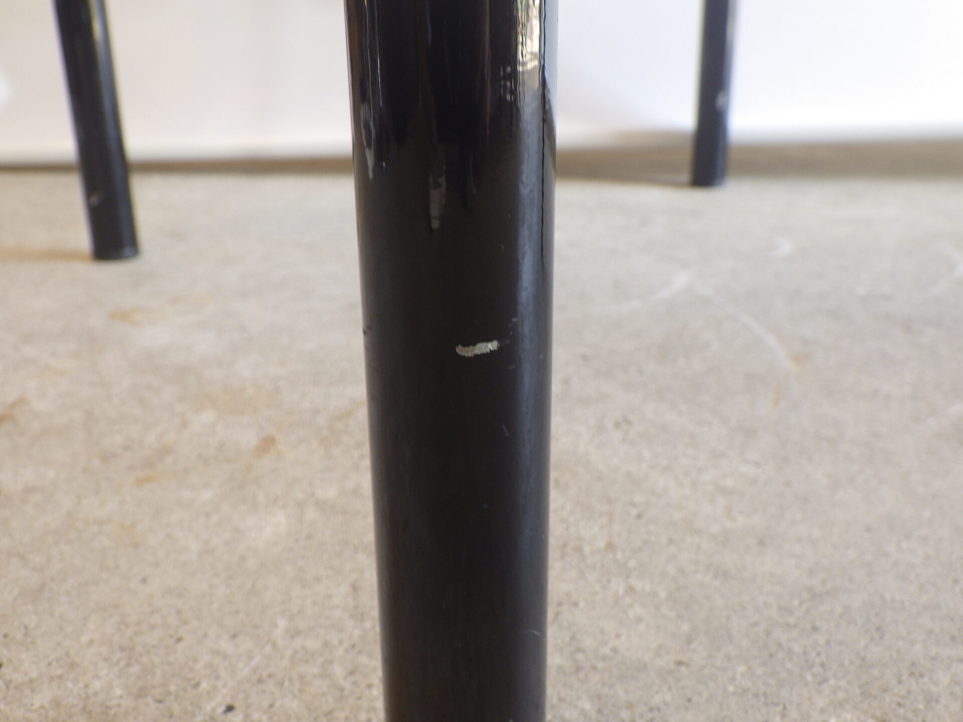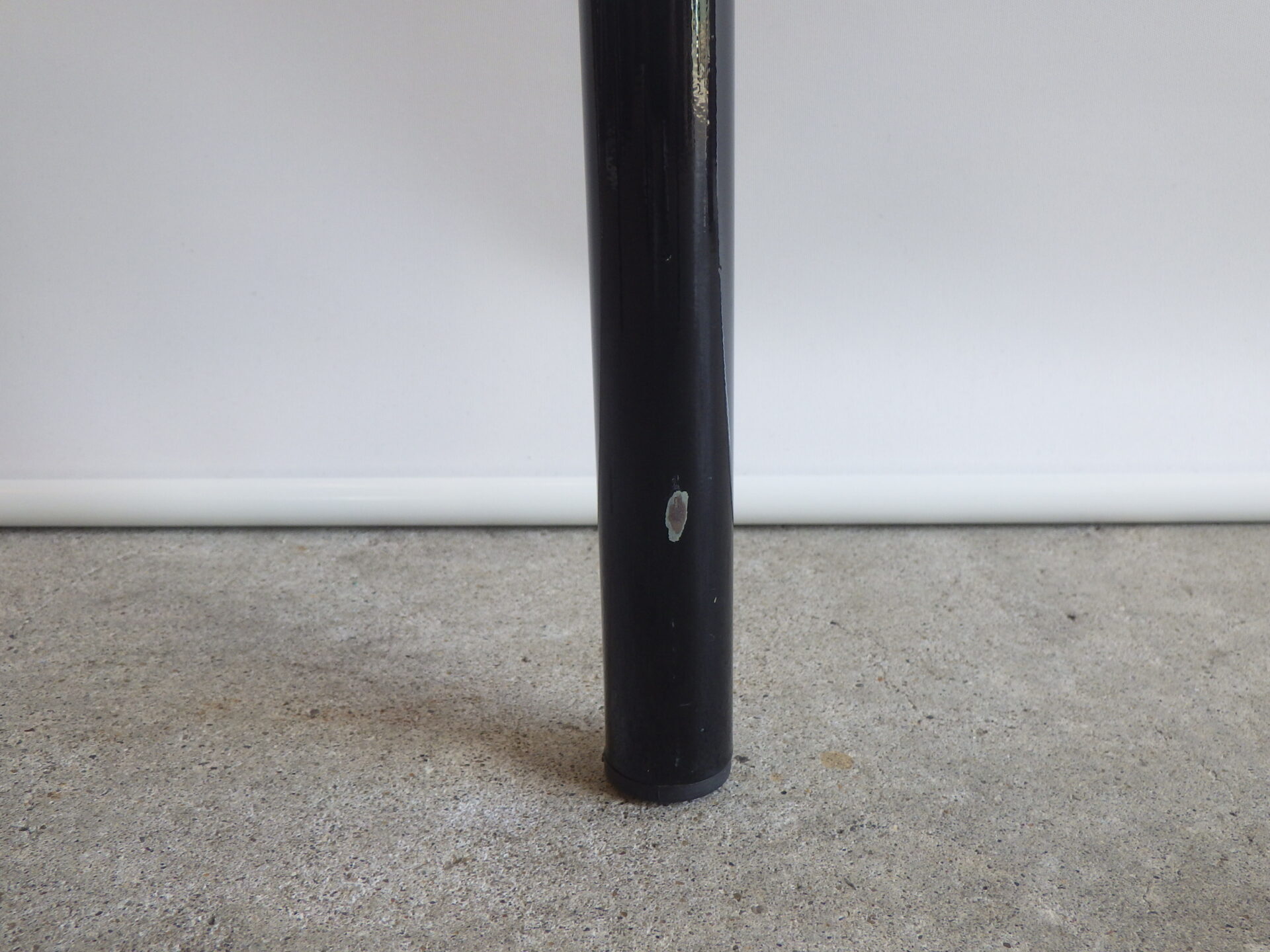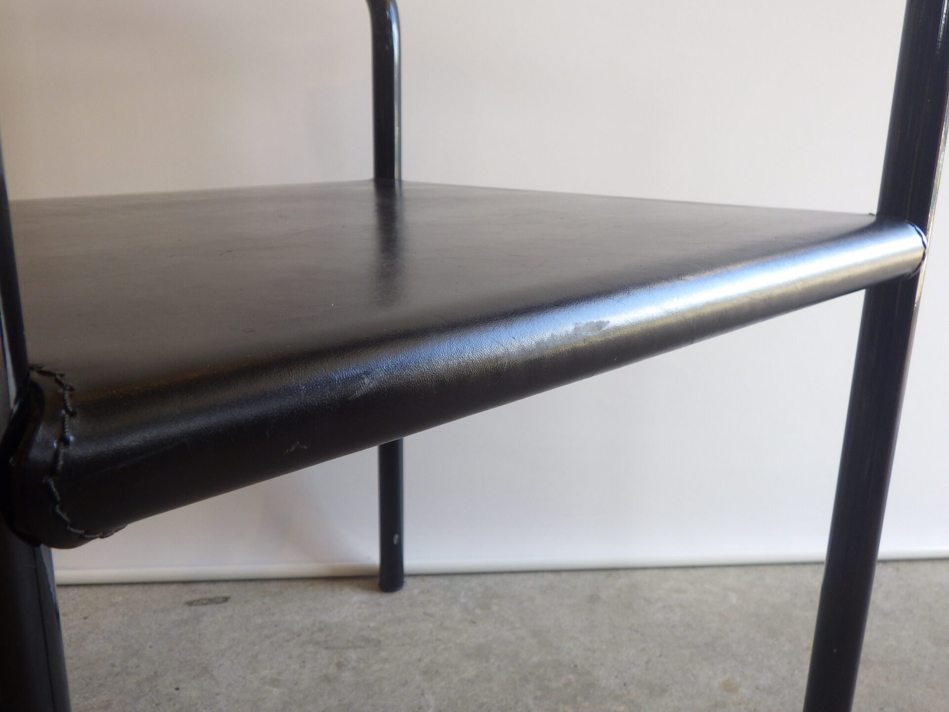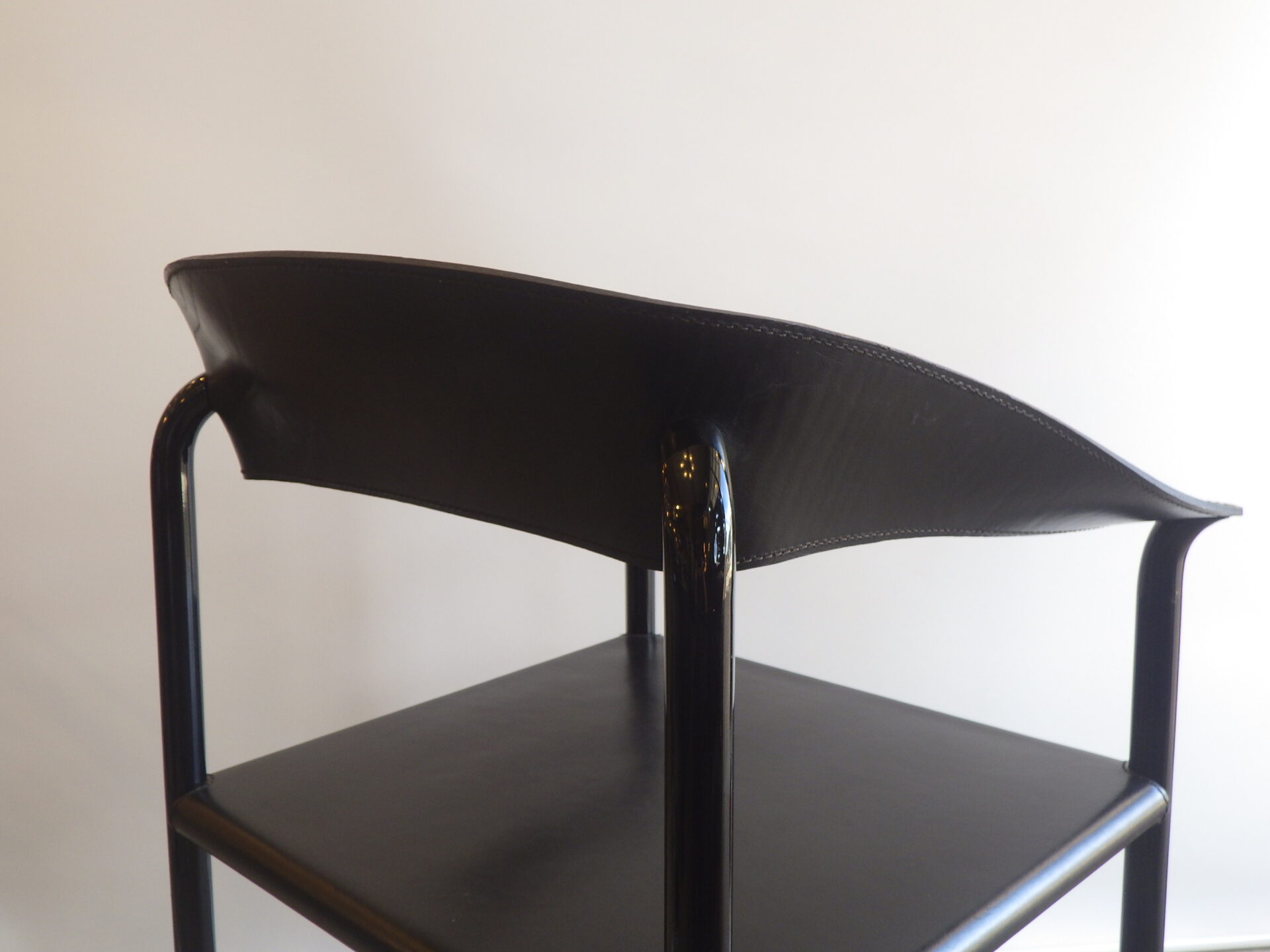 | ヨーロッパで買い付けました。 イタリア製のダイニングチェアです。 スチールフレーム、レザーともにブラックで、ひじ掛けにはクロムの金具がついています。 近年再評価されつつあるポストモダンデザイン。 ダイニングチェアとしてご使用いただくのはもちろんのこと、壁際に置いてこの時代ならではのデザインを空間のアクセントとして取り入れて頂くのもおすすめしています。 |