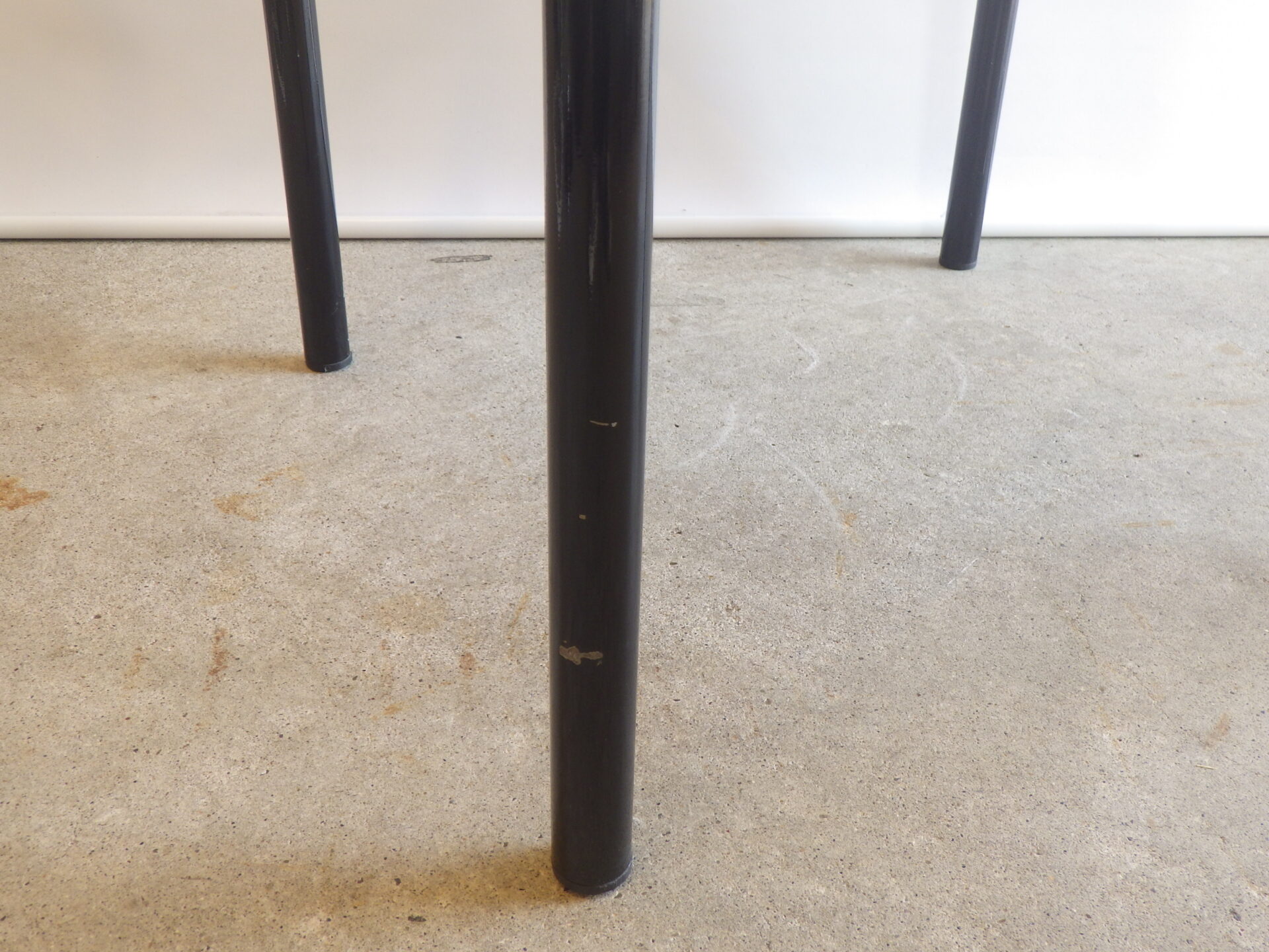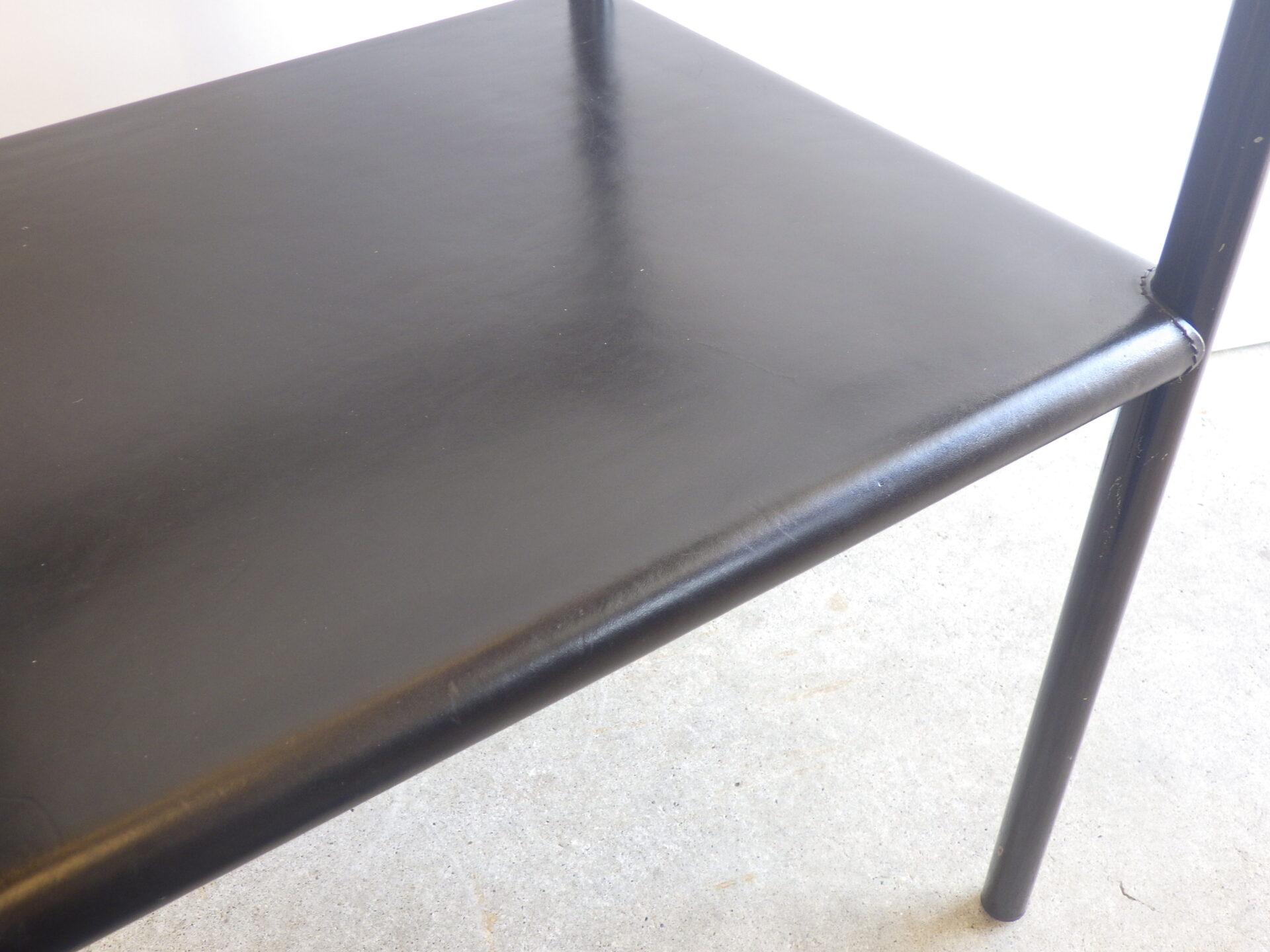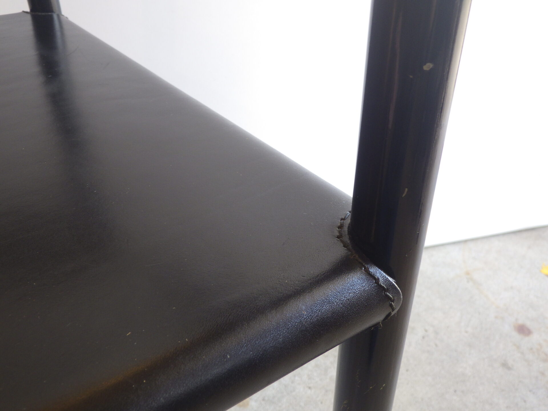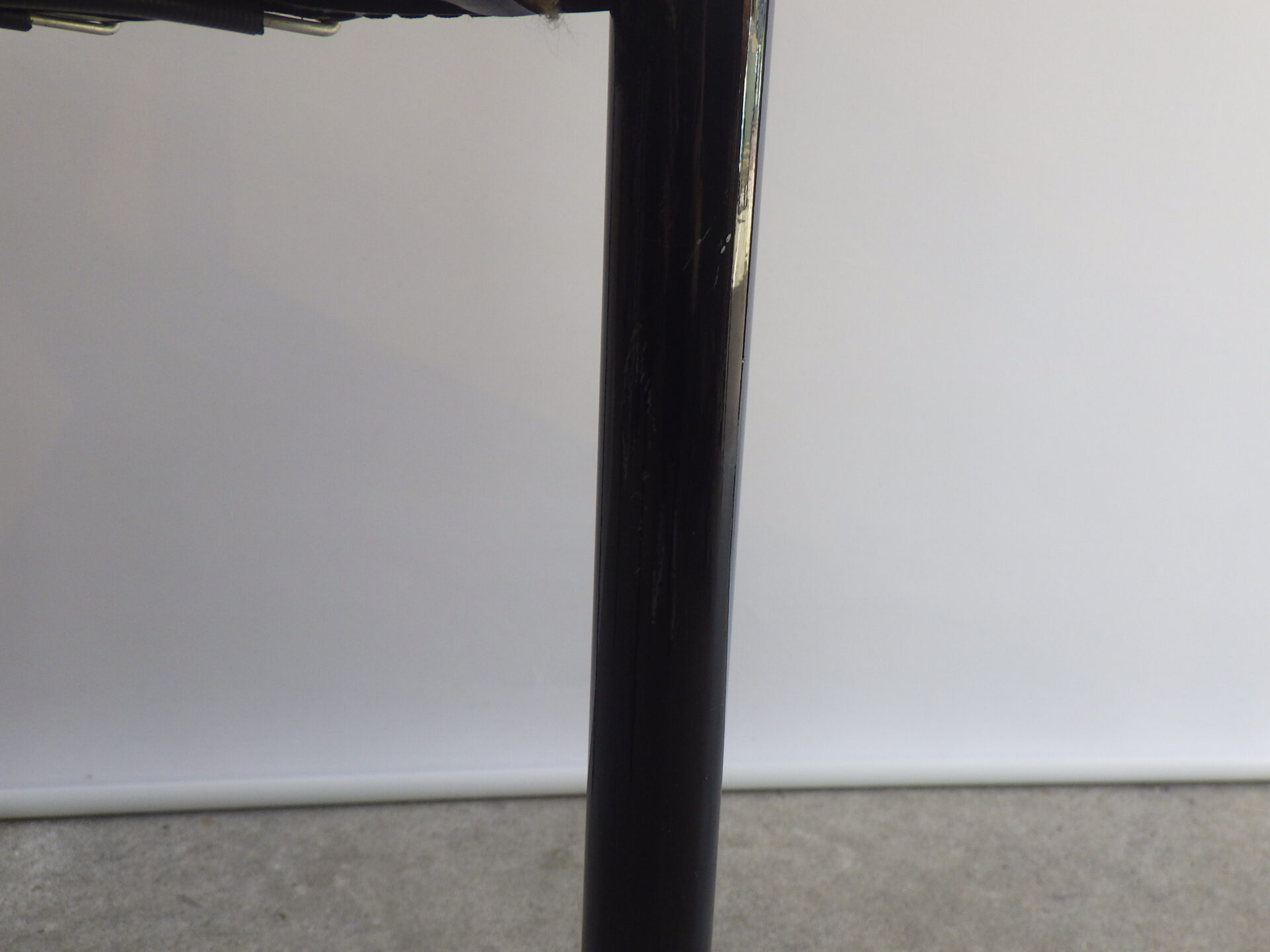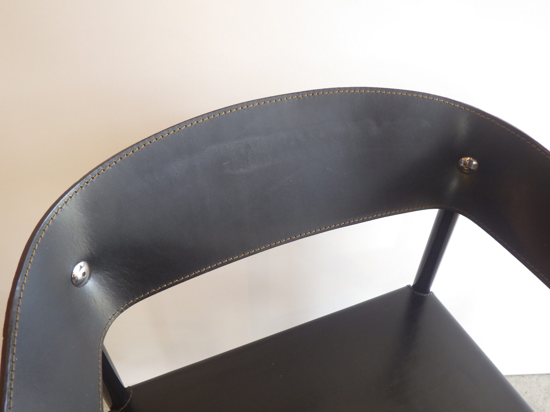 | ヨーロッパで買い付けました。 イタリア製のダイニングチェアです。 スチールフレーム、レザーともにブラックで、ひじ掛けにはクロムの金具がついています。 近年再評価されつつあるポストモダンデザイン。 ダイニングチェアとしてご使用いただくのはもちろんのこと、壁際に置いてこの時代ならではのデザインを空間のアクセントとして取り入れて頂くのもおすすめしています。 |