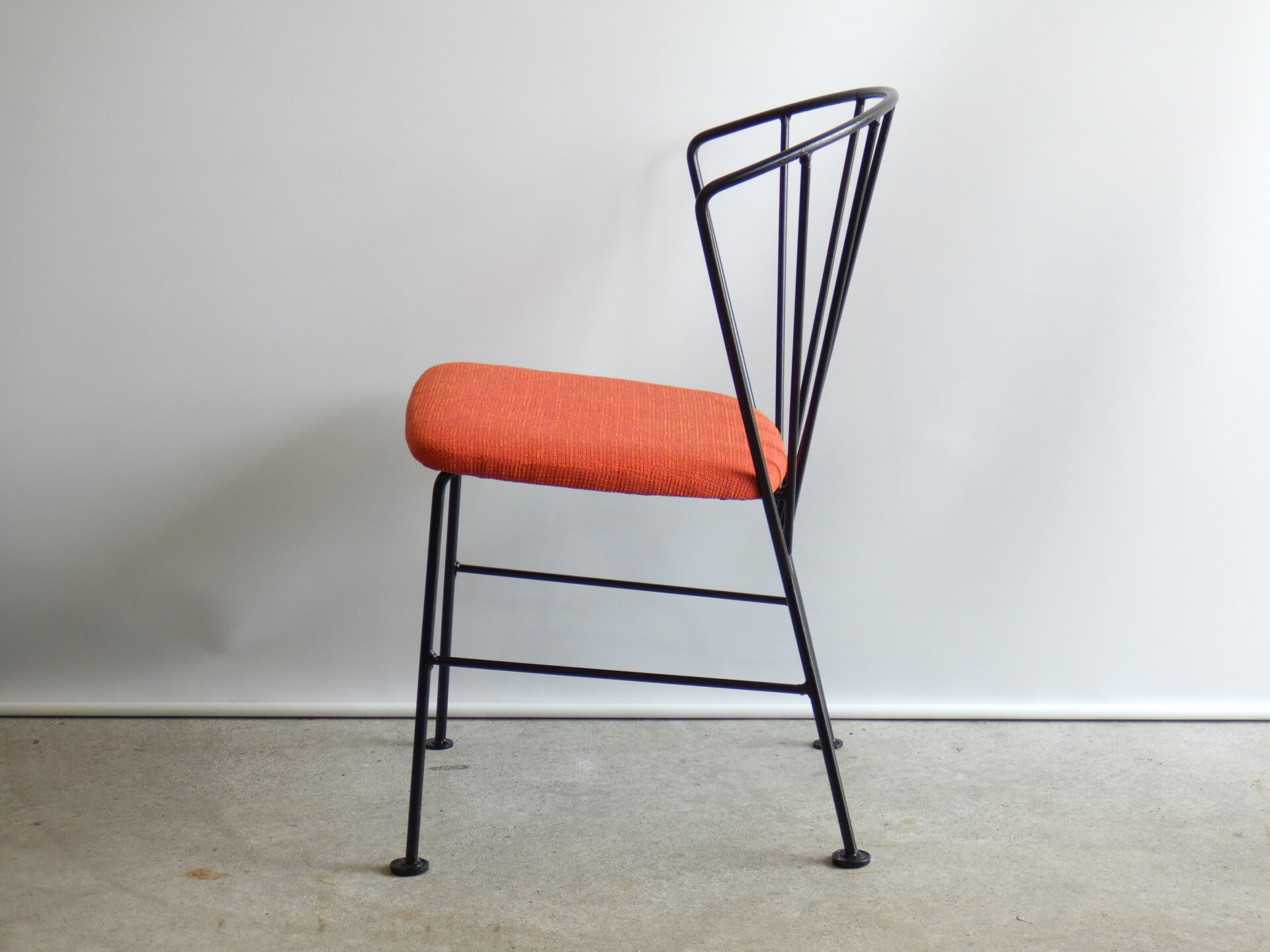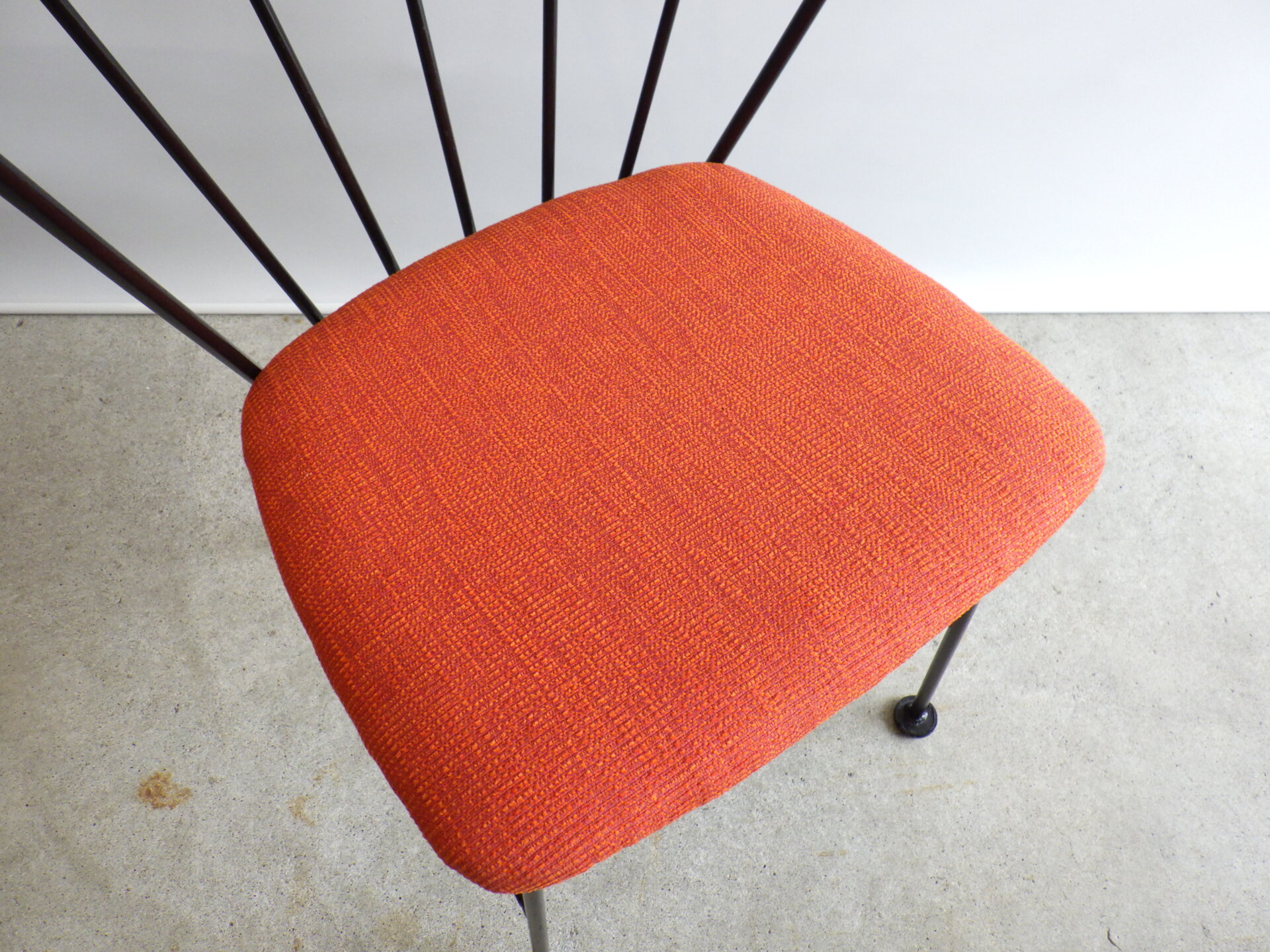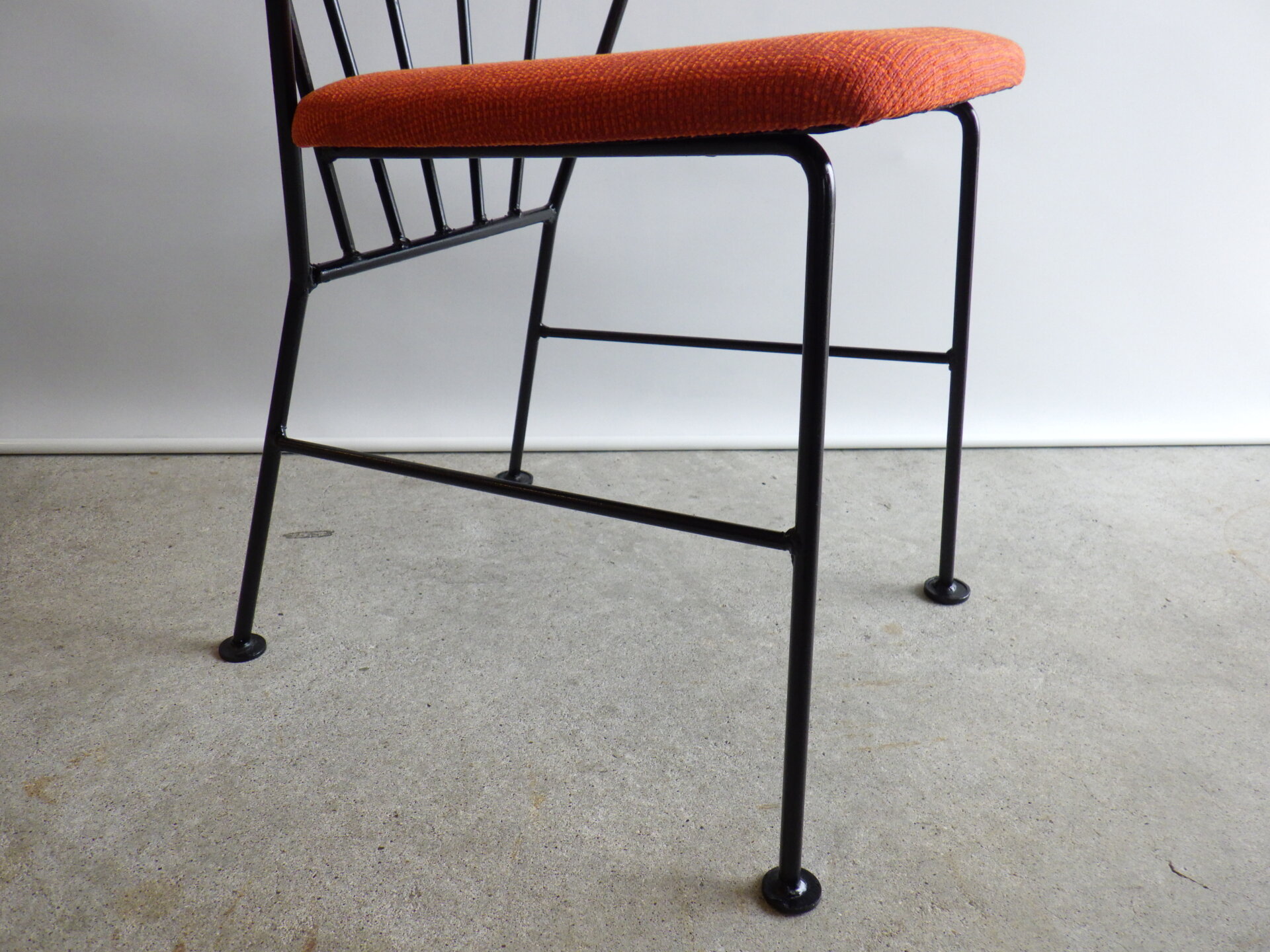 | アメリカで買い付けました。 ビンテージサイドチェアです。 背もたれは細いスチールロッドを放射線状に配したデザインで、軽やかさと独自の美しさを両立しています。 実用性も高く、しっかりとしたフレーム構造で安定感もあり、長時間の使用でも快適です。 ミッドセンチュリー家具や北欧インテリアとの相性も抜群。 ダイニングやデスクチェアとしてもおすすめですが、ショップディスプレイやカフェ空間にも最適です。 |
