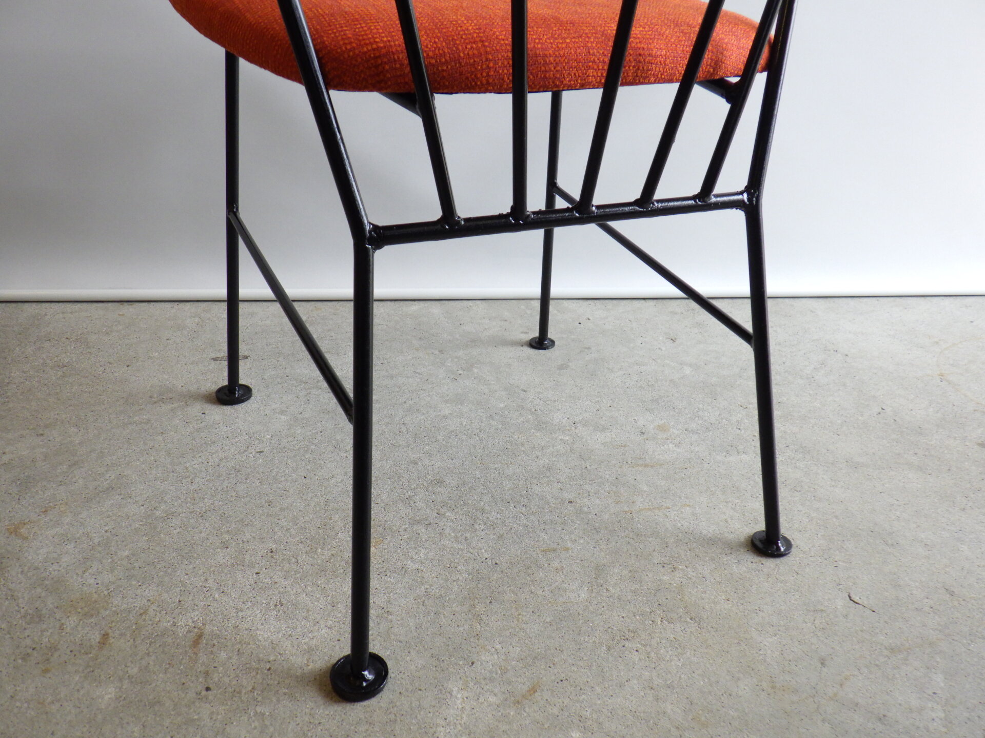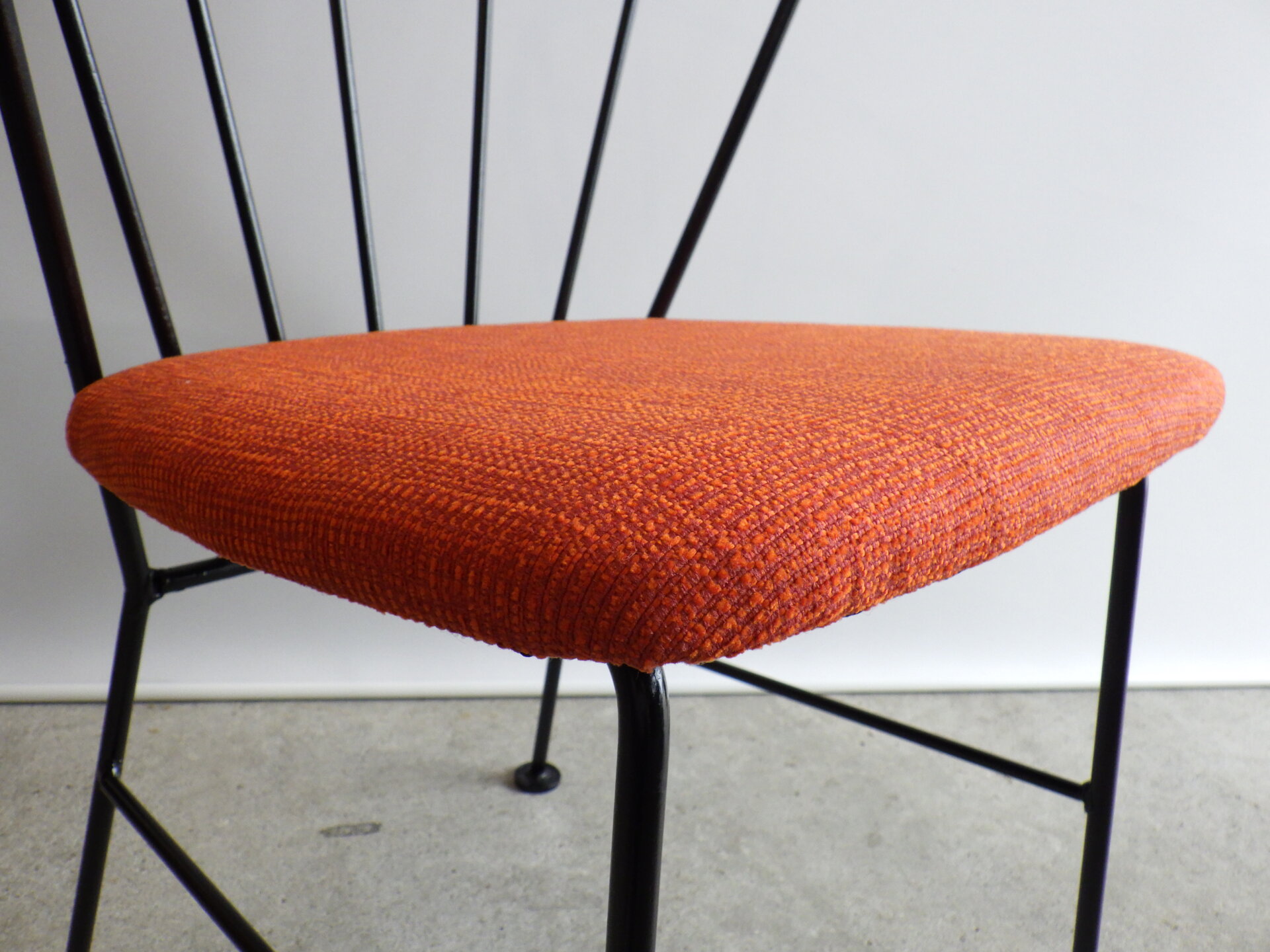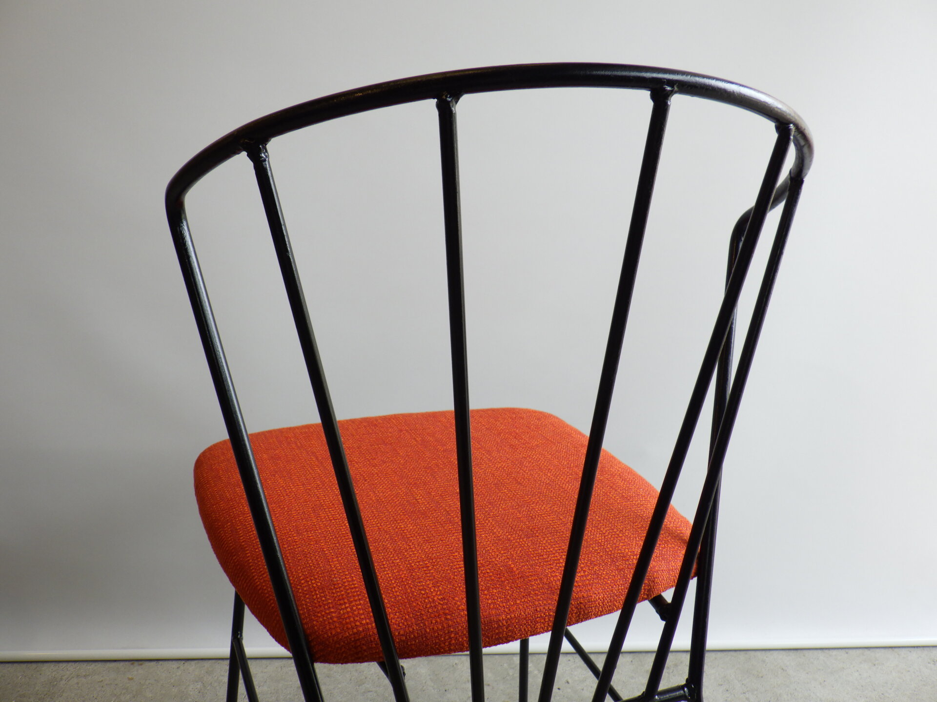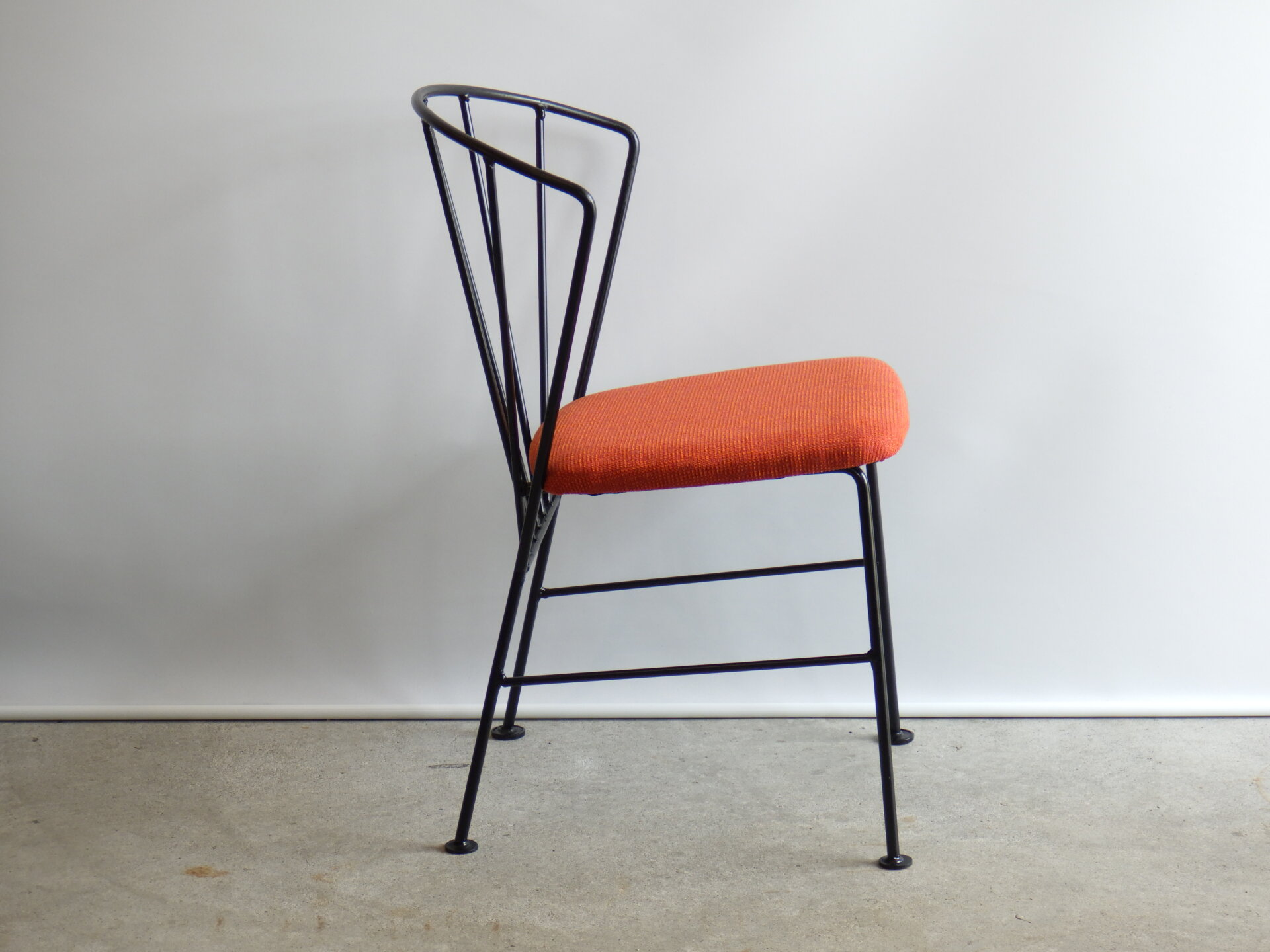 | アメリカで買い付けました。 ビンテージサイドチェアです。 背もたれは細いスチールロッドを放射線状に配したデザインで、軽やかさと独自の美しさを両立しています。 実用性も高く、しっかりとしたフレーム構造で安定感もあり、長時間の使用でも快適です。 ミッドセンチュリー家具や北欧インテリアとの相性も抜群。 ダイニングやデスクチェアとしてもおすすめですが、ショップディスプレイやカフェ空間にも最適です。 |