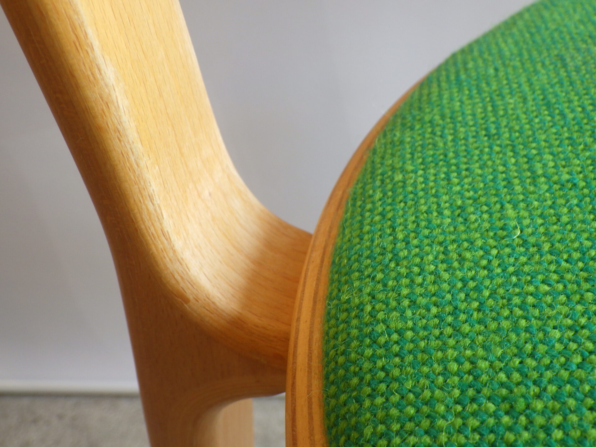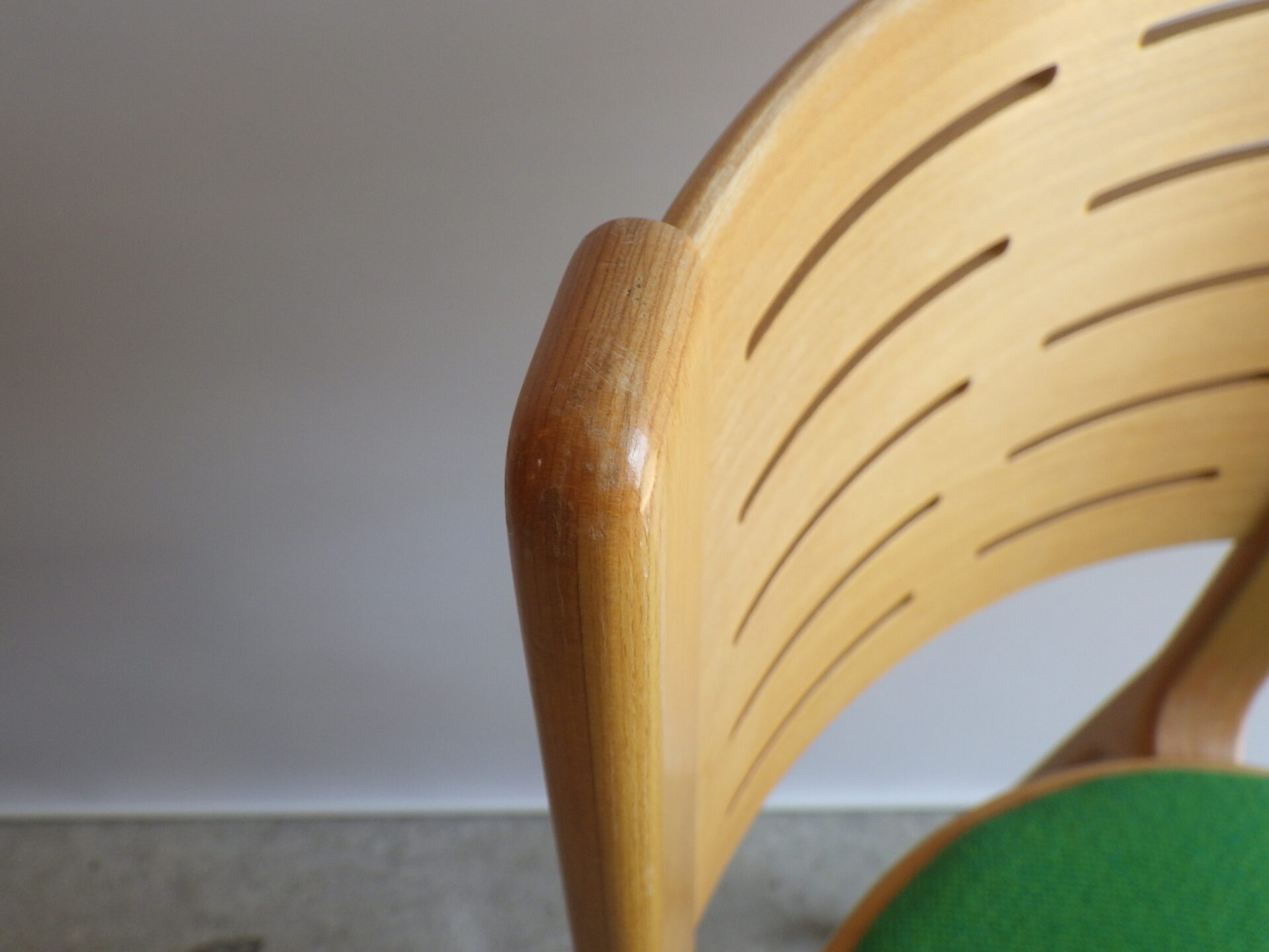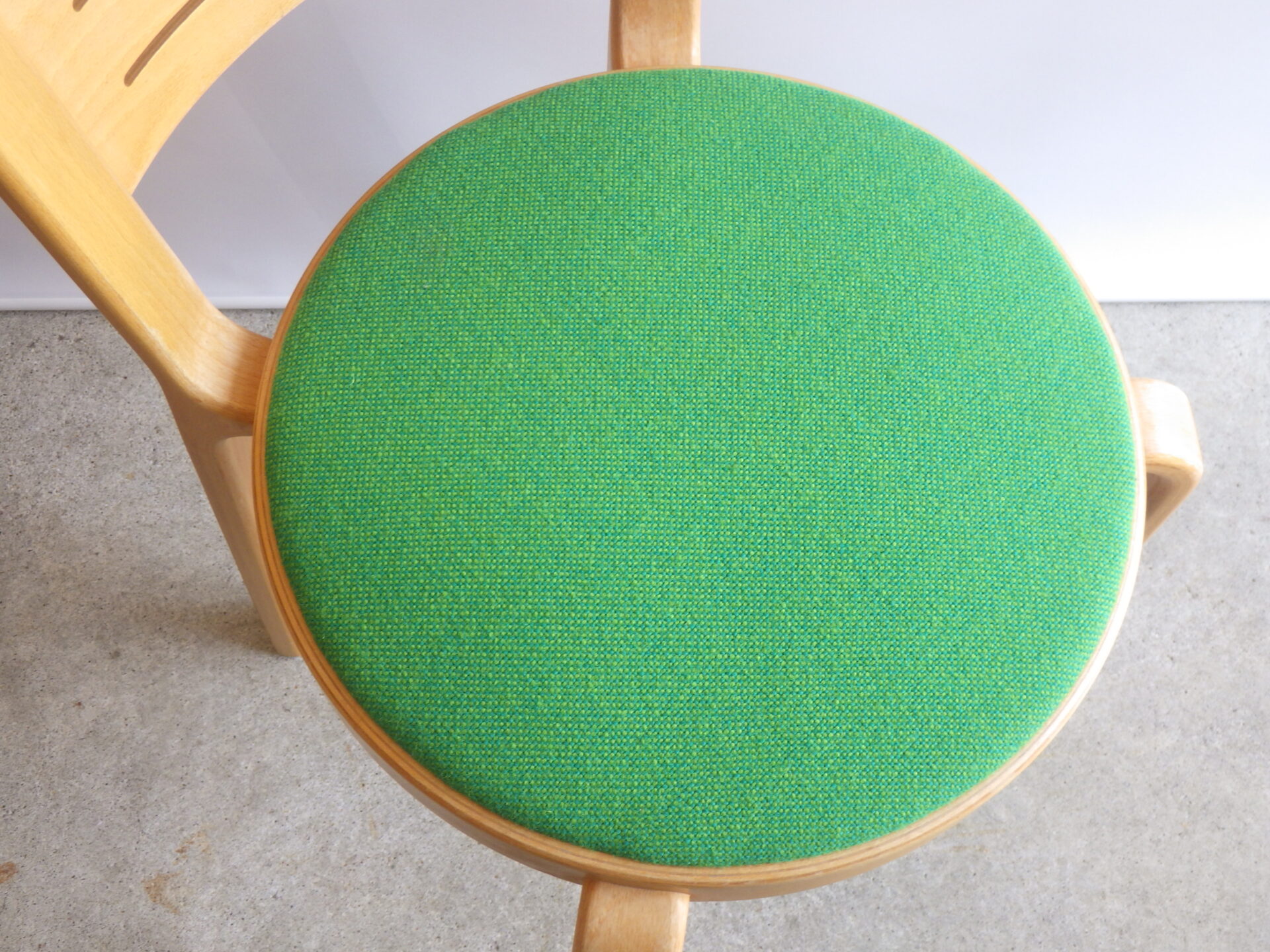 | ヨーロッパで買い付けました。 デンマークの老舗家具メーカーMagnus Olesen(マグナス・オルセン)社製、ダイニングチェアです。 デザイナーは1971年に発表した「8000シリーズ」で世界的評価を受けているRub Thygesen&Johnny Sorensen。 有機的な曲木のフレームには、脚部の取り付けも含め釘やネジが一切使われていません。 ビーチ材のナチュラルで優しい木目と色味も大変魅力的ですね。 こちらは明るめのグリーンのファブリックが空間の良い差し色になってくれそう。 スタッキングできるところもポイントですね。 インテリアを機能的で美しく表現する、マグナス・オルセンらしいアイテムです。 |