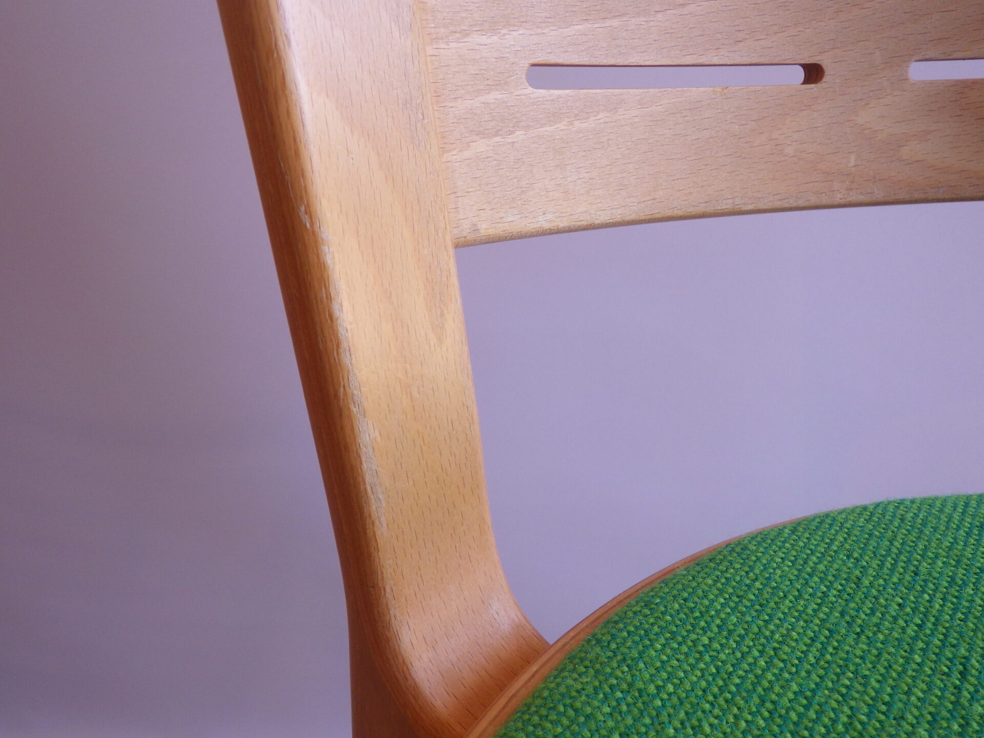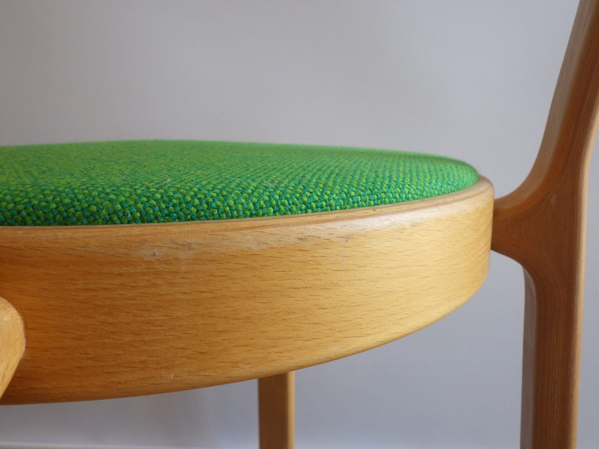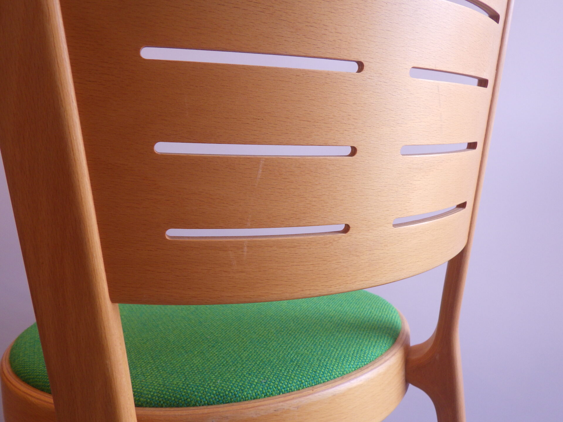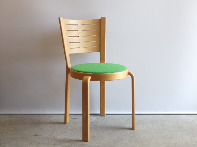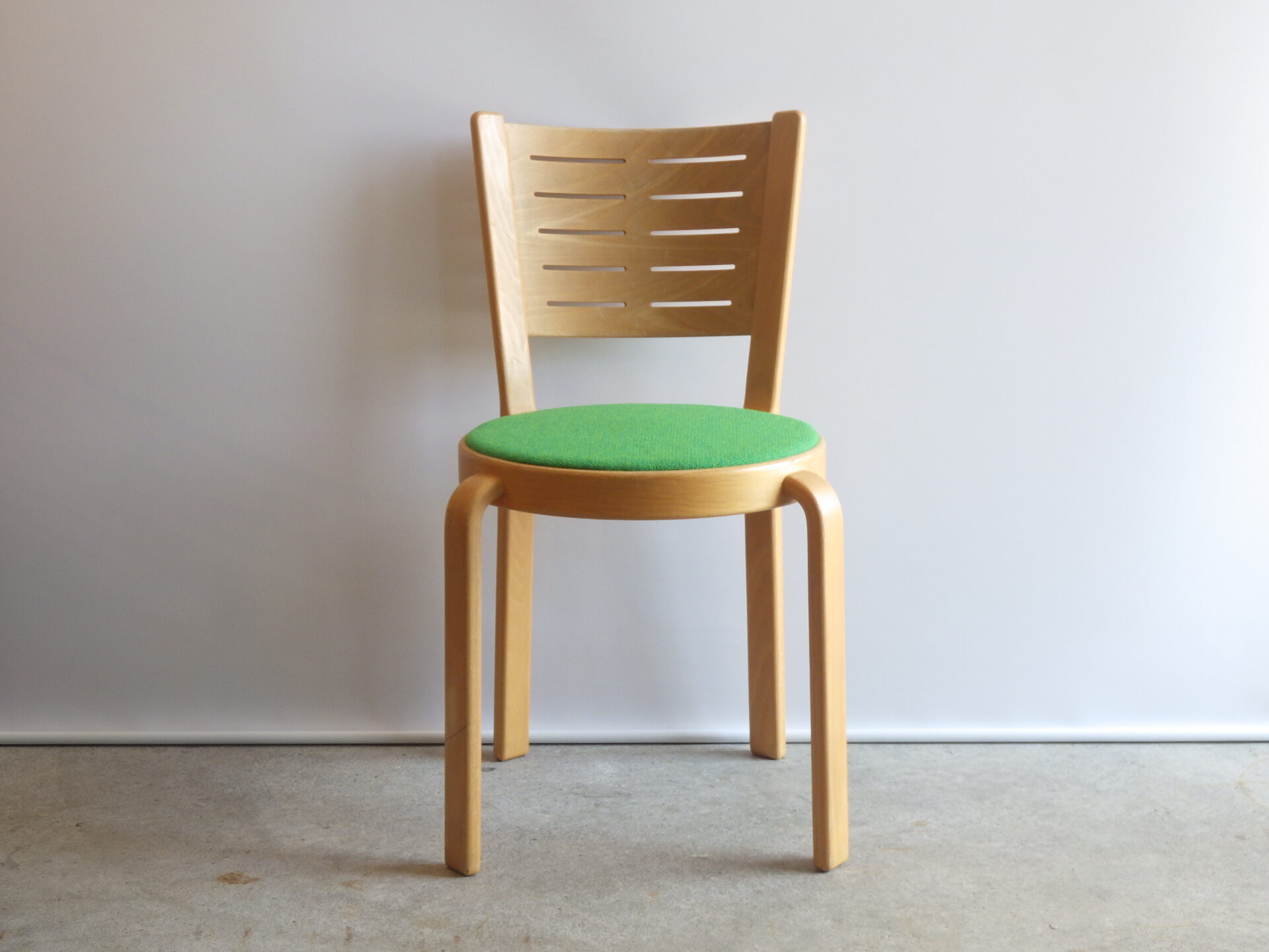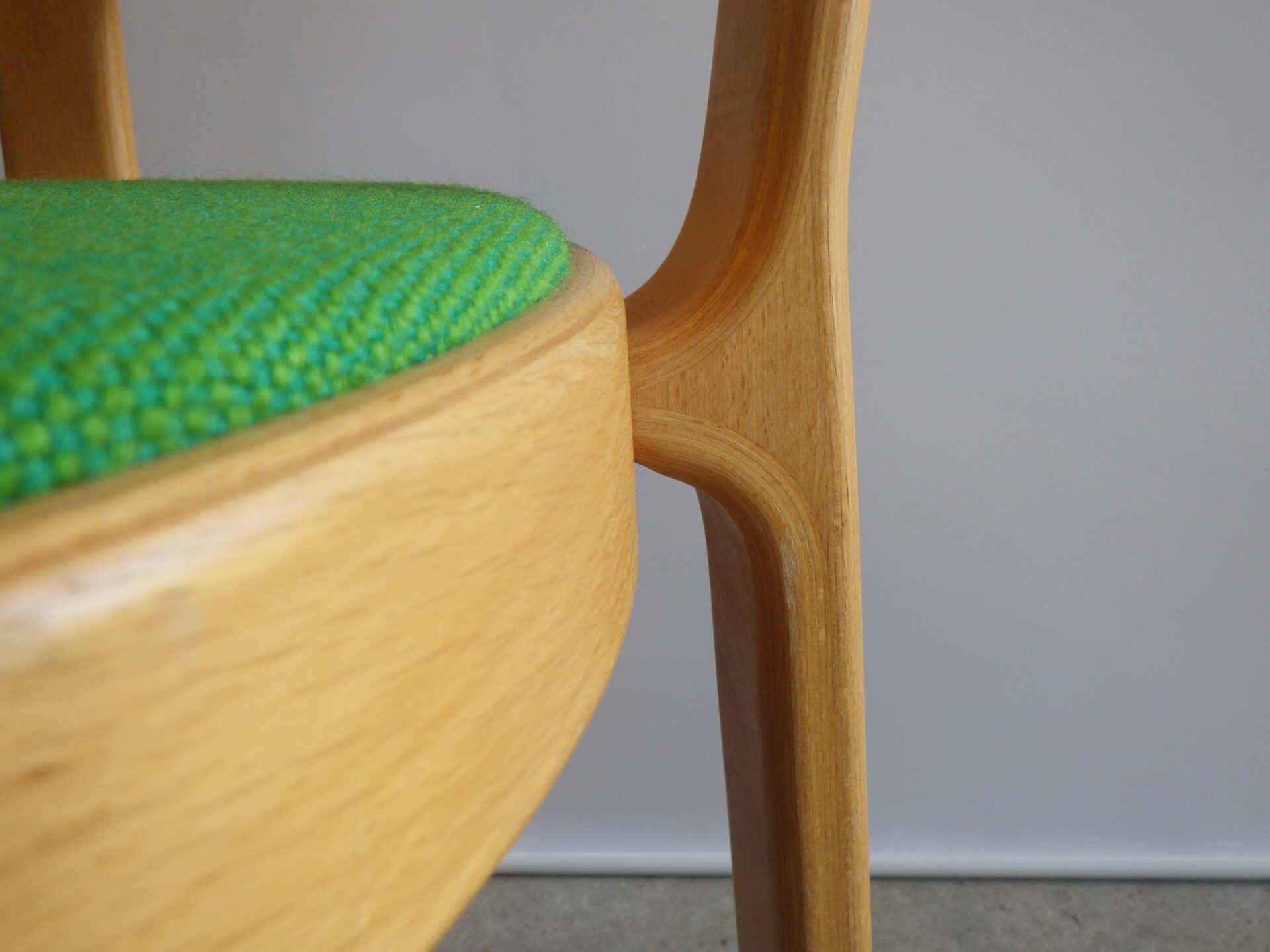 | ヨーロッパで買い付けました。 デンマークの老舗家具メーカーMagnus Olesen(マグナス・オルセン)社製、ダイニングチェアです。 デザイナーは1971年に発表した「8000シリーズ」で世界的評価を受けているRub Thygesen&Johnny Sorensen。 有機的な曲木のフレームには、脚部の取り付けも含め釘やネジが一切使われていません。 ビーチ材のナチュラルで優しい木目と色味も大変魅力的ですね。 こちらは明るめのグリーンのファブリックが空間の良い差し色になってくれそう。 スタッキングできるところもポイントですね。 インテリアを機能的で美しく表現する、マグナス・オルセンらしいアイテムです。 |