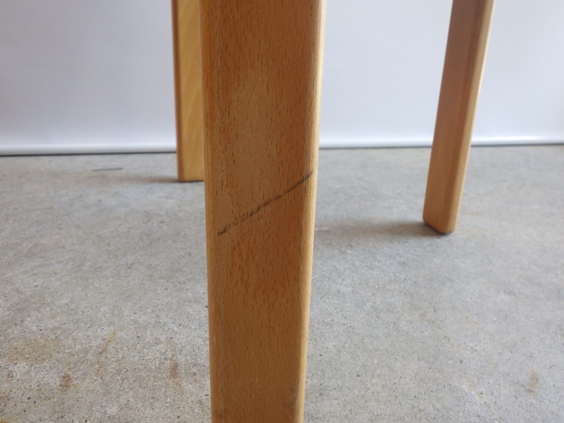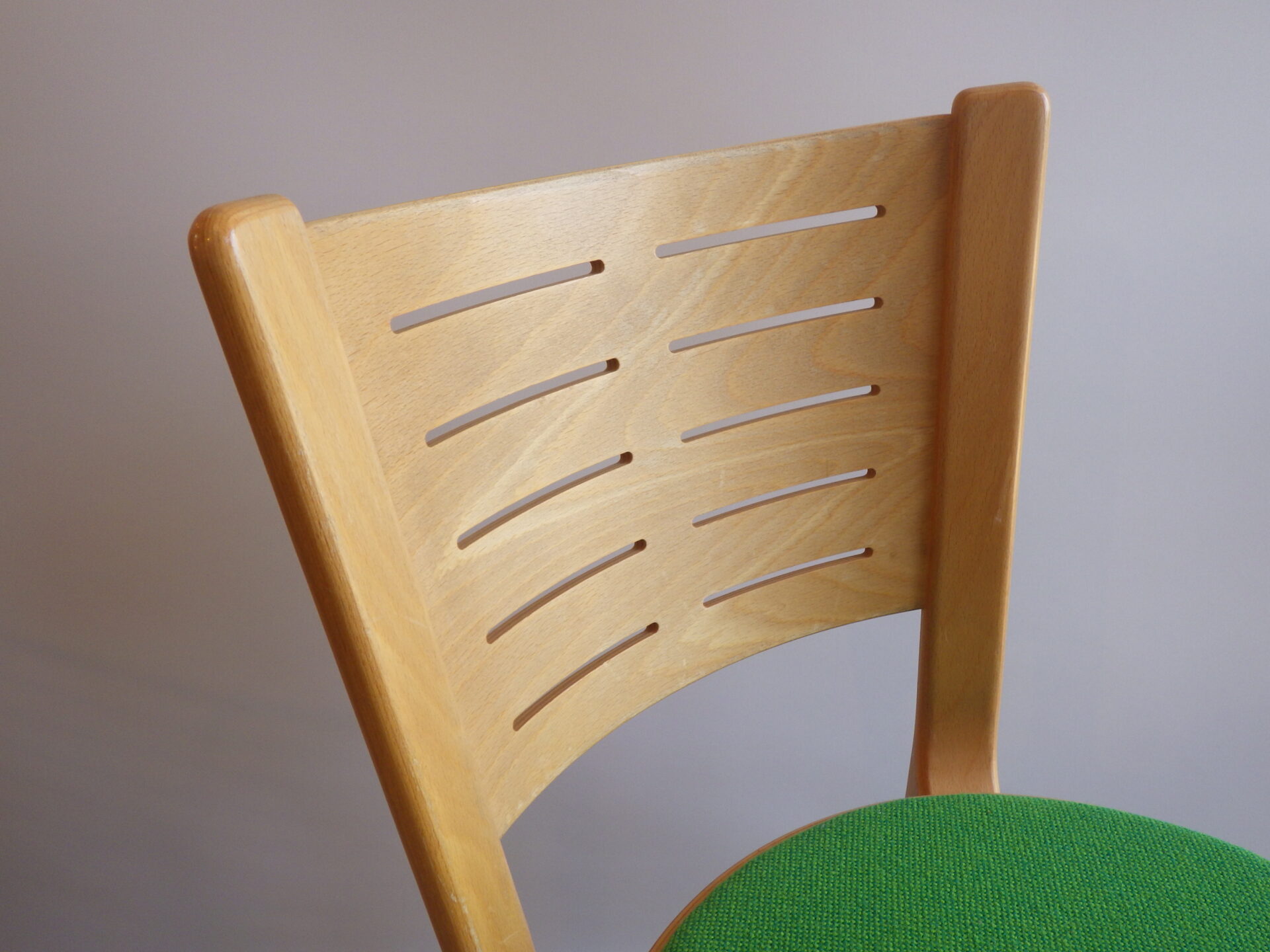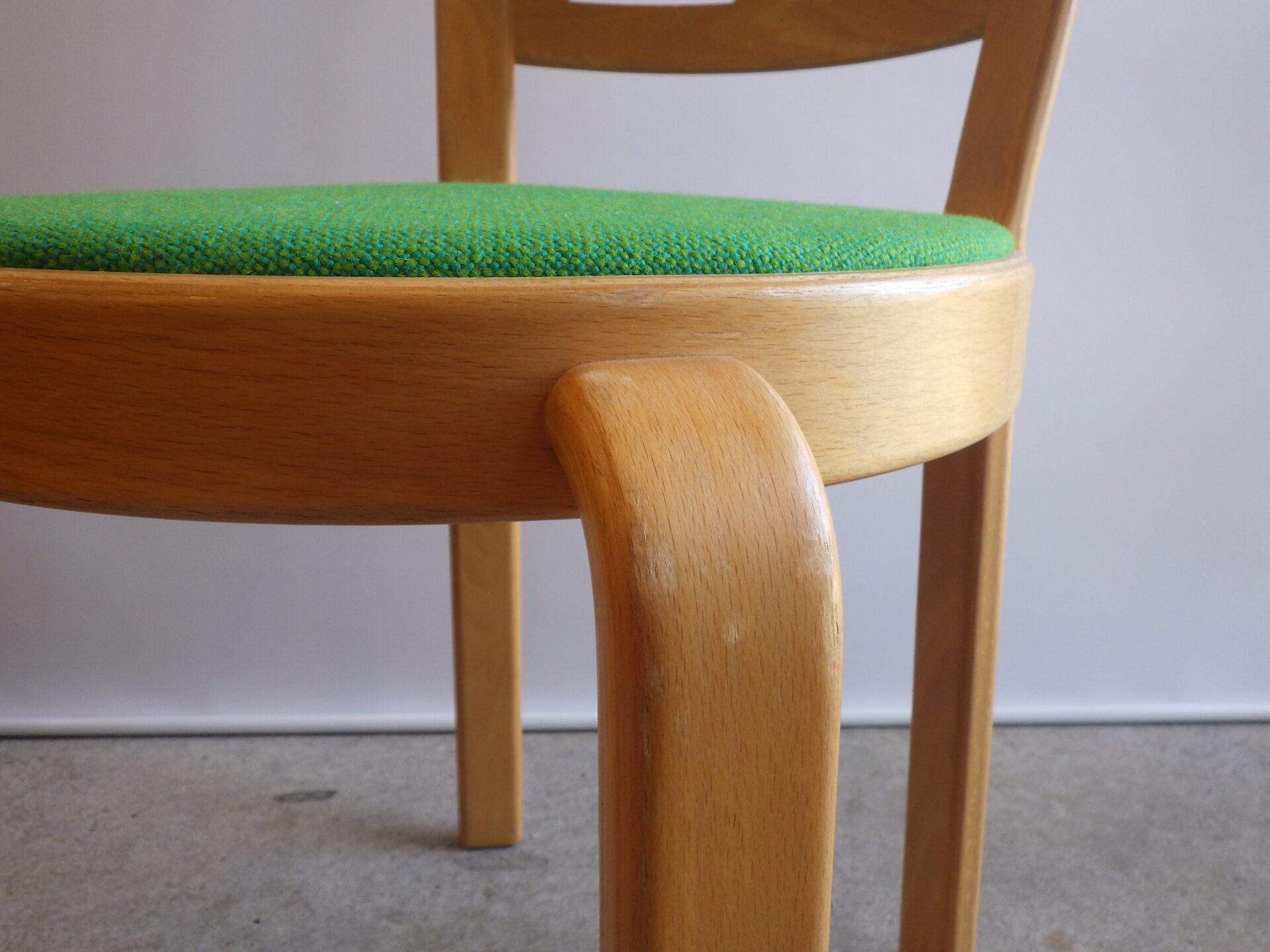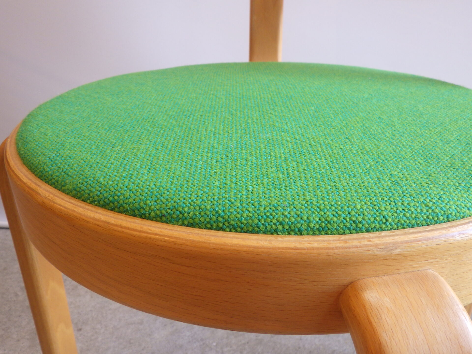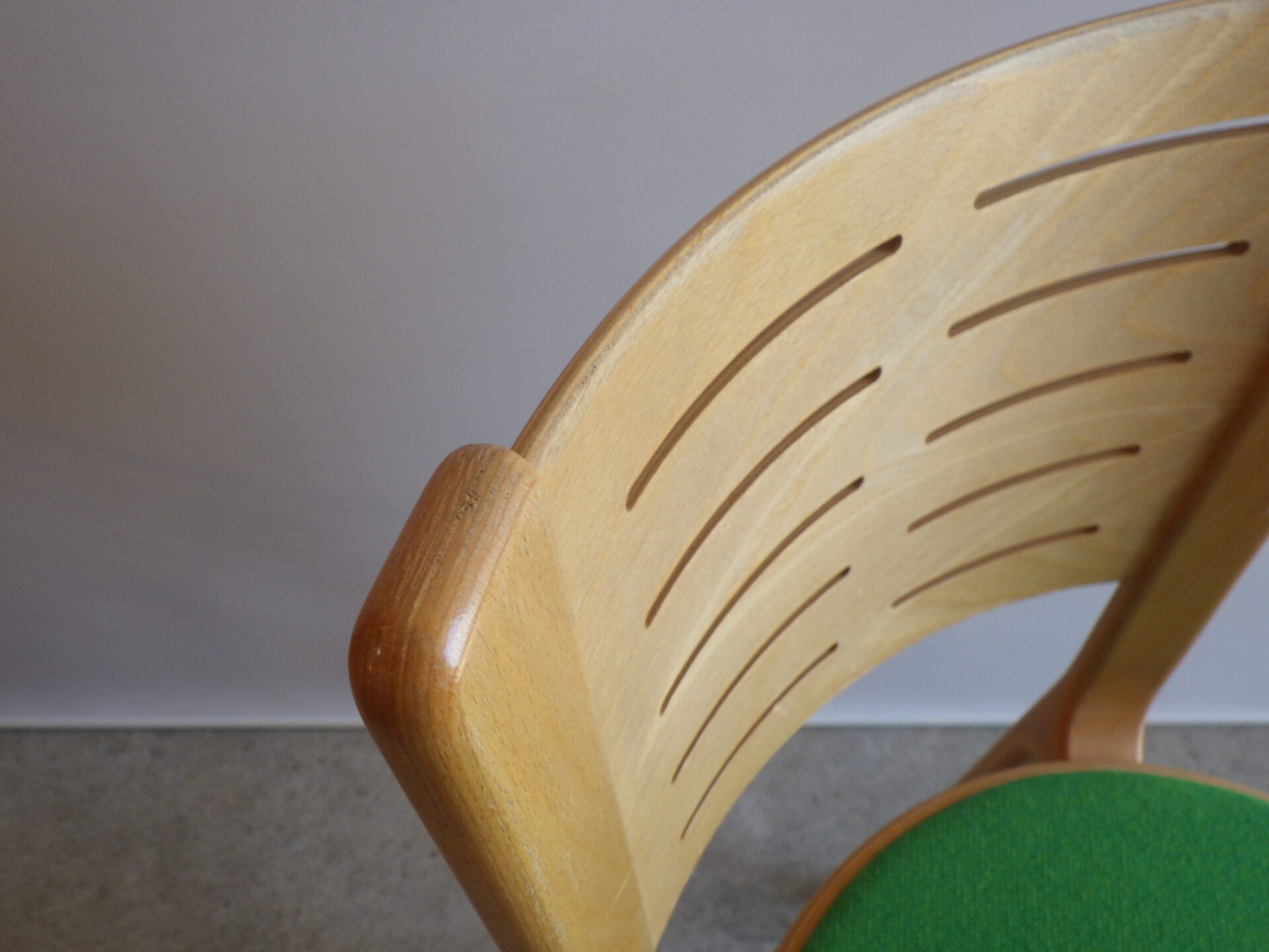 | ヨーロッパで買い付けました。 デンマークの老舗家具メーカーMagnus Olesen(マグナス・オルセン)社製、ダイニングチェアです。 デザイナーは1971年に発表した「8000シリーズ」で世界的評価を受けているRub Thygesen&Johnny Sorensen。 有機的な曲木のフレームには、脚部の取り付けも含め釘やネジが一切使われていません。 ビーチ材のナチュラルで優しい木目と色味も大変魅力的ですね。 こちらは明るめのグリーンのファブリックが空間の良い差し色になってくれそう。 スタッキングできるところもポイントですね。 インテリアを機能的で美しく表現する、マグナス・オルセンらしいアイテムです。 |