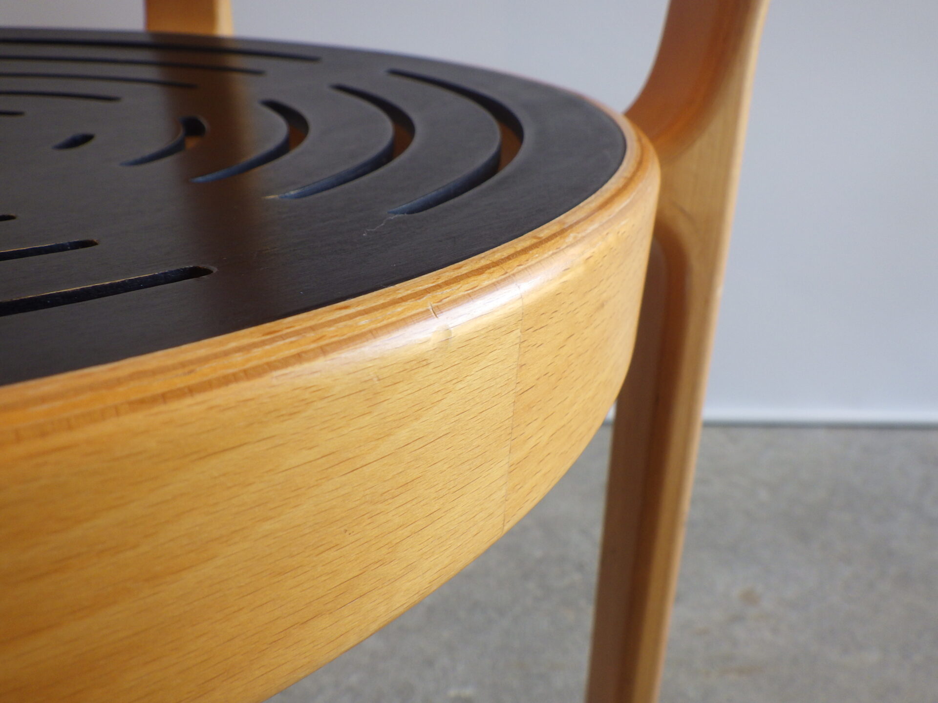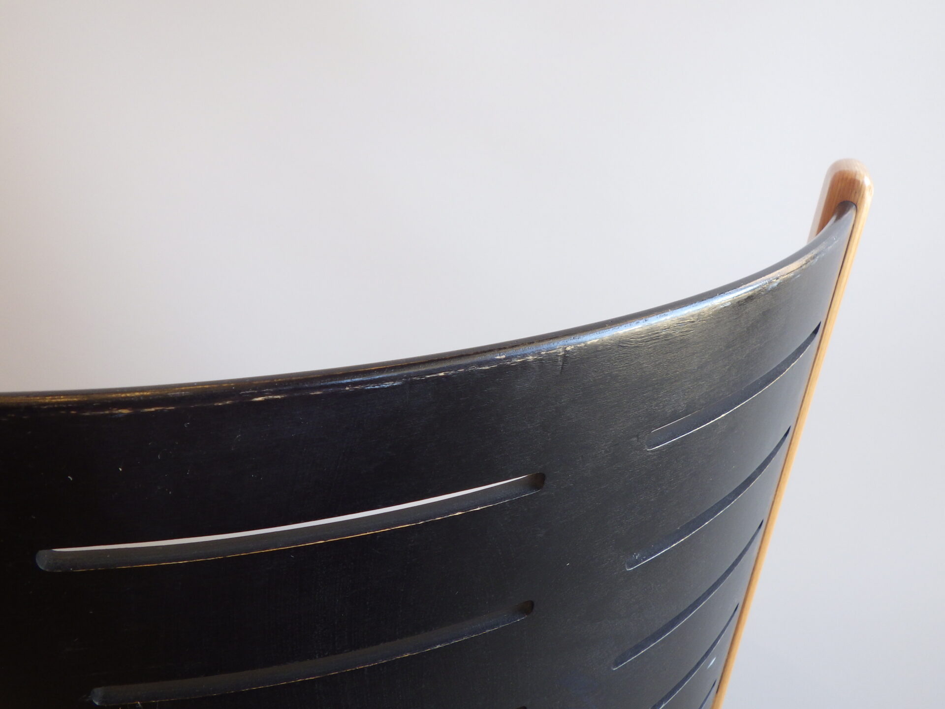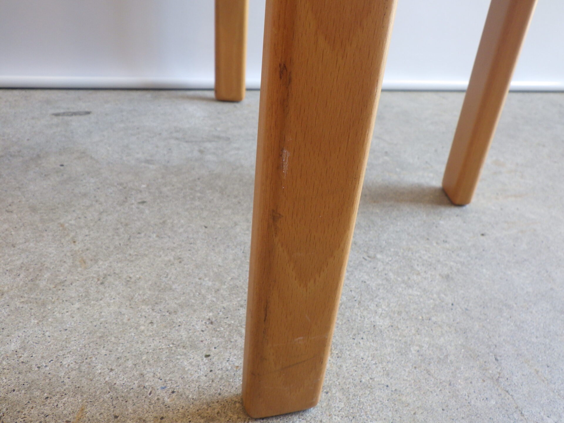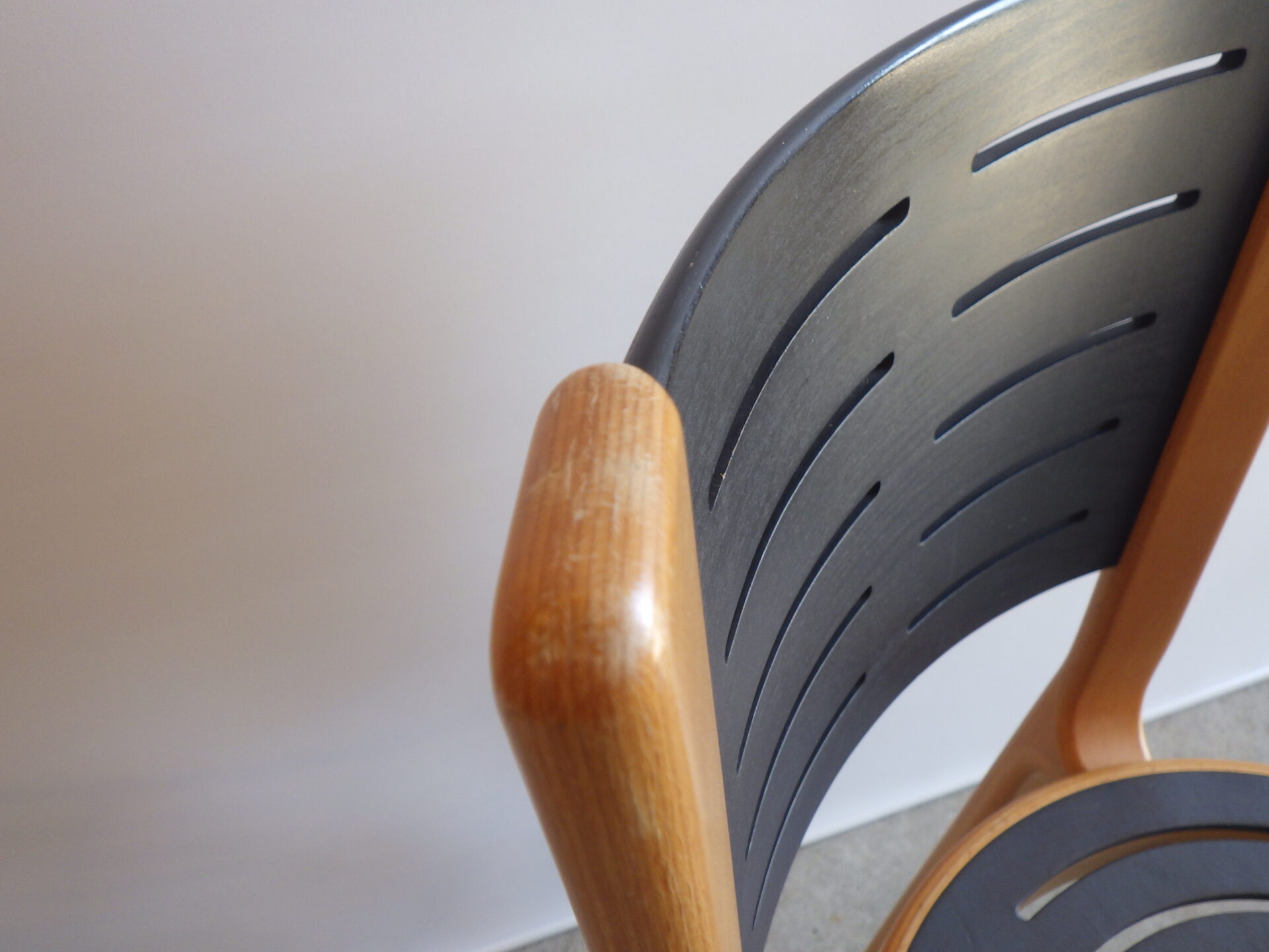 | ヨーロッパで買い付けました。 デンマークの老舗家具メーカーMagnus Olesen(マグナス・オルセン)社製、ダイニングチェアです。 デザイナーは1971年に発表した「8000シリーズ」で世界的評価を受けているRub Thygesen&Johnny Sorensen。 有機的な曲木のフレームには、脚部の取り付けも含め釘やネジが一切使われていません。 ビーチ材のナチュラルで優しい木目、色味と、ブラック塗装のコントラストが大変魅力的で空間の良いアクセントになってくれそう。 スタッキングできるところもポイントですね。 インテリアを機能的で美しく表現する、マグナス・オルセンらしいアイテムです。 |