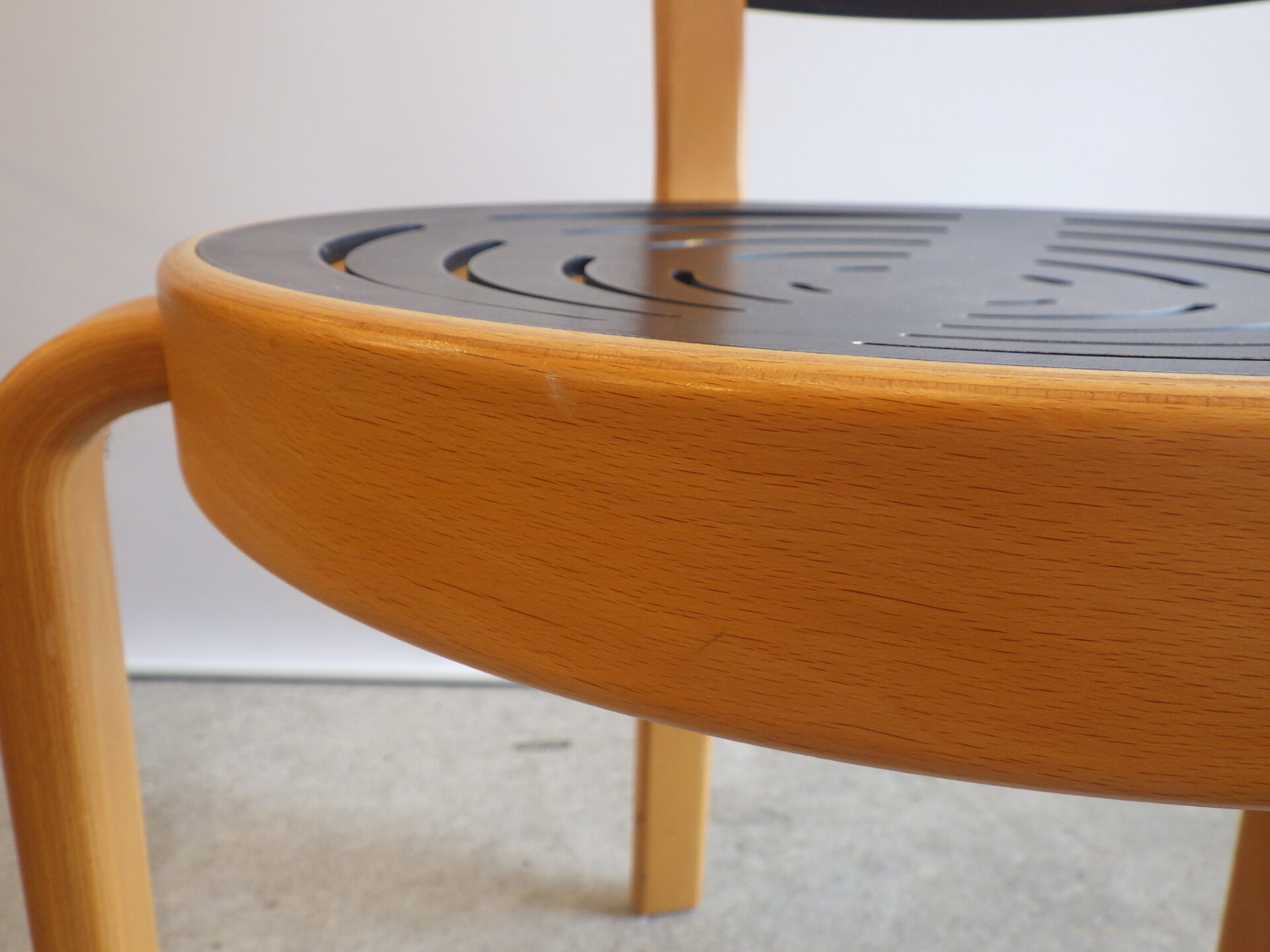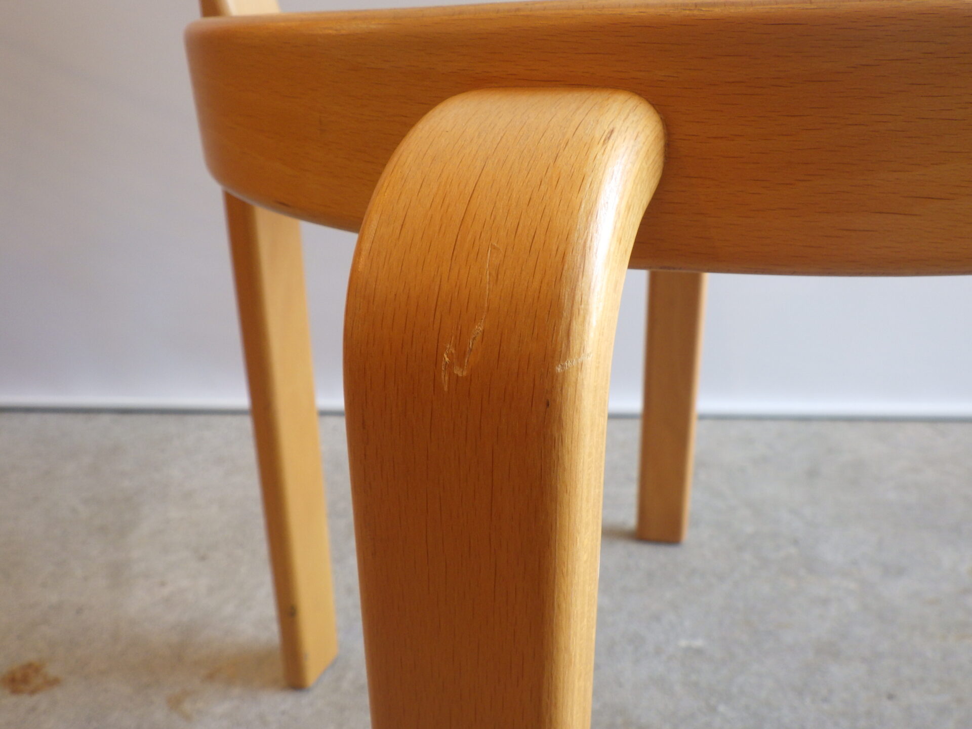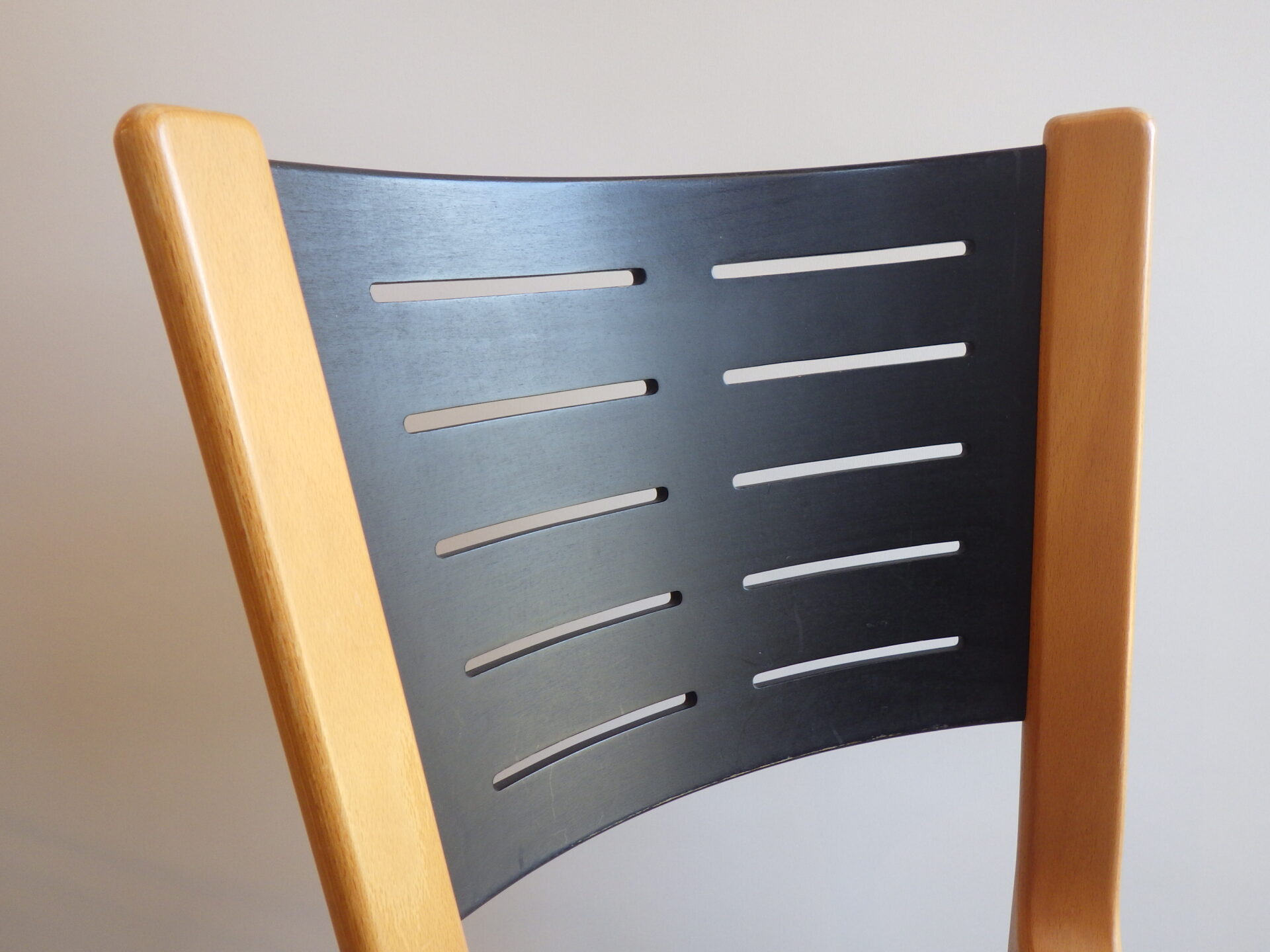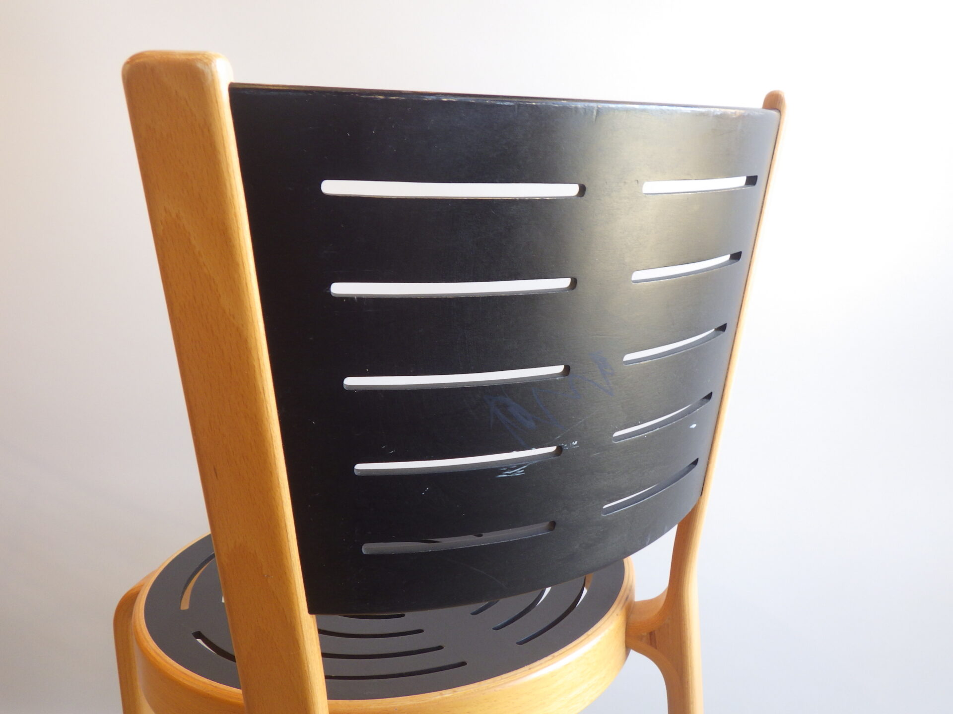 | ヨーロッパで買い付けました。 デンマークの老舗家具メーカーMagnus Olesen(マグナス・オルセン)社製、ダイニングチェアです。 デザイナーは1971年に発表した「8000シリーズ」で世界的評価を受けているRub Thygesen&Johnny Sorensen。 有機的な曲木のフレームには、脚部の取り付けも含め釘やネジが一切使われていません。 ビーチ材のナチュラルで優しい木目、色味と、ブラック塗装のコントラストが大変魅力的で空間の良いアクセントになってくれそう。 スタッキングできるところもポイントですね。 インテリアを機能的で美しく表現する、マグナス・オルセンらしいアイテムです。 |