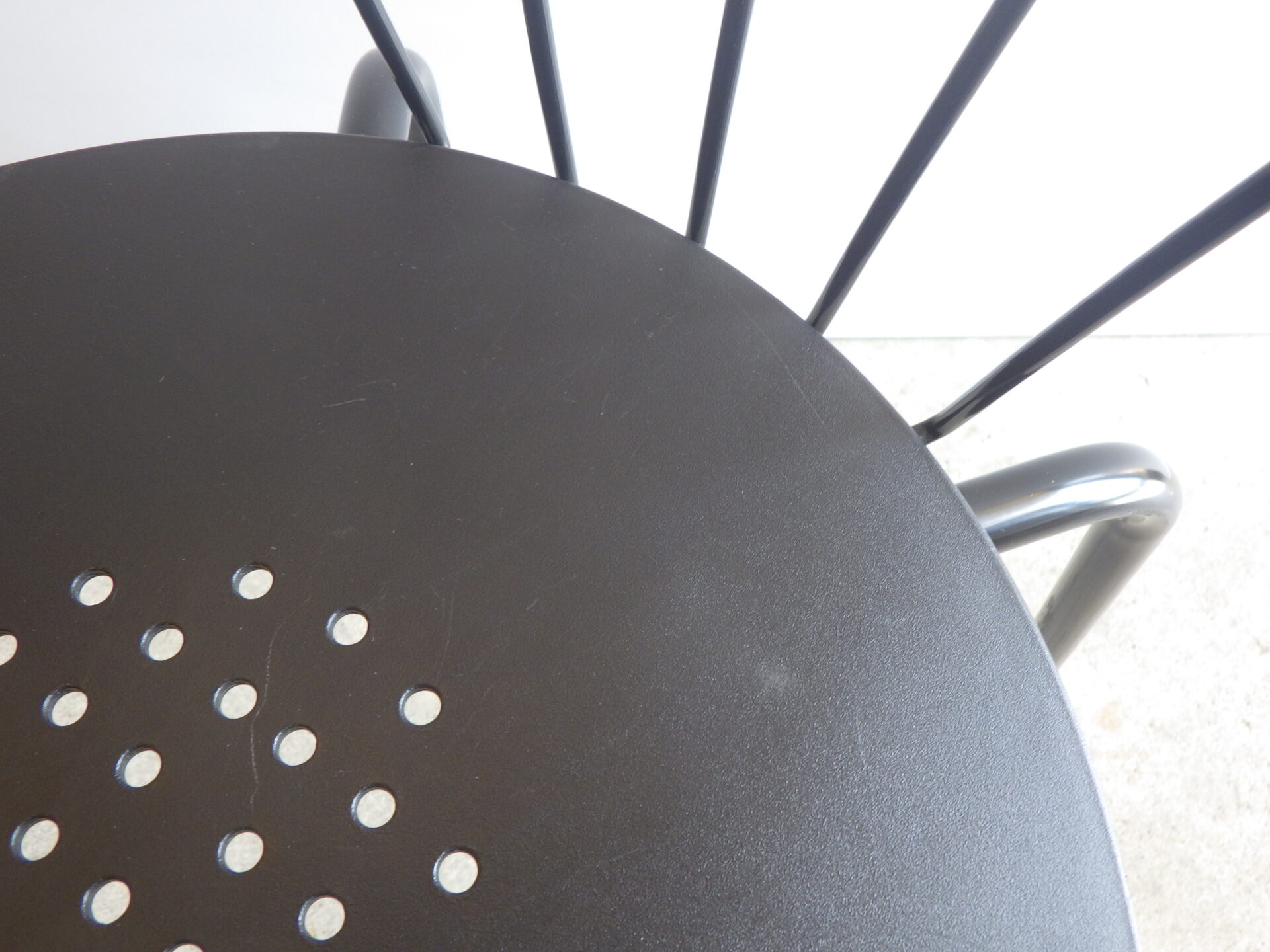| ヨーロッパで買い付けました。 ビンテージイケアのスタッキングチェア(イタリア製)です。 スッキリしたフォルムが印象的なチェアです。 背もたれからアームにかけてのアーチがかったラインがとても美しいですね。 とても軽い作りとなっているため、楽々とスタッキング出来るのも嬉しいところ。 お庭やウッドデッキなどでも活用出来そうです。 |