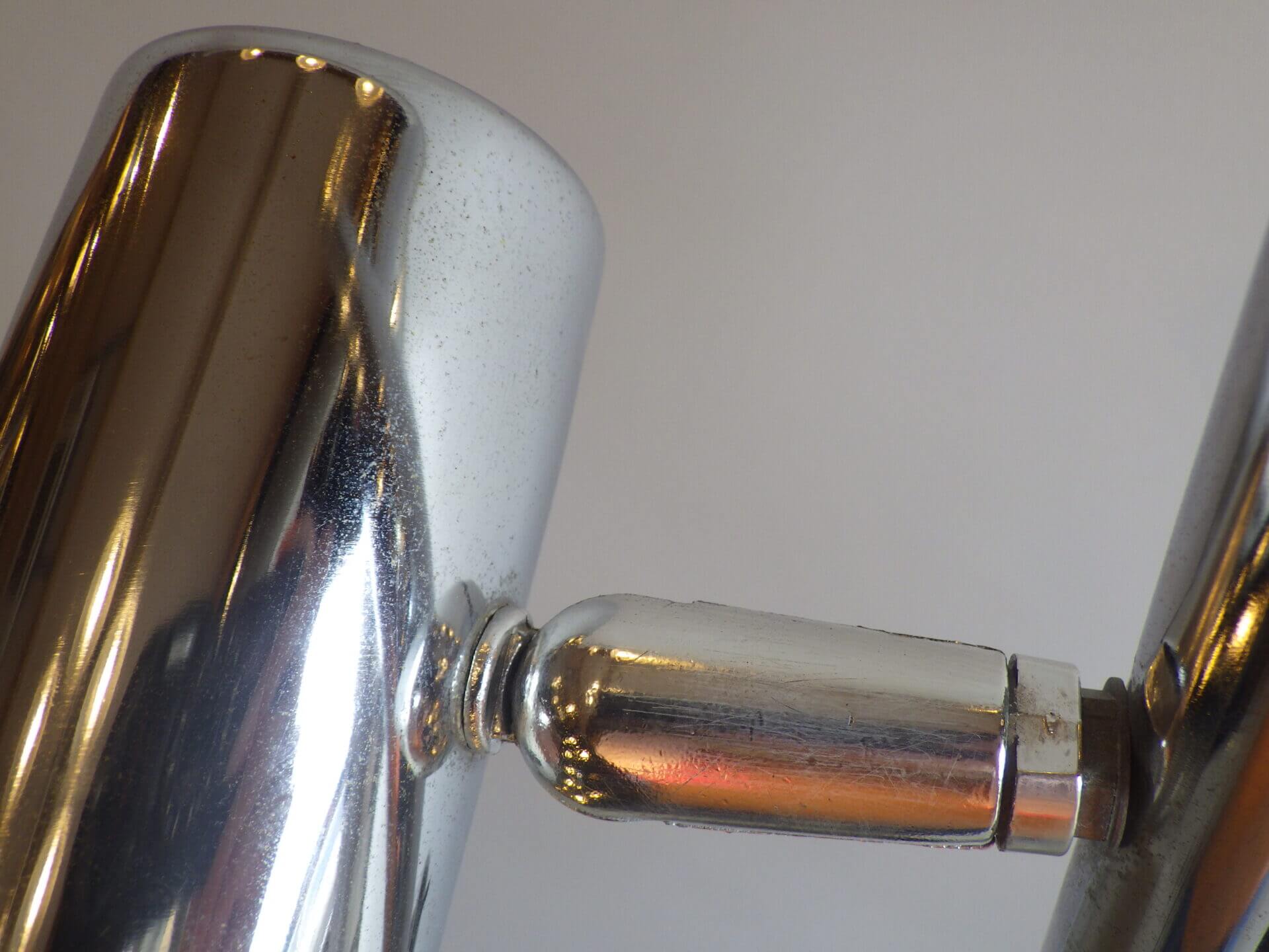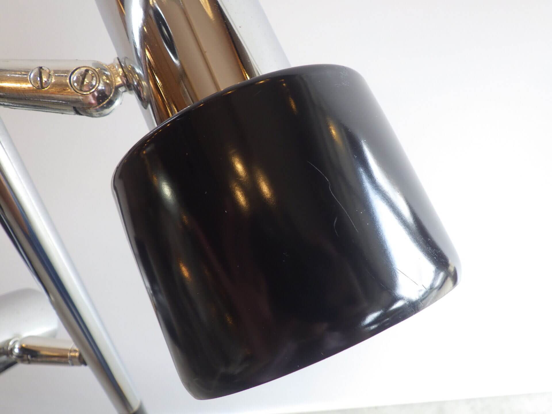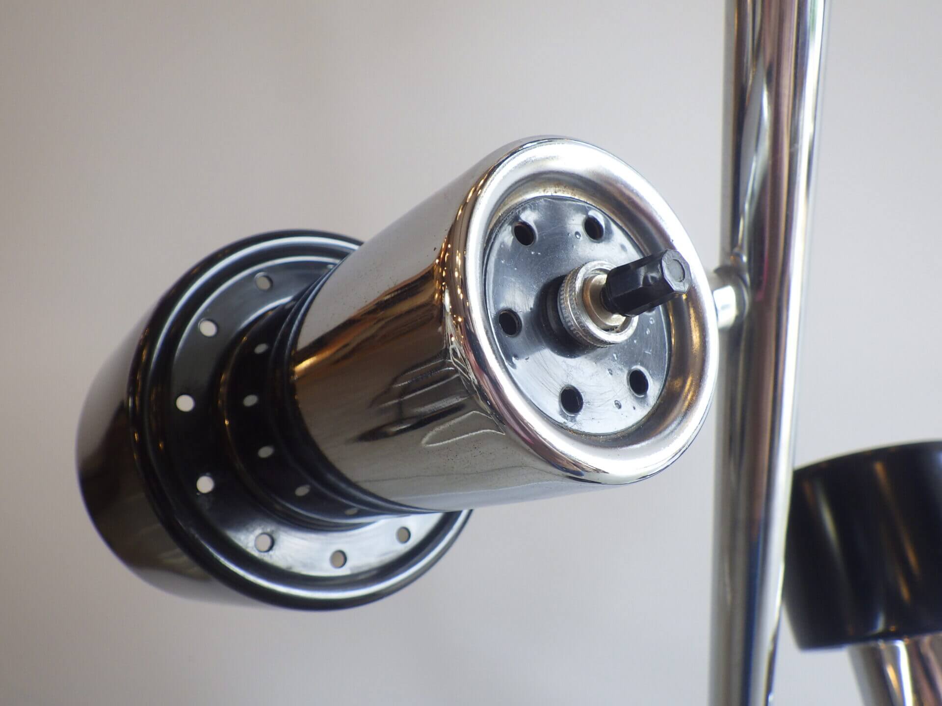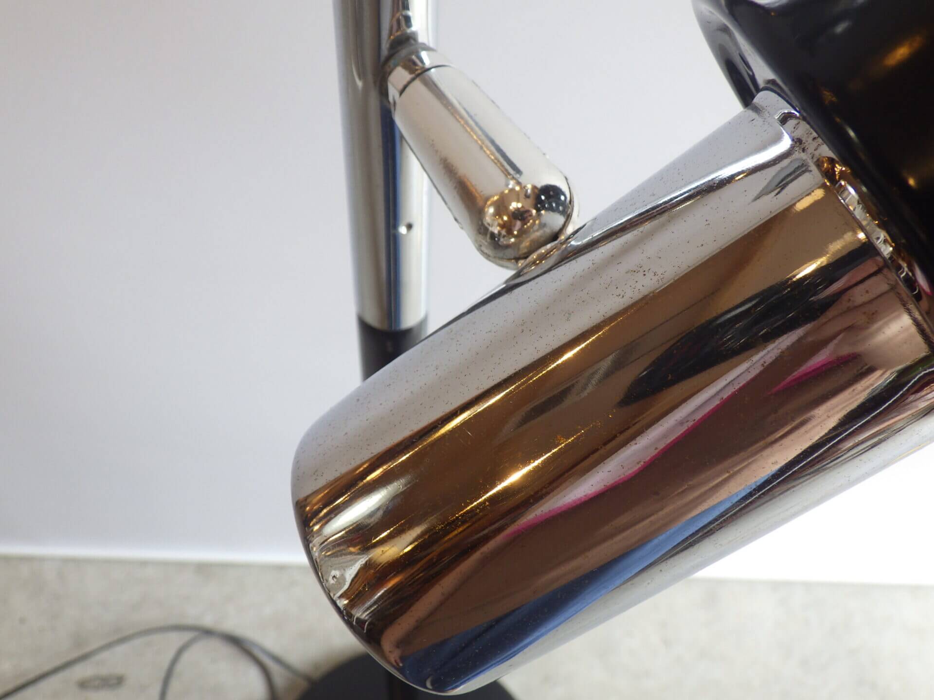 | アメリカで買い付けました。 1970年代頃のフロアランプです。 三灯それぞれが、支柱との付け根とシェードの付け根の二か所可動するため、自由に広い範囲を照らすことが出来ます。 スッキリとしたデザインですので、様々なテイストの空間に馴染んでくれそう。 シェードの頭についているスイッチで、三灯それぞれON/OFFの切り替えが出来ます。 インテリアのアクセントにいかがですか? |