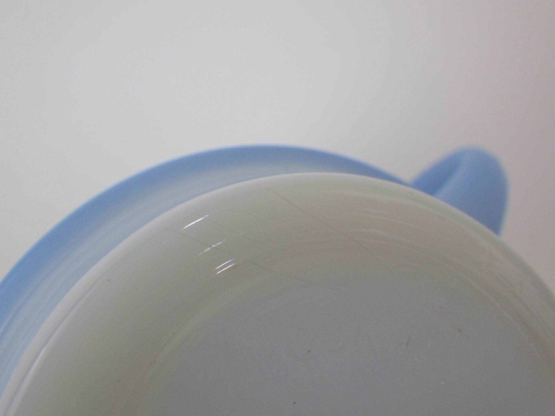 | condition | カップのリムに製造時よりのわずかなガタツキがあります。 経年によるわずかな着色があります。 その他、ミルクガラス特有の製造時よりの劣化線、ヘアライン、ホワイトスポットなどありますが、ご使用に影響のあるダメージはありません。 全体的にツヤもあり、ビンテージらしい良い雰囲気です。 |