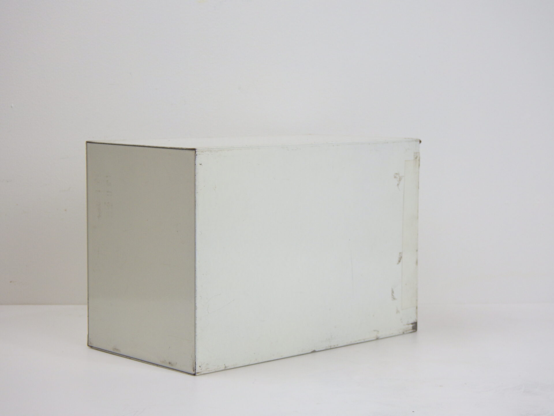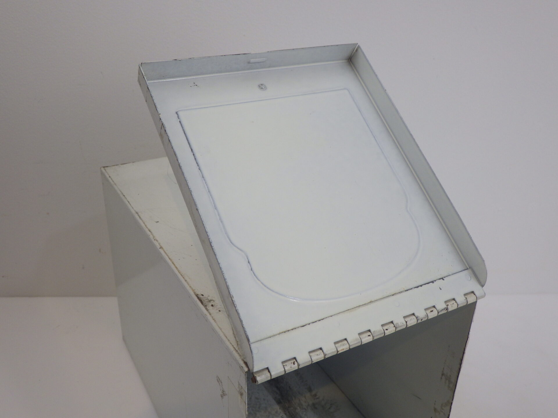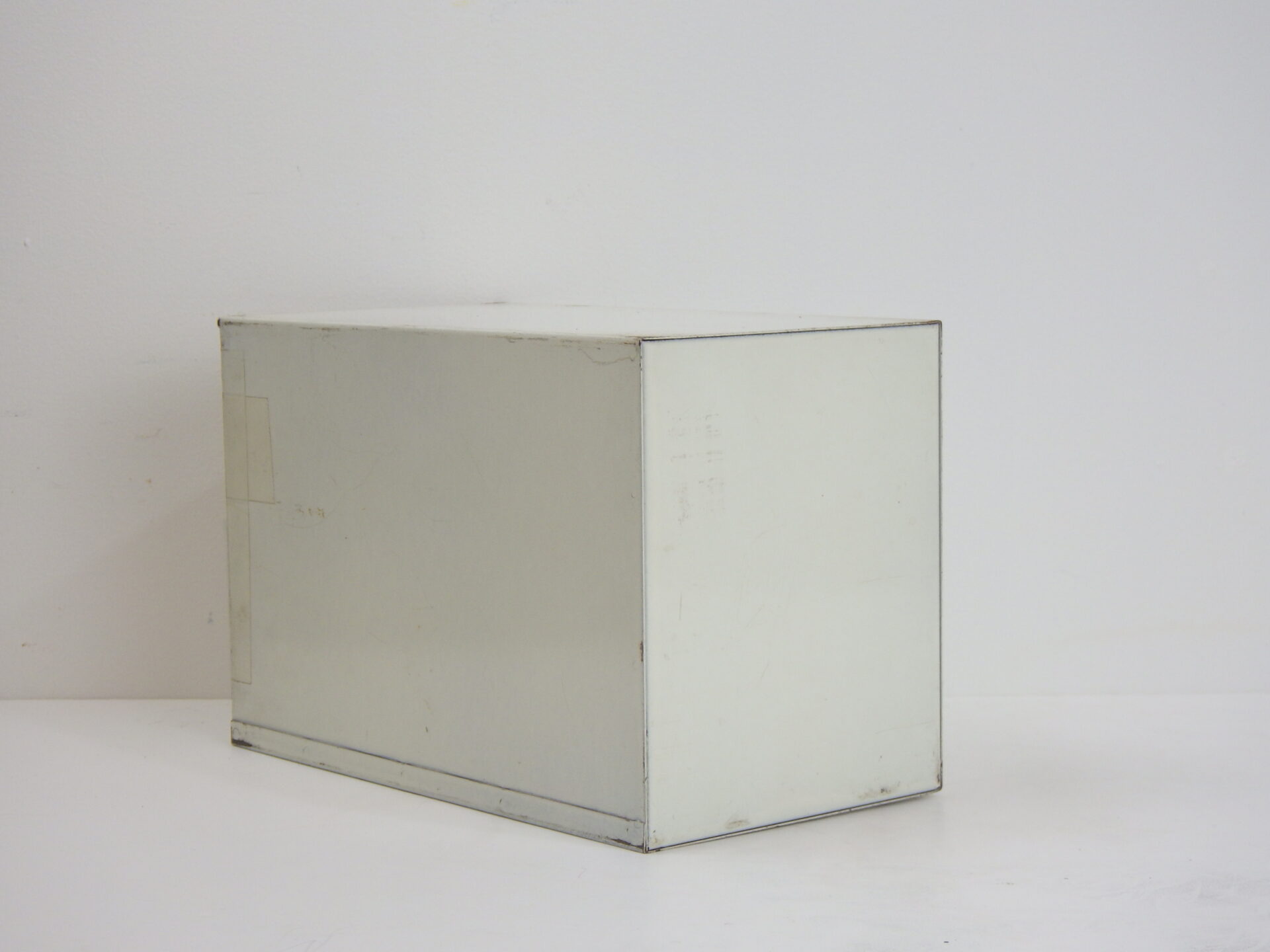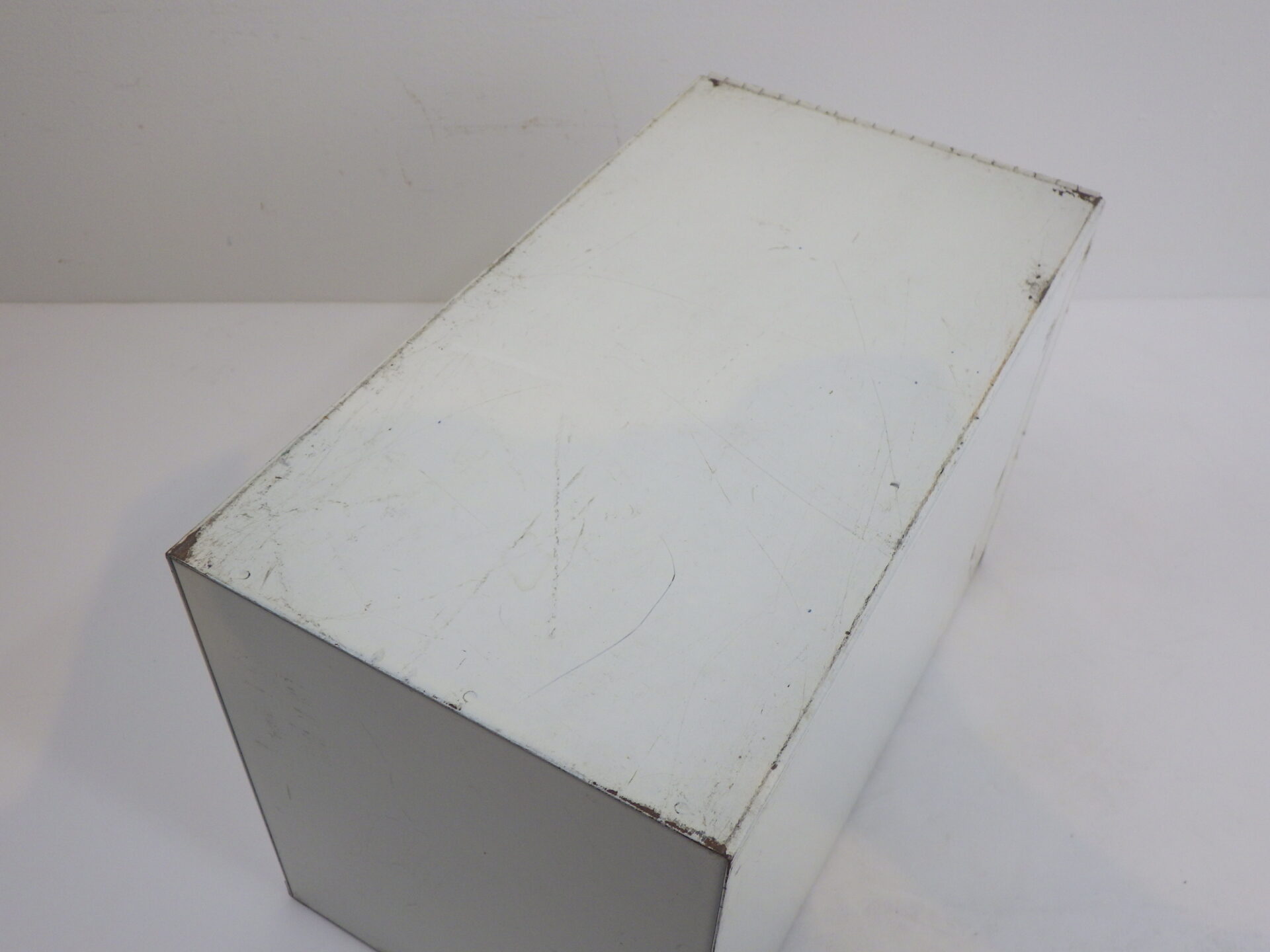 | アメリカで買い付けました。 ファーマーシーなどで患者の処方箋カルテなどの保管に使用されていたボックスです。 ポストのように手前に扉を開けて使います。 メタルのシャビーシックな雰囲気が良いですね。 収納ボックスとしてご家庭で使ったり、店舗什器にして飾ってもオールド感たっぷりで格好良いと思います。 縦に積んだり横に並べたりしてキャビネットのように使っても面白そうです。 |