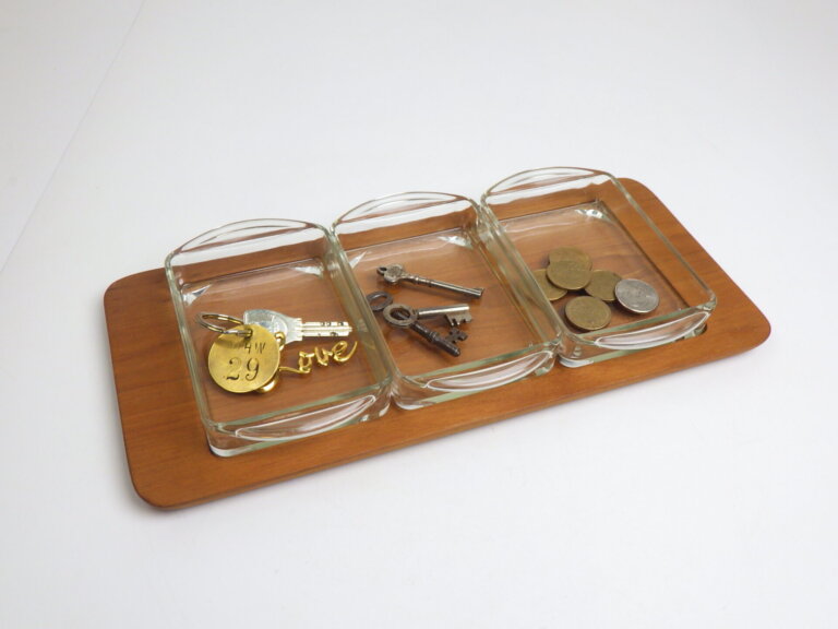 | ヨーロッパで買い付けました。 1964年創業のデンマーク、DIGSMED社製のサービングトレーです。 良質のチーク材とガラスを組み合わせた北欧らしいモダンなデザインです。 ガラス部分は取り外し可能なので、それぞれ単体でもご使用いただけます。 玄関先やリビングなどで、小物入れとしても重宝しそうなアイテムですね。 |