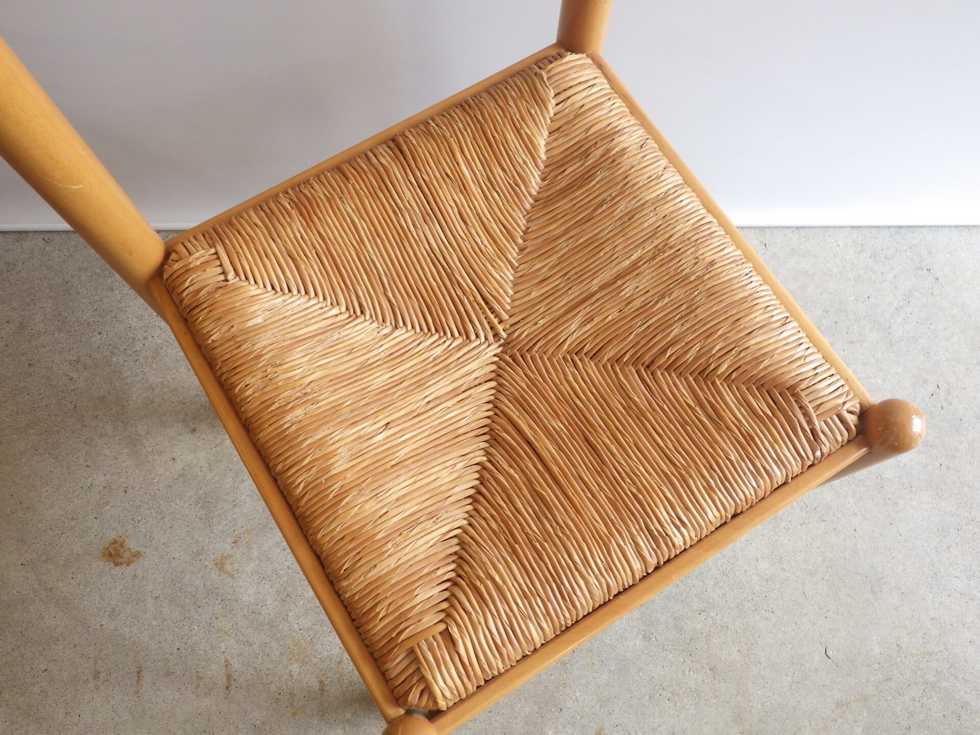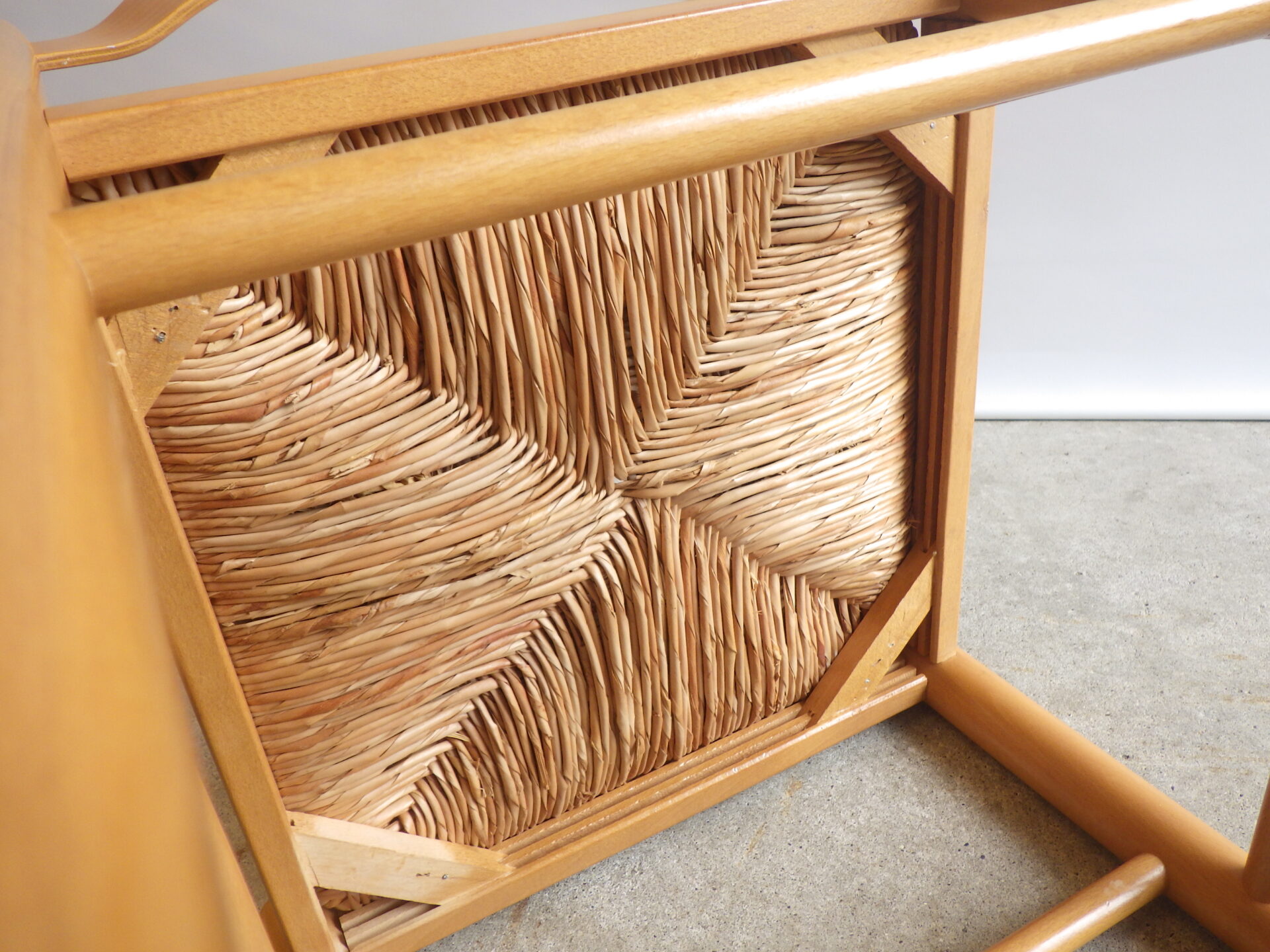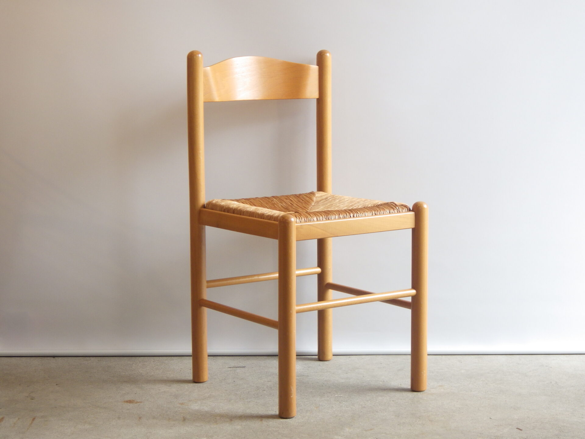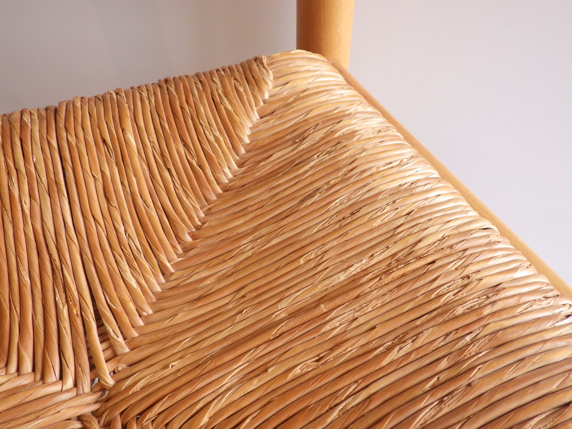 | ヨーロッパで買い付けました。 バーチ材のペーパーコードダイニングチェアです。 イタリア製と思われます。 夏は涼しく冬は暖かく、使い続けるほどに馴染んでいくペーパーコードチェア。 女性でも片手で簡単に持ち上げられるので、お掃除の際にもとても楽です。 またこちらのチェアは封筒編みとなっており、座面の中心に向けて緩やかに凹んでいるため、ゆったりとした座り心地で、快適に過ごしていただけますよ。 |