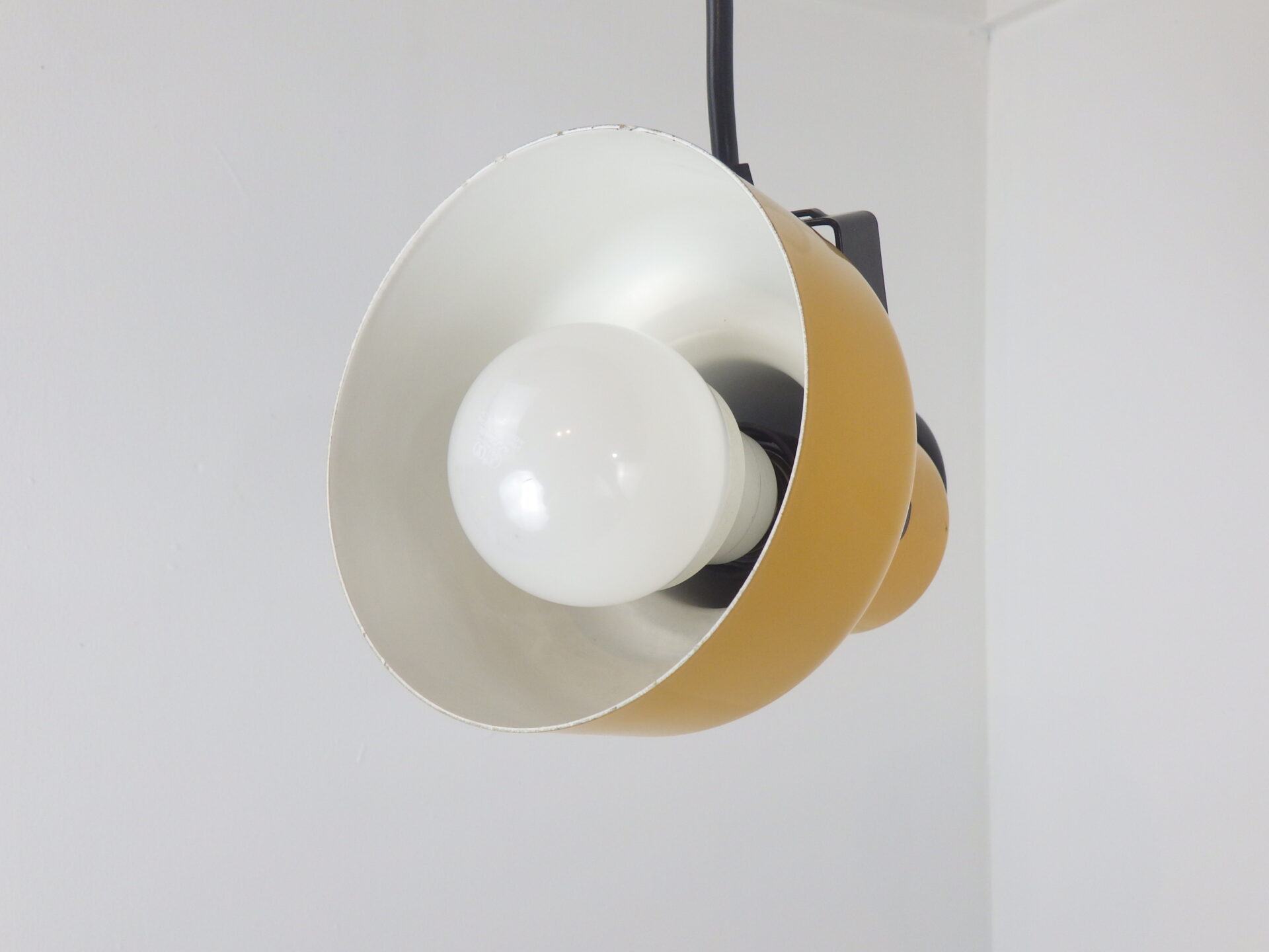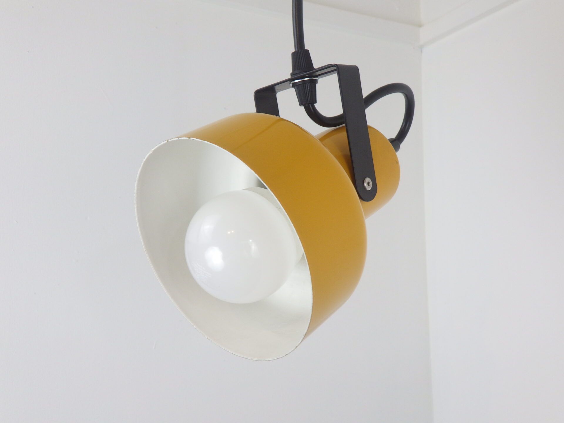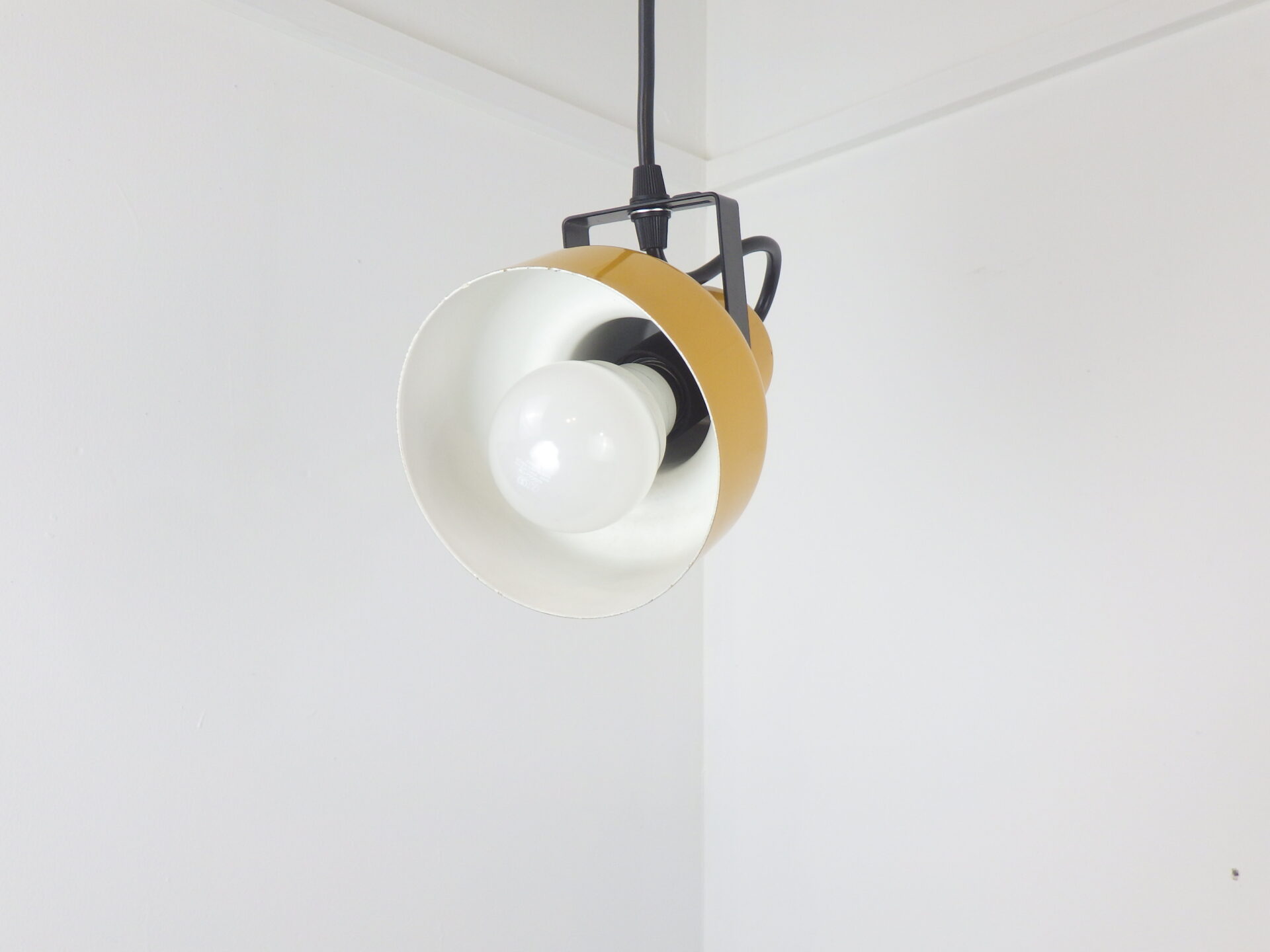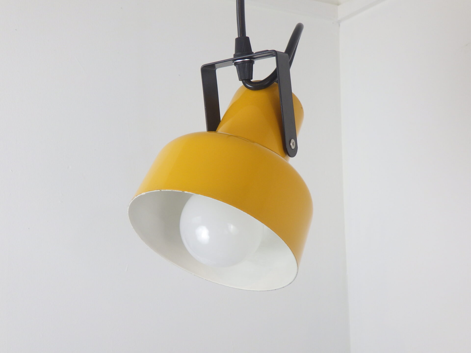 | ヨーロッパで買い付けました。 ビンテージスポットライト/ペンダントランプです。 小ぶりですが、イエローカラーが印象的なので、空間の良いアクセントになってくれそうです。 また、背面のハンドル部分で角度を調節出来ます。 |