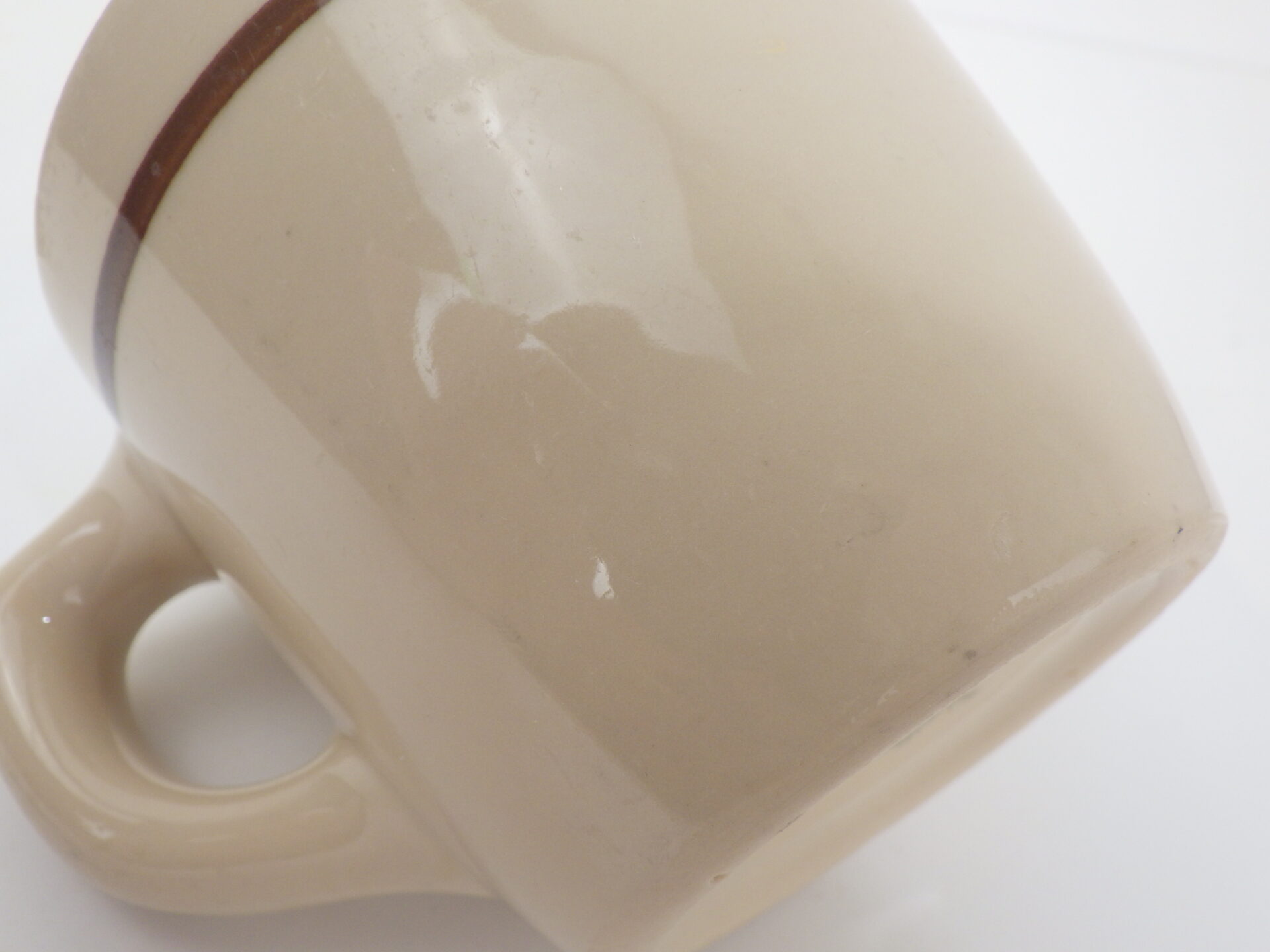 | アメリカで買い付けました。 ビンテージのマグです。 STERLING CHINAはアメリカ、オハイオ州に1902年創業した老舗メーカーです。 ホテルやレストラン向けの食器や家庭用食器など製造していました。 こちらは業務用ならではの厚みのあるぽってりとした作りがまさに「アメリカンダイナー」なアイテムです。 頑丈な作りなので、気兼ねなく普段使いしていただけますよ。 |