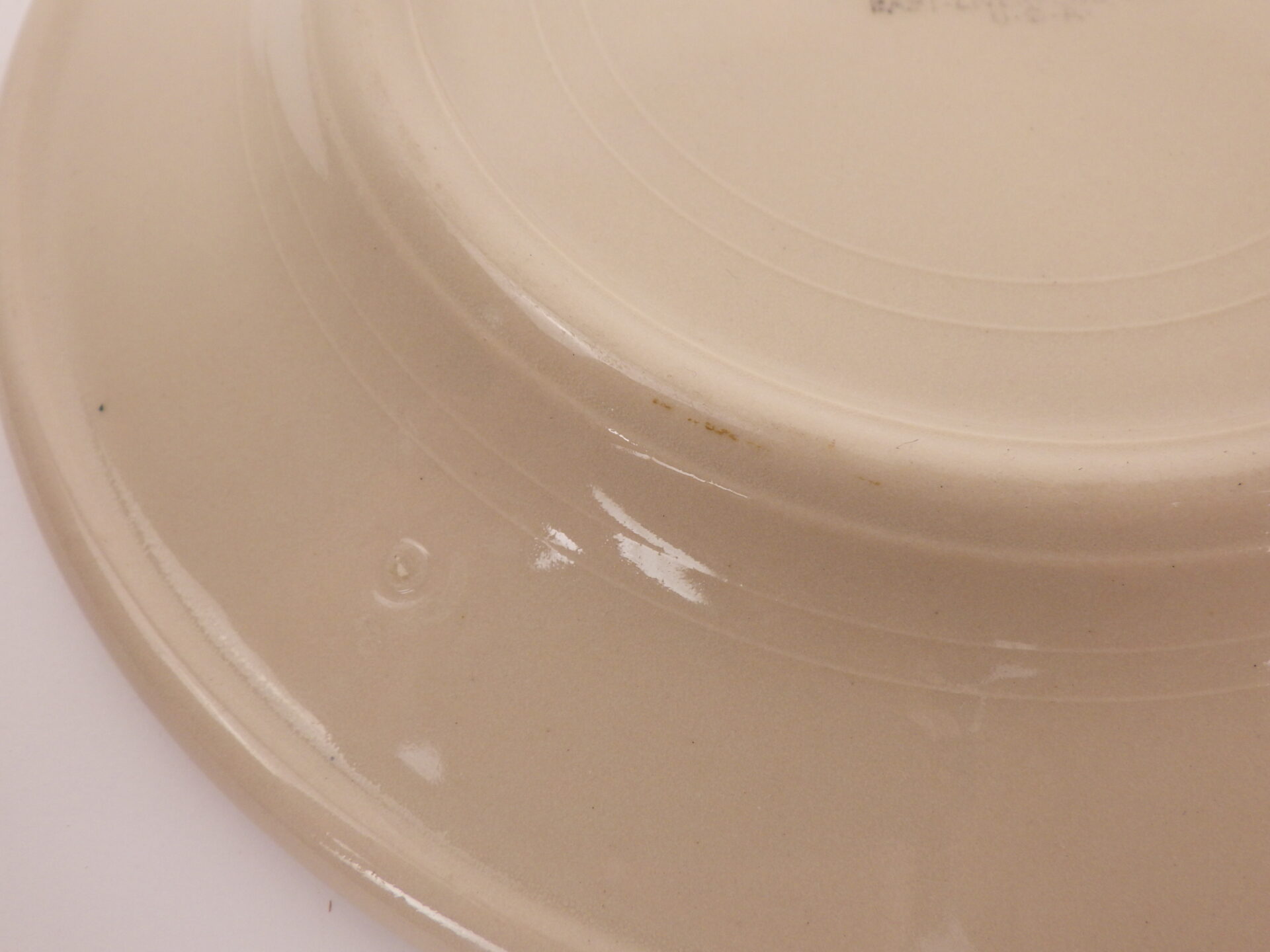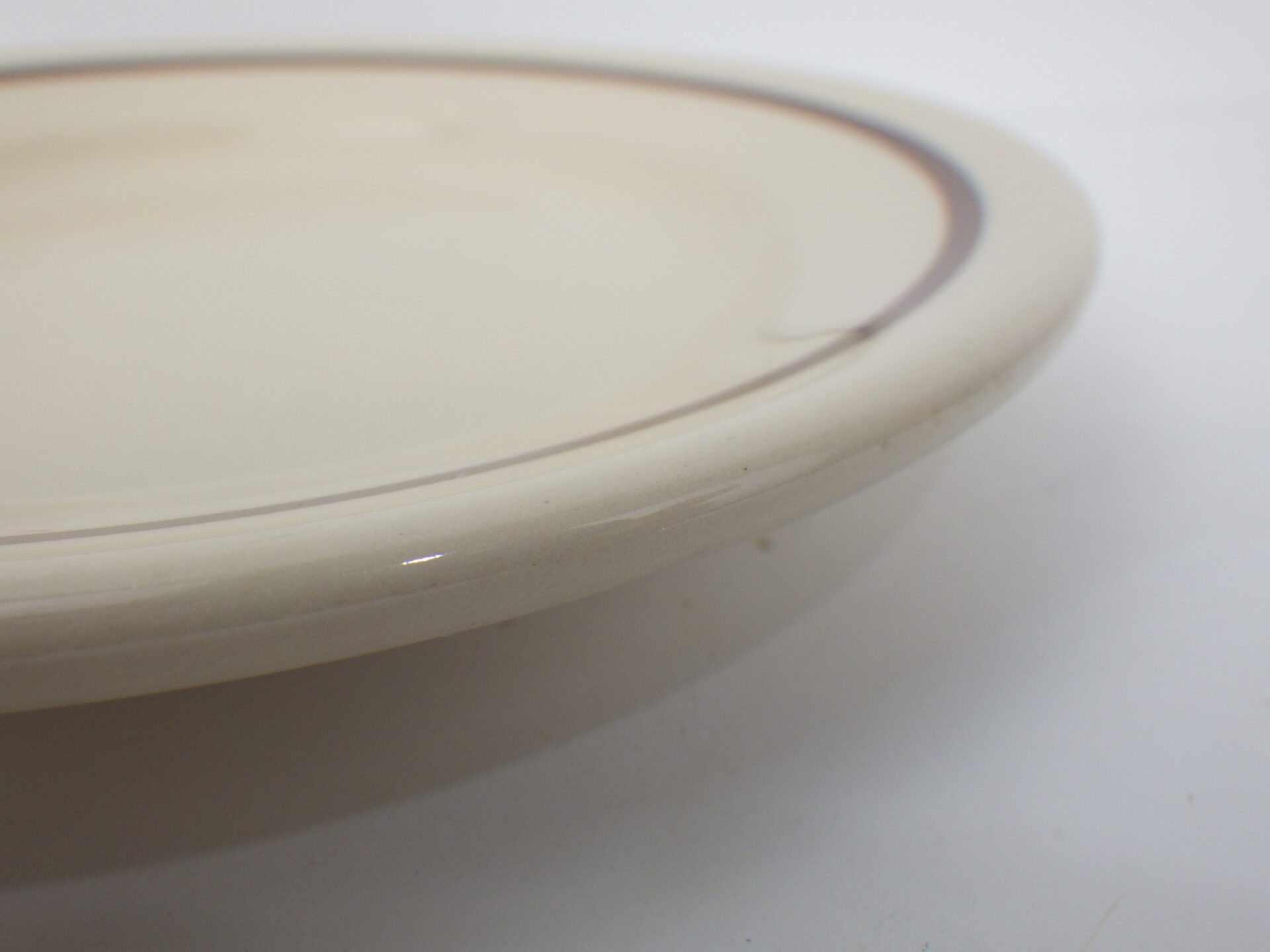 | アメリカで買い付けました。 ビンテージのプレートです。 サイズはサラダプレートくらいの大きさです。 STERLING CHINAはアメリカ、オハイオ州に1902年創業した老舗メーカーです。 ホテルやレストラン向けの食器や家庭用食器など製造していました。 こちらは業務用ならではの厚みのあるぽってりとした作りがまさに「アメリカンダイナー」なアイテムです。 頑丈な作りなので、気兼ねなく普段使いしていただけますよ。 |
