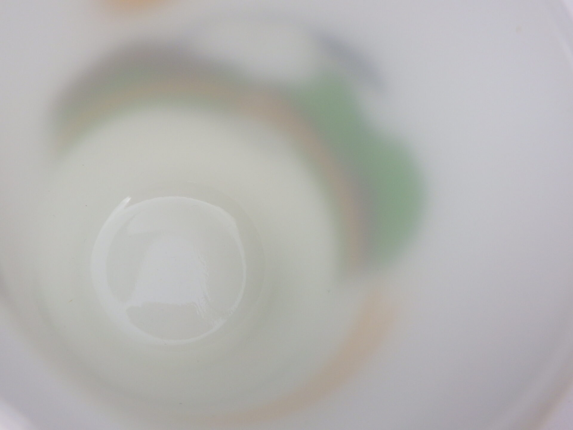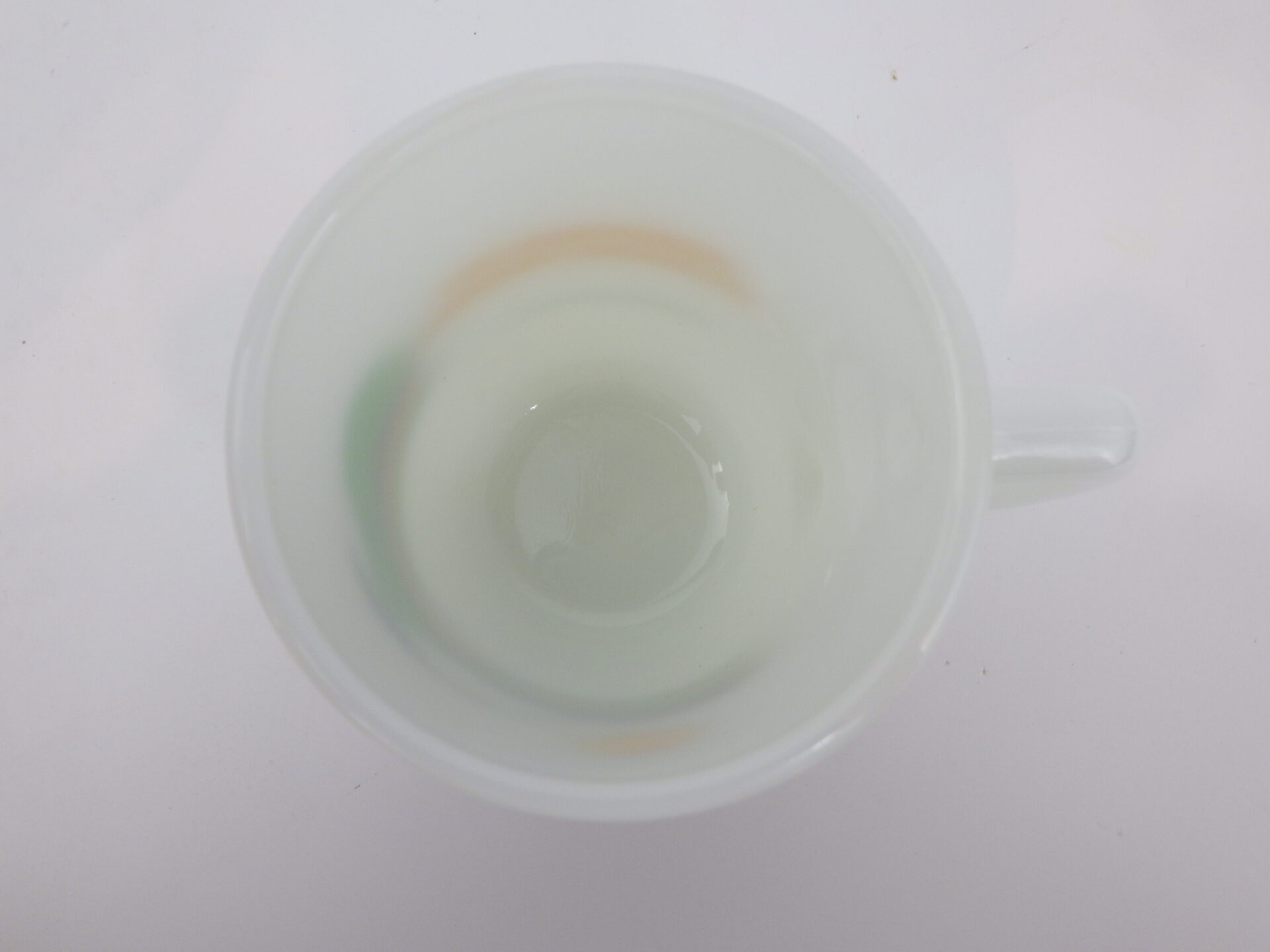 | condition | リム、ボトム、ハンドルにわずかな着色があります。 製造時よりの凹凸、ヘアライン、劣化線、ホワイトスポット、気泡痕、ガラスのヨレなどみられますが、ミルクガラス特有のもので、ご使用に影響のあるダメージはありません。 |
