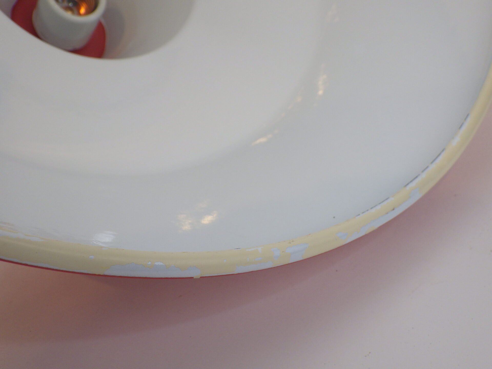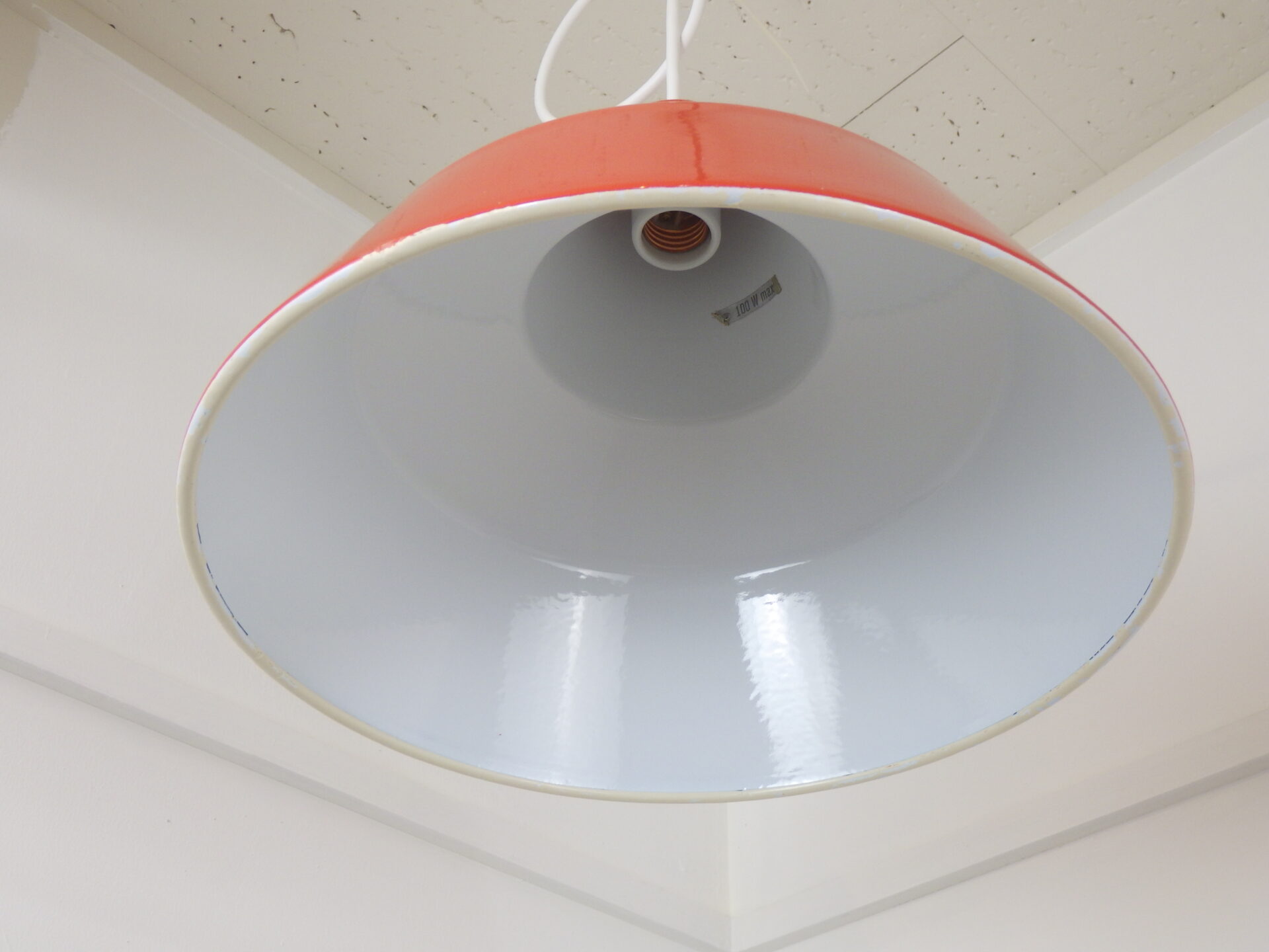 | condition | シェードの縁に塗装の剥がれが見られます。 その他、経年による小キズ、汚れ、わずかなエナメルの剥がれ等ありますが、全体的にツヤもあり、ビンテージらしい良い雰囲気です。 不明な点や追加画像の必要な場合は、お気軽にお問い合わせ下さい。 ※電源は日本式の角形引掛シーリングに変更してあります。 |