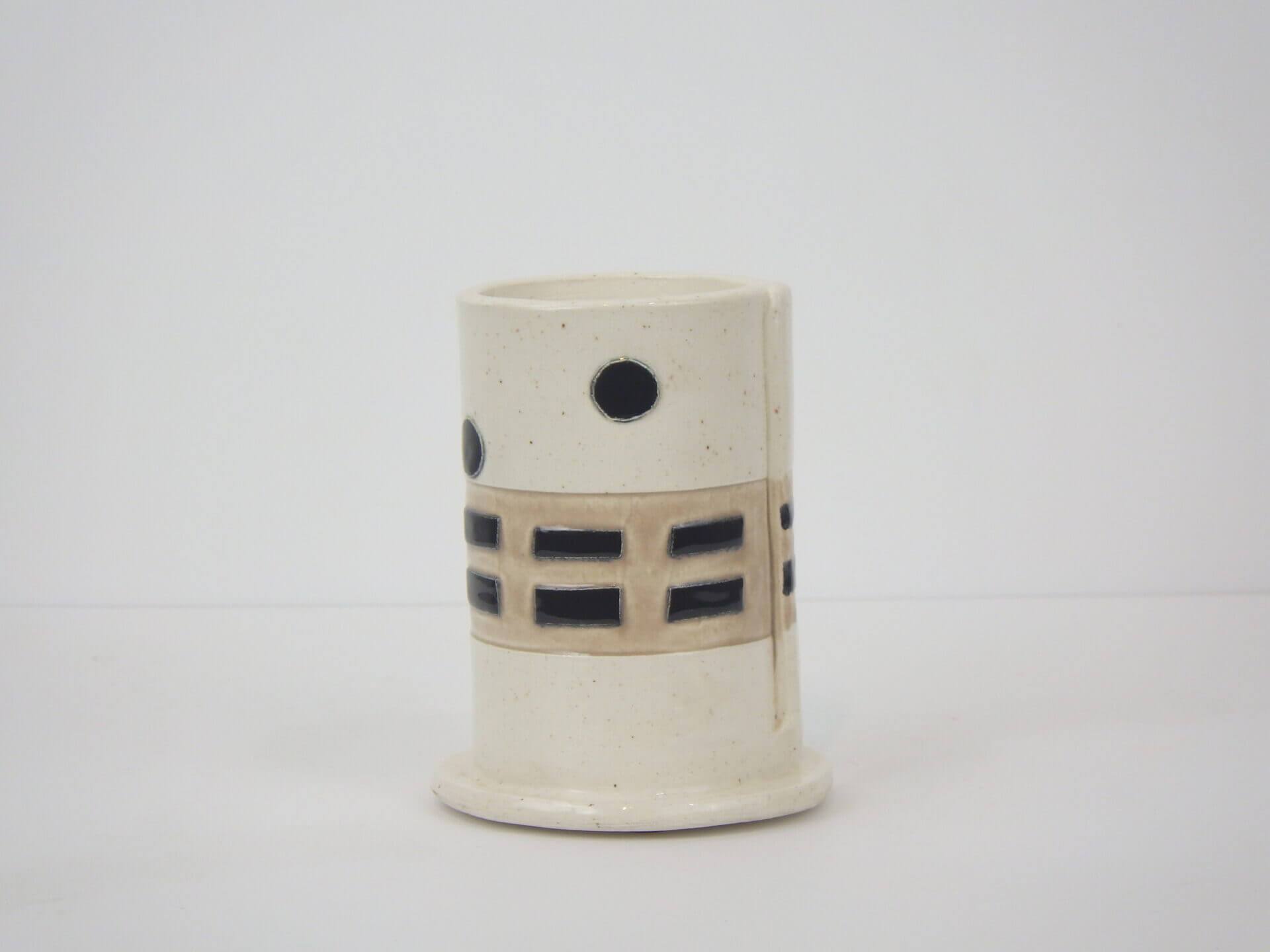| アメリカで買い付けました。 陶器のフラワーベースです。 球と長方形との組み合わせでデザインされた印象的なデザイン。 花瓶としてだけでなく、ペン立てなどアレンジしてご使用いただけそうです。 |