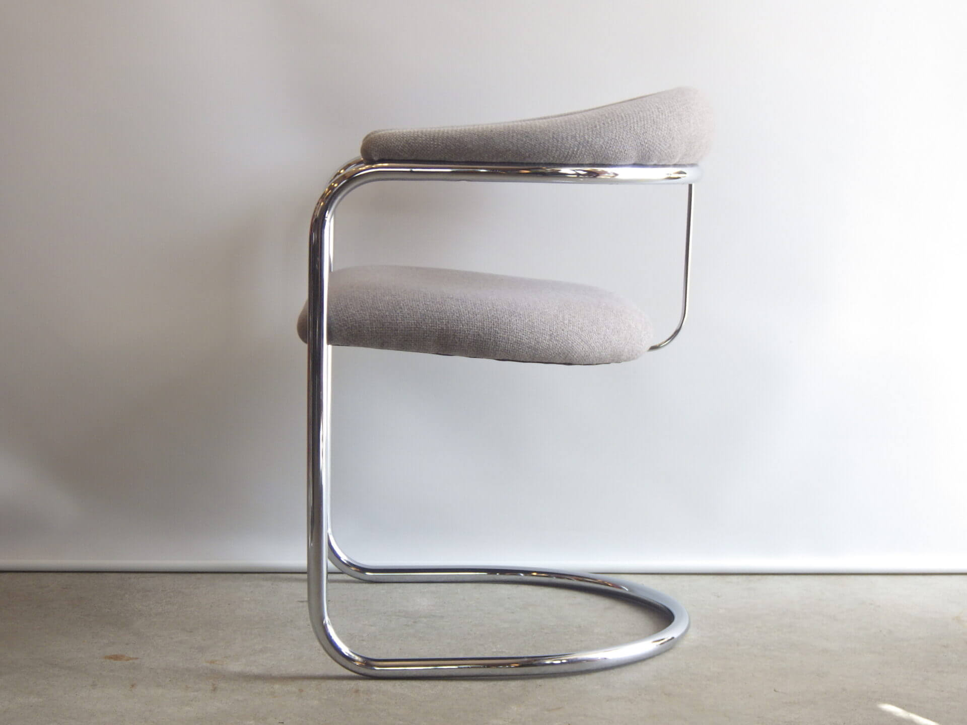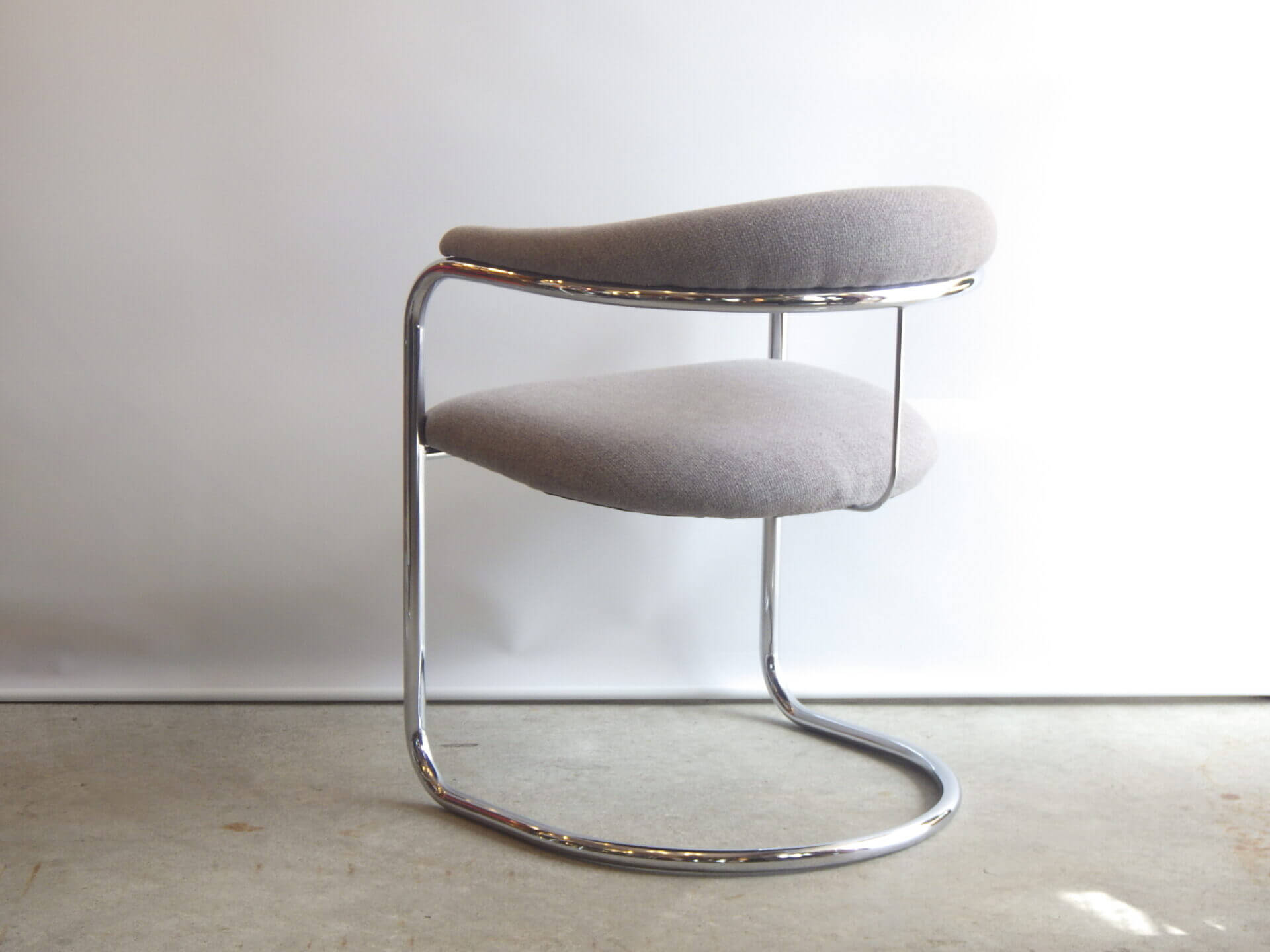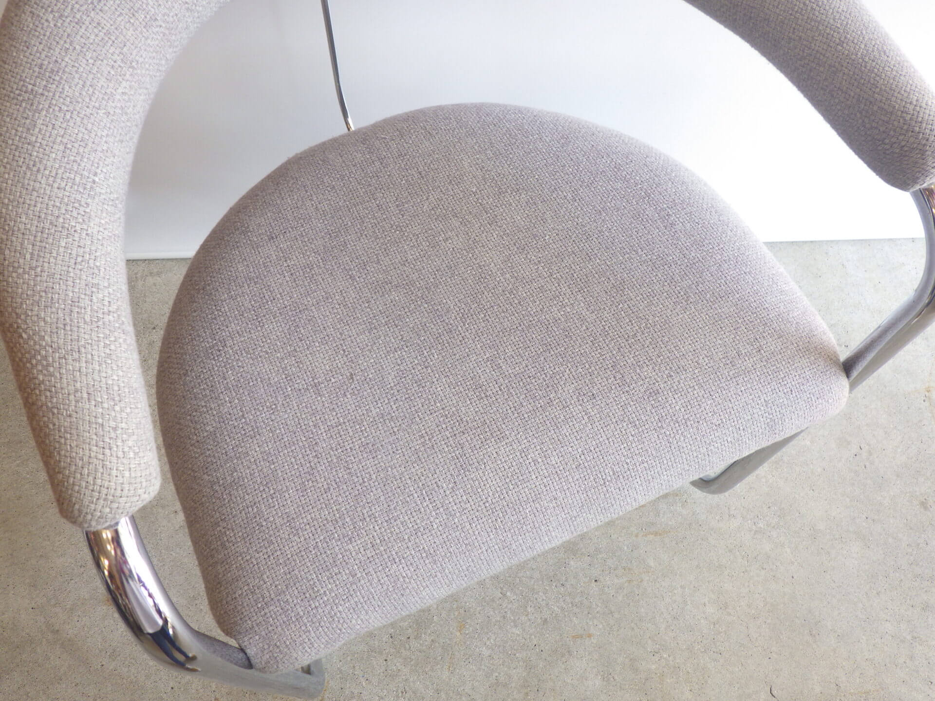 | アメリカで買い付けました。 Anton LorenzがThonet社のためにデザインしたSS33、カンチレバーアームチェアです。 ハンガリー出身のアントン・ロレンツは1920年にドイツに移り住み、その後バウハウスでスチールパイプの椅子をデザインしていたマルセル・ブロイヤーと協働、産業化に成功しています。 四本脚の椅子と比べ、カンチレバー構造は背中側の脚がないため、座る人の体重に合わせて座面が適度にしなります。 姿勢を変えるごとに程よくしなり、身体を受け止めてくれるため、長時間座っても疲れにくいというメリットがあります。 こちらのSS33は背面側が美しいアーチ状のデザインで、見た目にも美しさ、優雅さを感じ取れるアイテムですね。 ライトグレーのファブリックも良いカラーですので、空間をより上質に、大人可愛い雰囲気に仕上げてくれそうです。 |