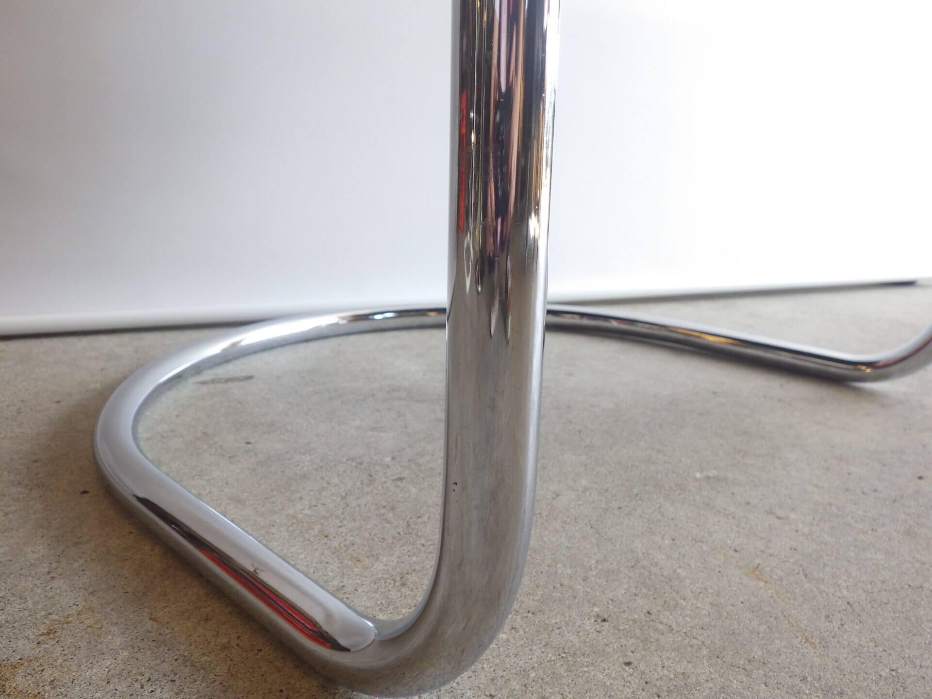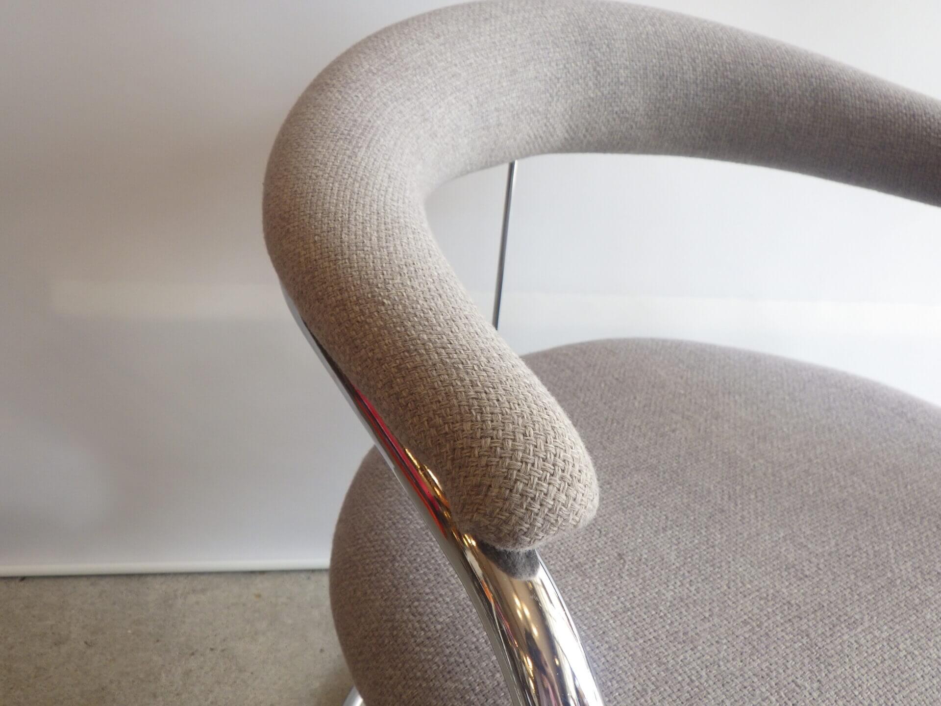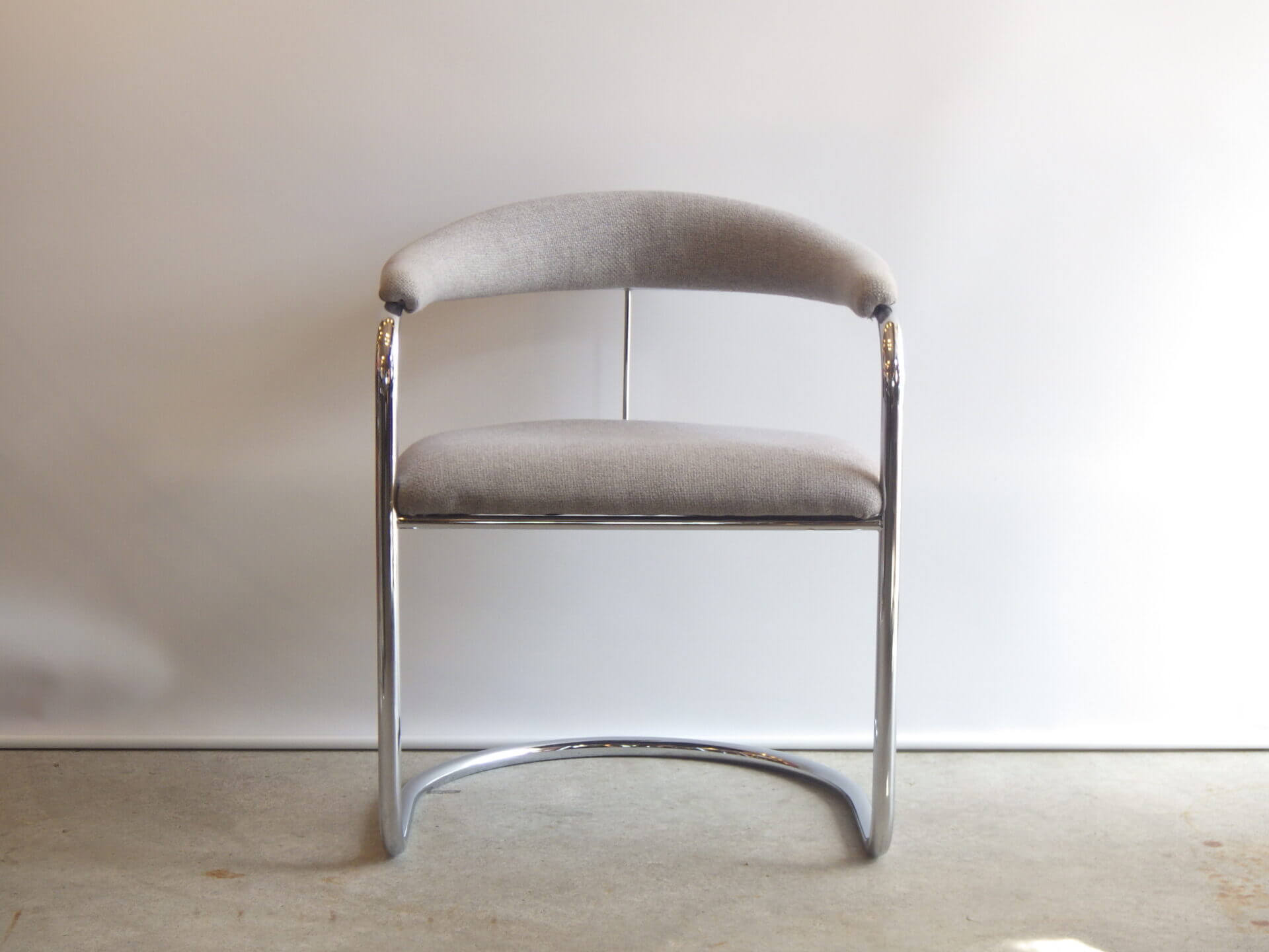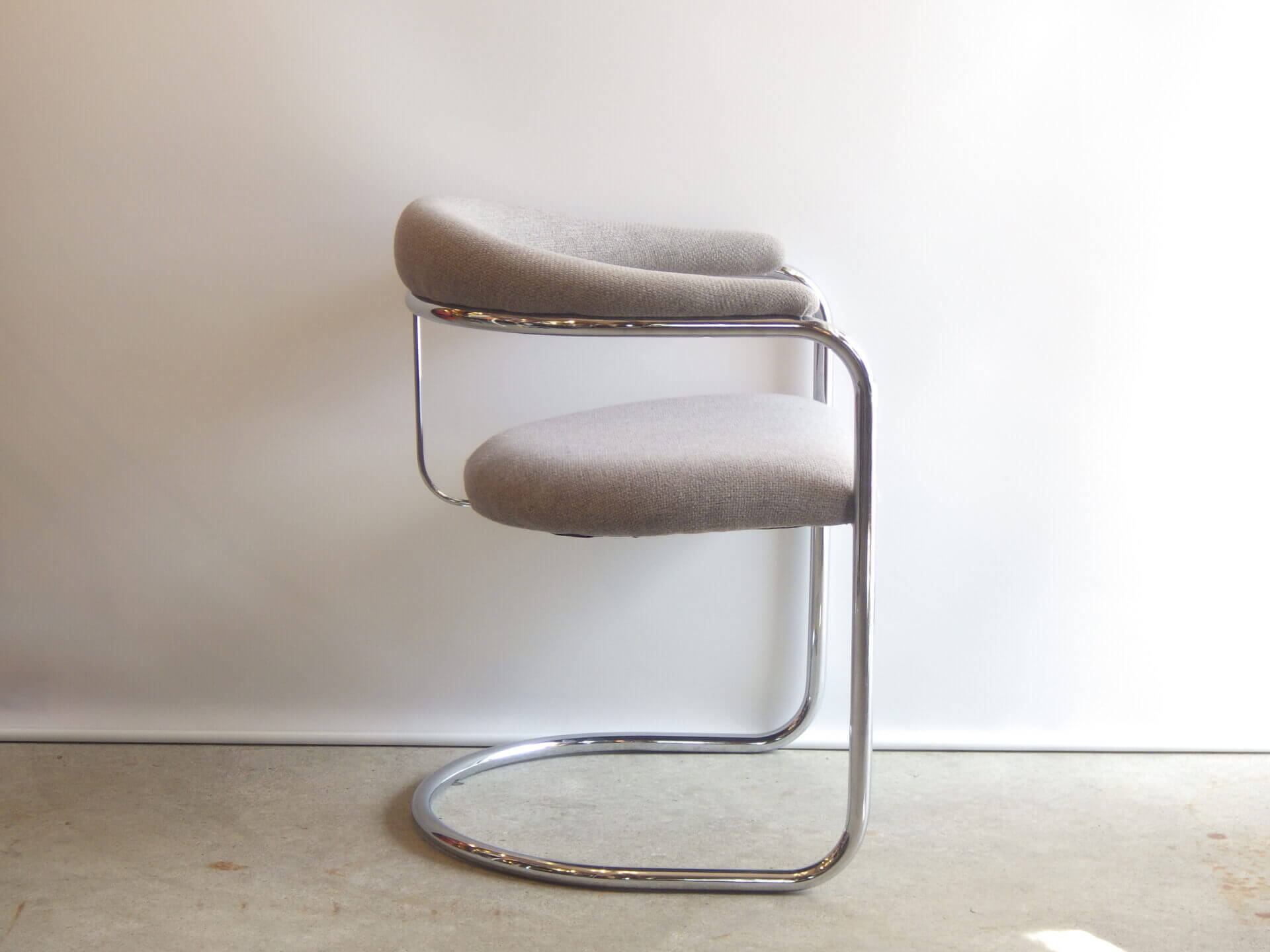 | アメリカで買い付けました。 Anton LorenzがThonet社のためにデザインしたSS33、カンチレバーアームチェアです。 ハンガリー出身のアントン・ロレンツは1920年にドイツに移り住み、その後バウハウスでスチールパイプの椅子をデザインしていたマルセル・ブロイヤーと協働、産業化に成功しています。 四本脚の椅子と比べ、カンチレバー構造は背中側の脚がないため、座る人の体重に合わせて座面が適度にしなります。 姿勢を変えるごとに程よくしなり、身体を受け止めてくれるため、長時間座っても疲れにくいというメリットがあります。 こちらのSS33は背面側が美しいアーチ状のデザインで、見た目にも美しさ、優雅さを感じ取れるアイテムですね。 ライトグレーのファブリックも良いカラーですので、空間をより上質に、大人可愛い雰囲気に仕上げてくれそうです。 |