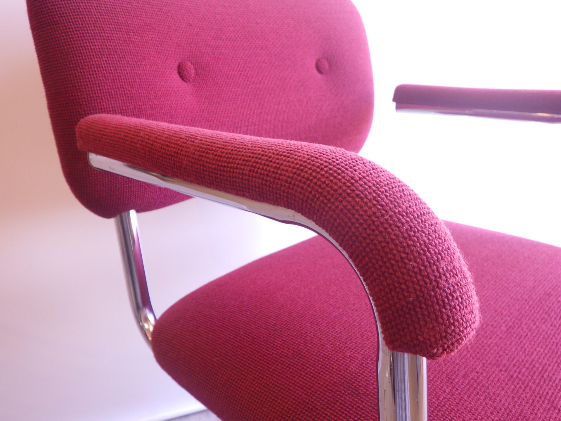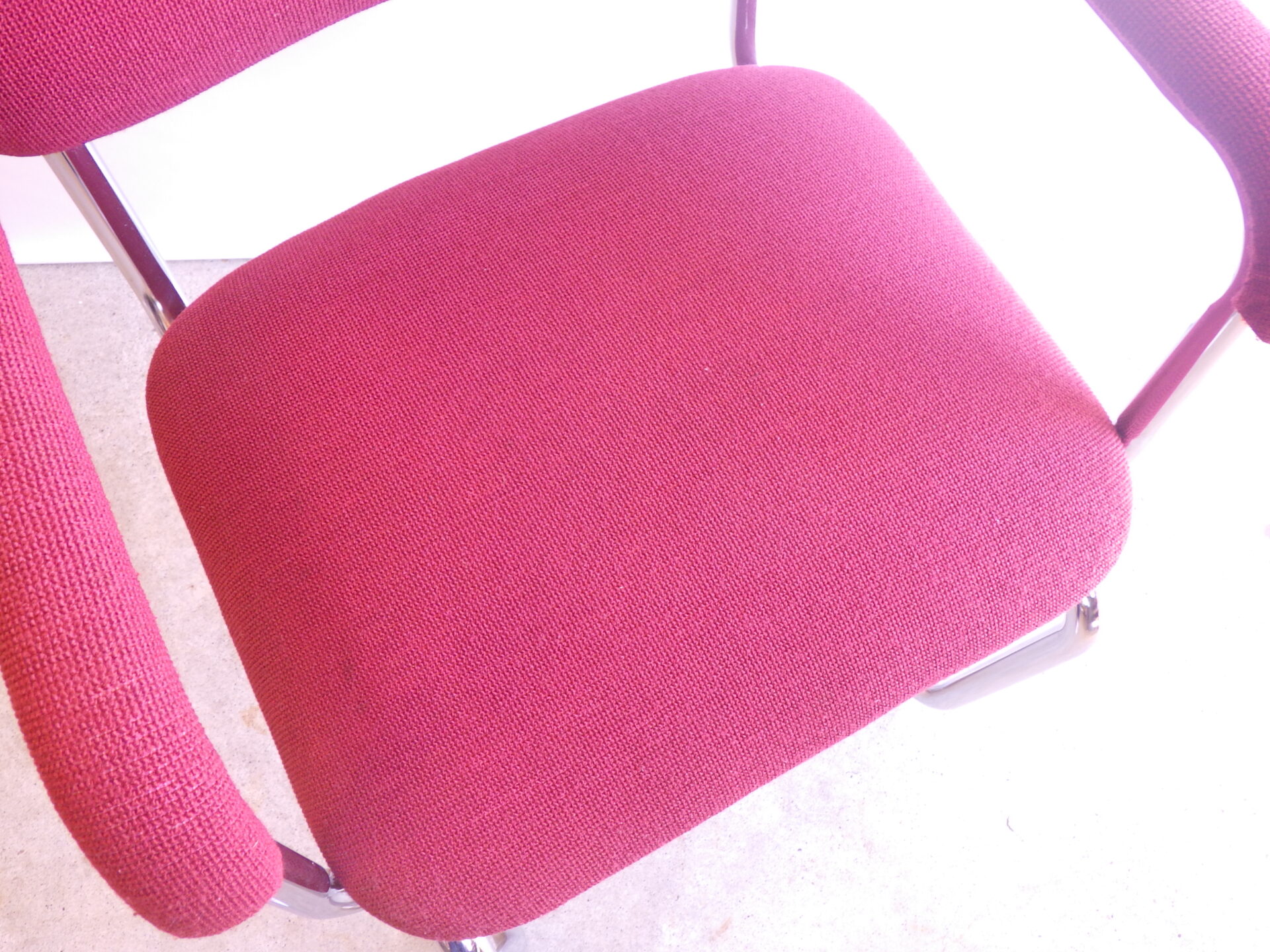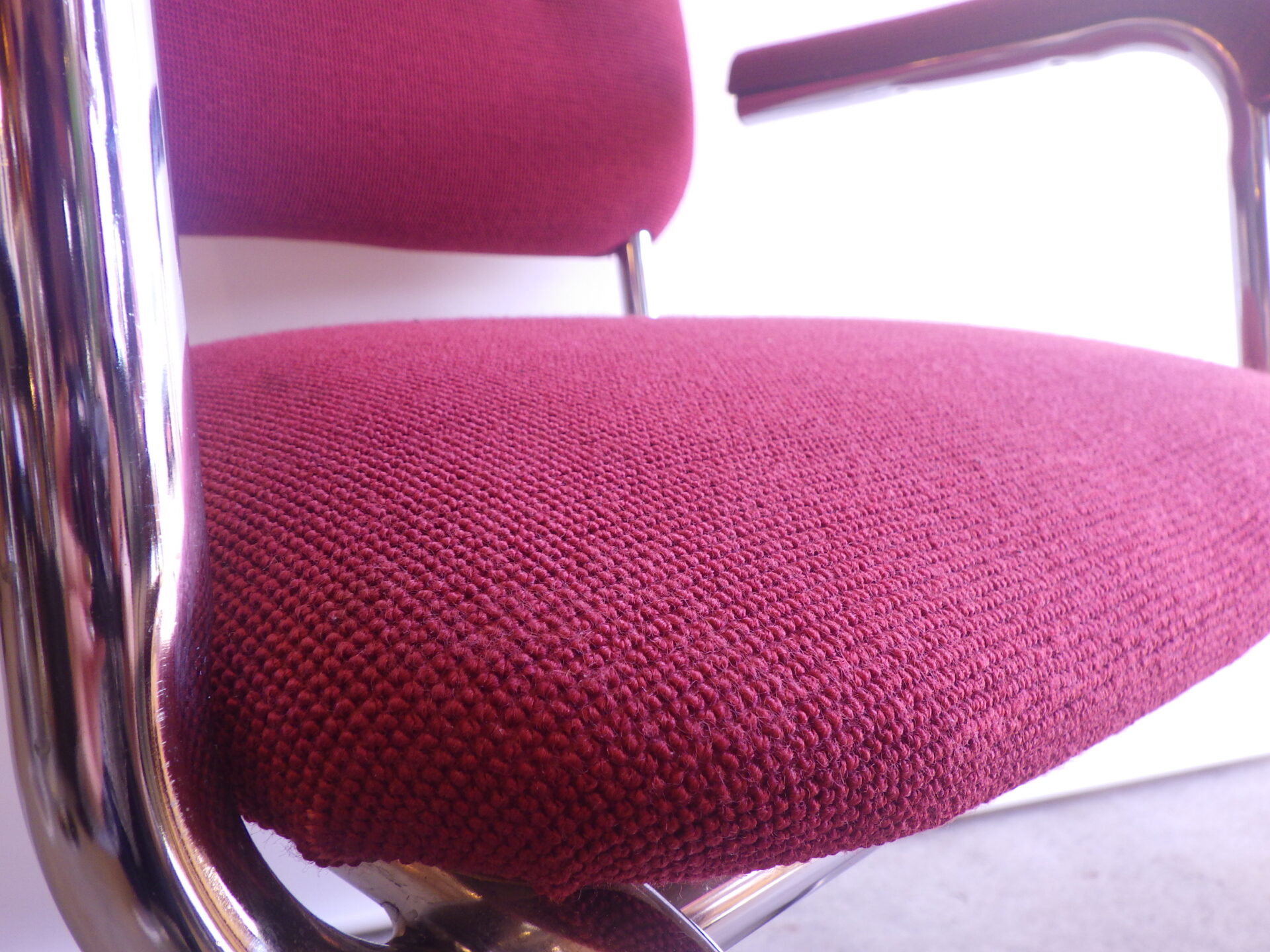 | アメリカで買い付けました。 ドイツを代表する老舗の家具ブランド「Thonet社」のカンチレバーチェアです。 四本脚の椅子と比べ、カンチレバー構造は背中側の脚がないため、座る人の体重に合わせて座面が適度にしなります。 姿勢を変えるごとに程よくしなり、身体を受け止めてくれるため、長時間座っても疲れにくいというメリットがあります。 高級感漂うワインレッドのファブリックに、背もたれのくるみぼたんがアクセントとして良い存在感を示しています。 座面と背もたれはしっかりとした厚みがあり、コロンとしたフォルムが柔らかな印象を与えてくれますね。 ご自宅、オフィス、カフェやレストランなど、様々な空間でご使用いただけますよ。 |