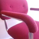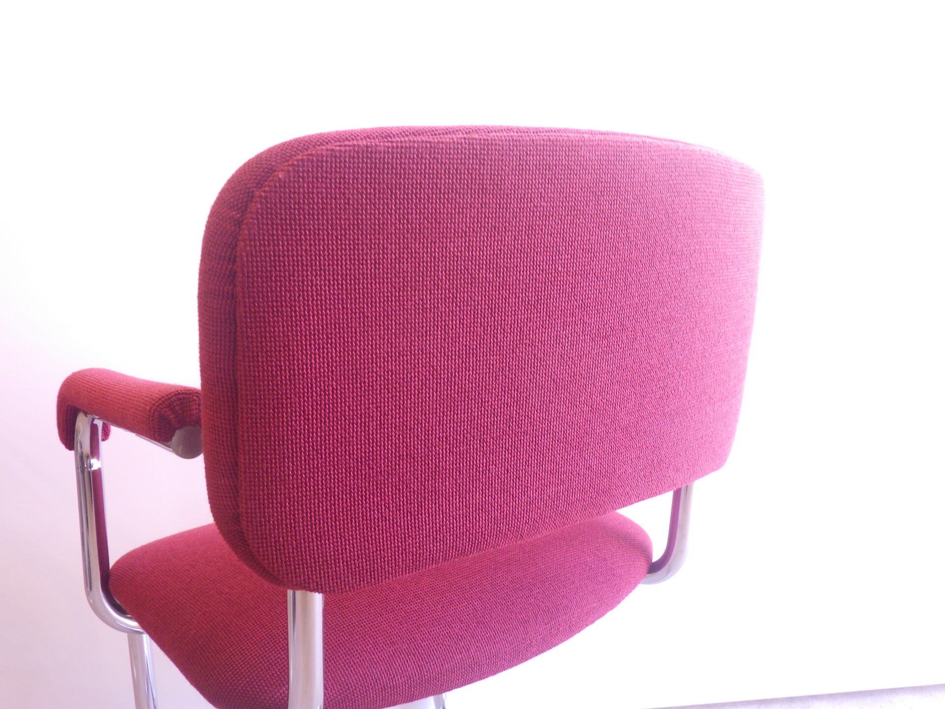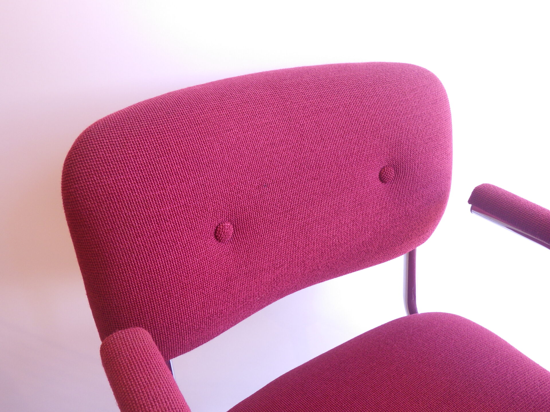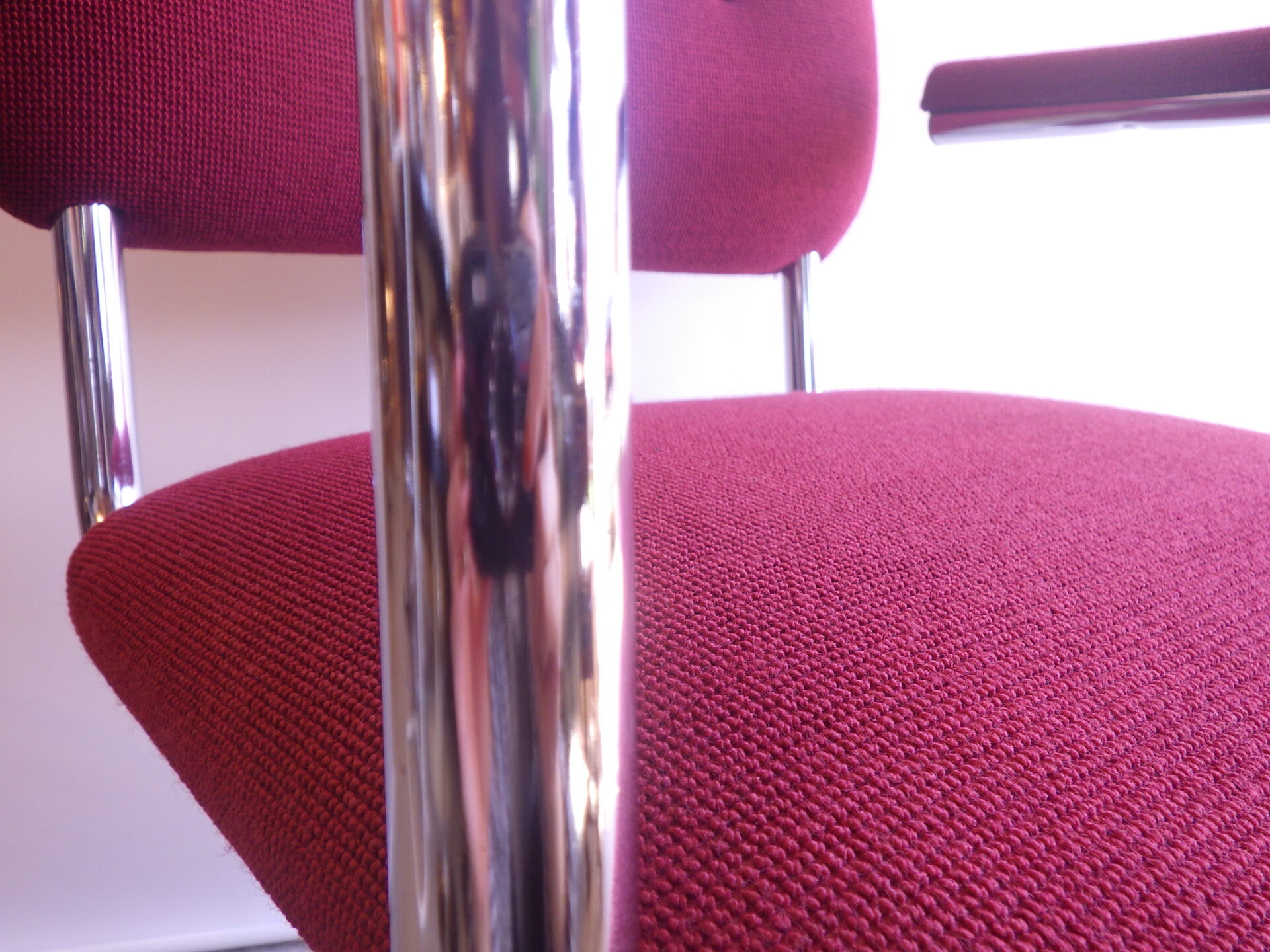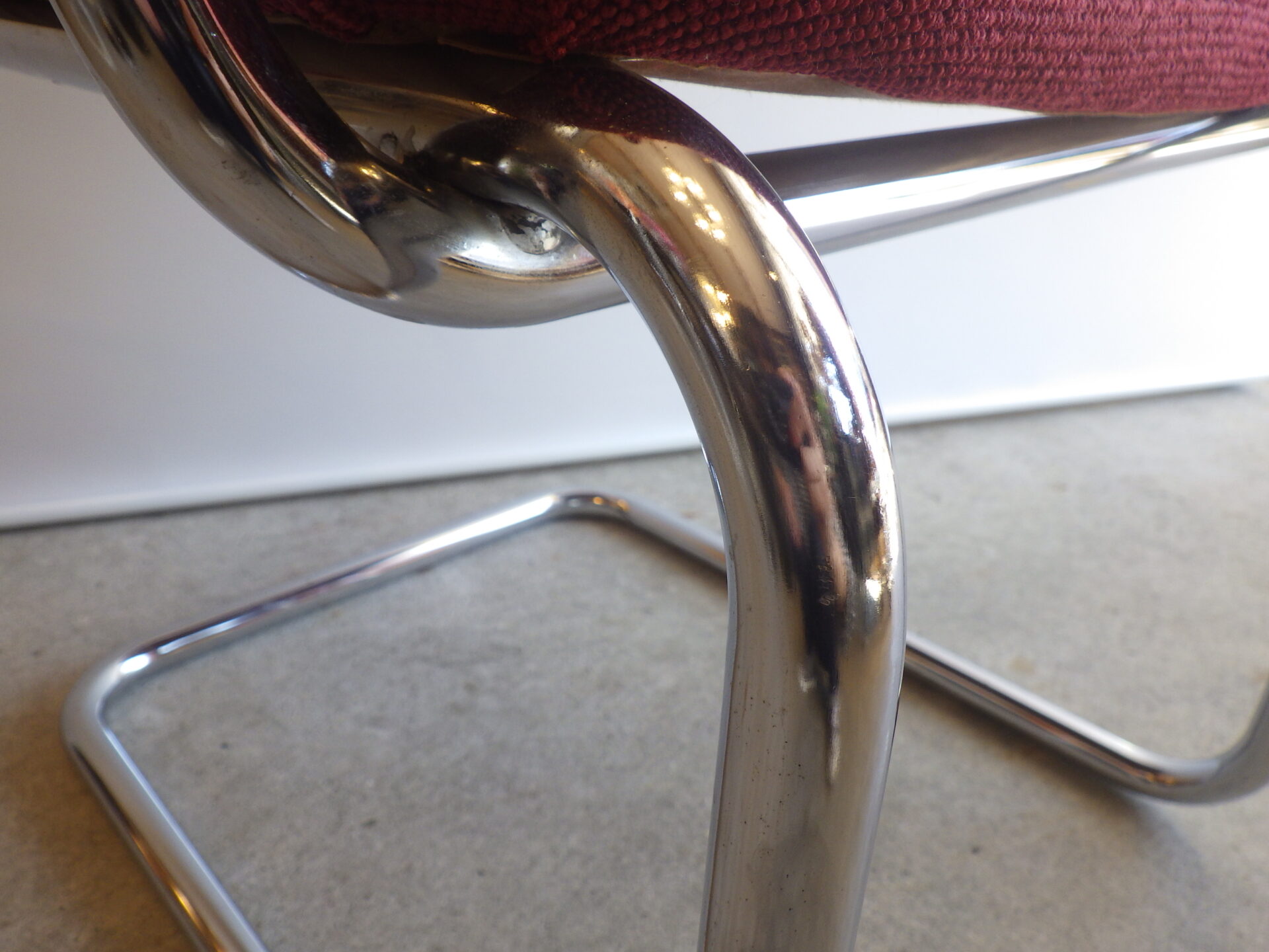 | アメリカで買い付けました。 ドイツを代表する老舗の家具ブランド「Thonet社」のカンチレバーチェアです。 四本脚の椅子と比べ、カンチレバー構造は背中側の脚がないため、座る人の体重に合わせて座面が適度にしなります。 姿勢を変えるごとに程よくしなり、身体を受け止めてくれるため、長時間座っても疲れにくいというメリットがあります。 高級感漂うワインレッドのファブリックに、背もたれのくるみぼたんがアクセントとして良い存在感を示しています。 座面と背もたれはしっかりとした厚みがあり、コロンとしたフォルムが柔らかな印象を与えてくれますね。 ご自宅、オフィス、カフェやレストランなど、様々な空間でご使用いただけますよ。 |