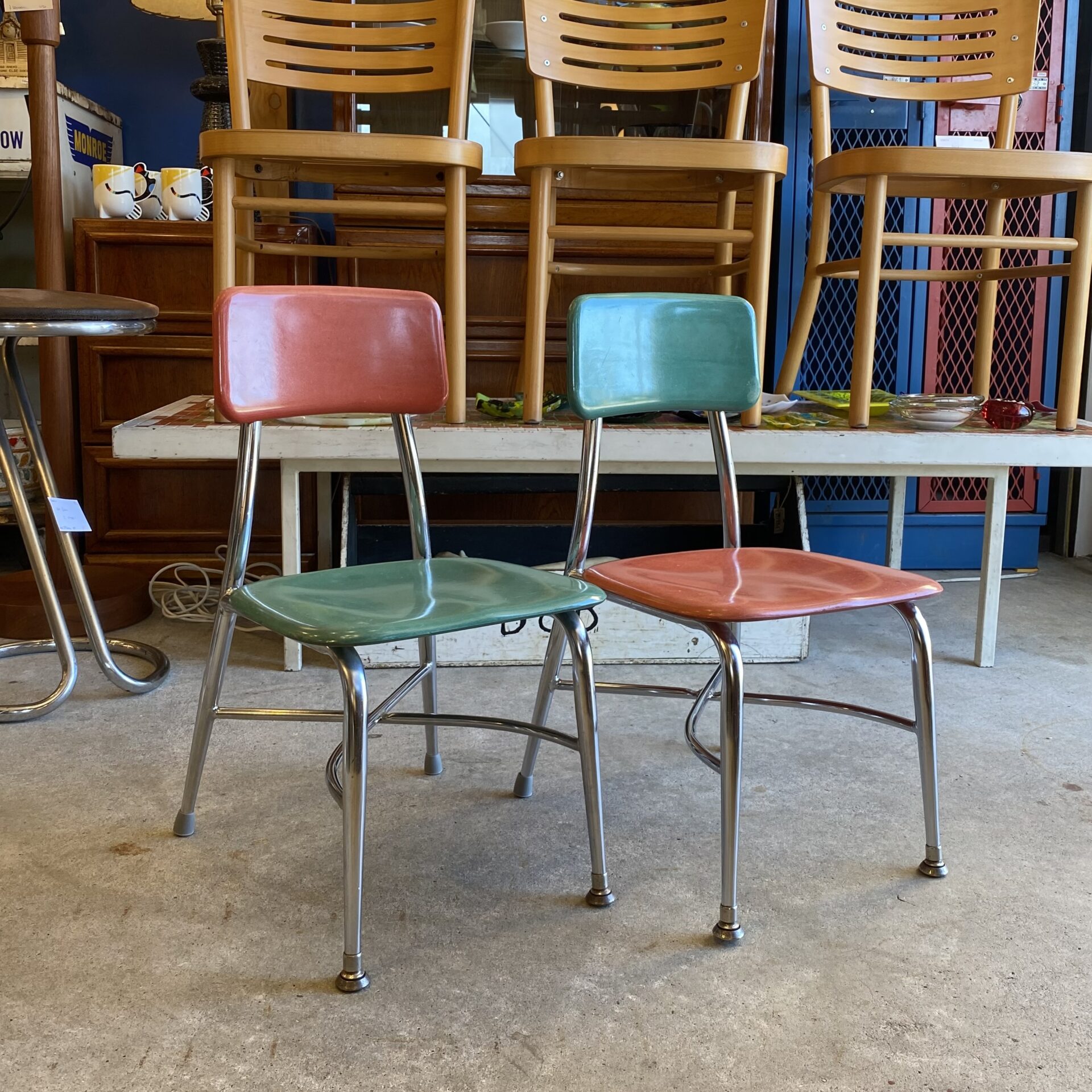 いかにもスクールチェアな雰囲気の木製のものも見つかりますが、こちらのカラーリングは学校用にしておくのにはもったいないですね。